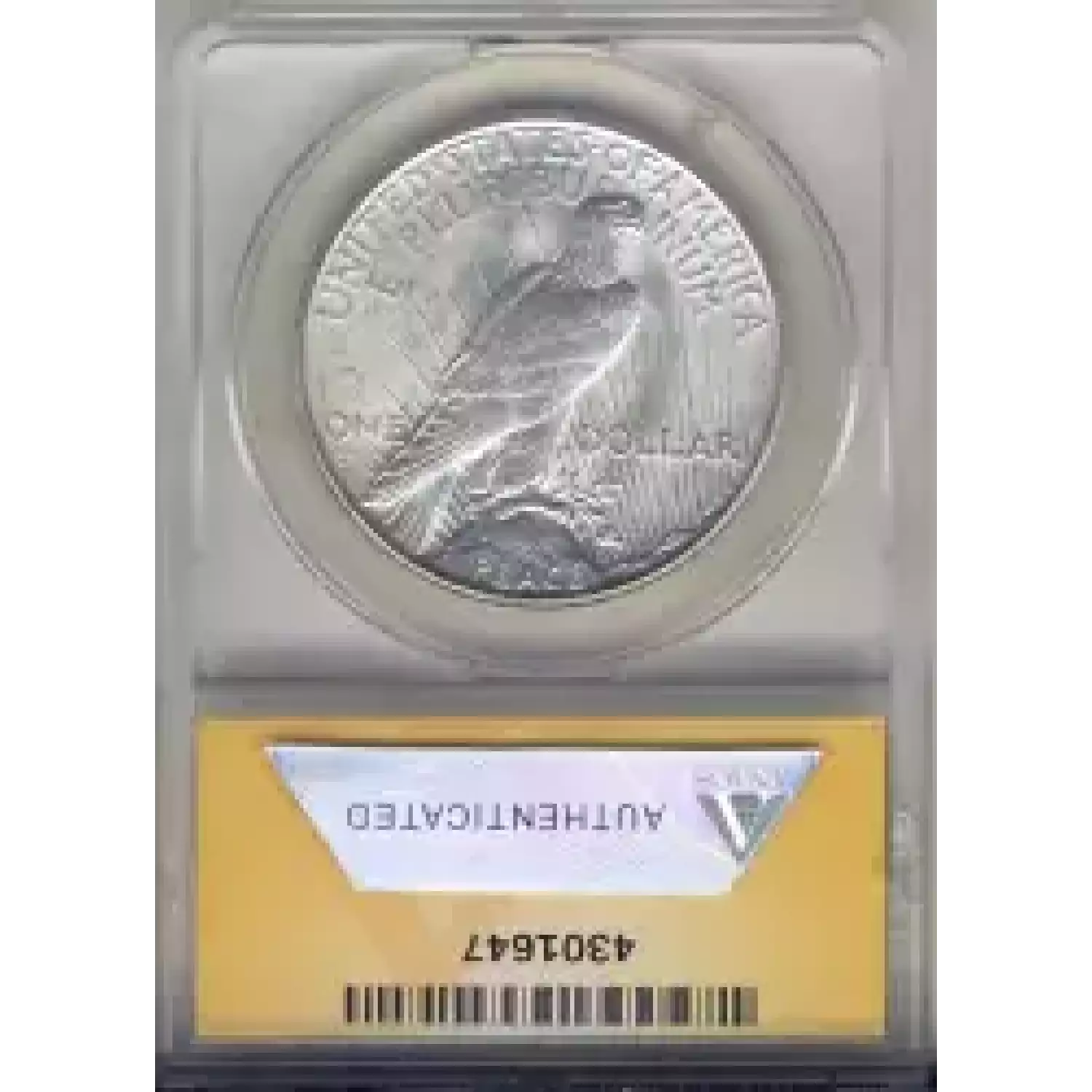 500751 | 1923-D Peace Silver Dollar NGC MS-62 | NGC | MS-62 | Sold: 01/03/2022 | $175 |
