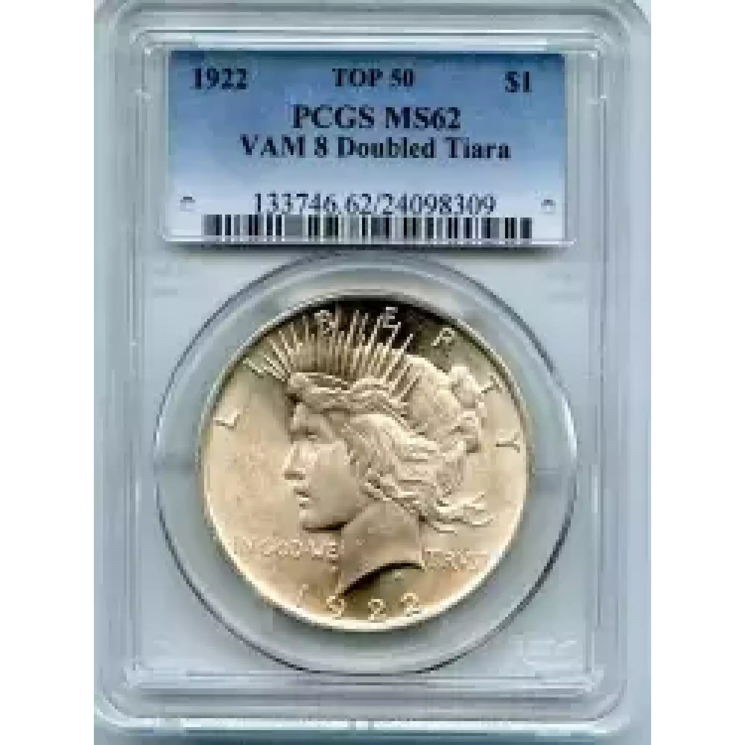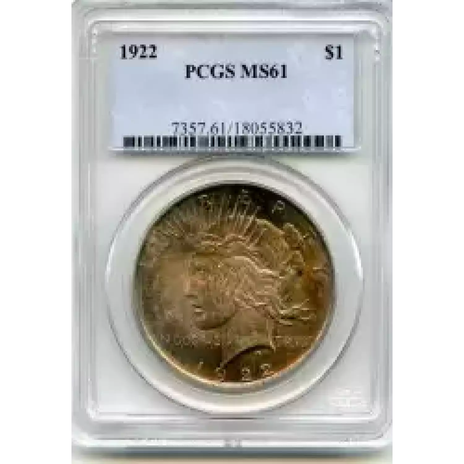 505485 | 1922-MS-62 Peace Silver Dollar PCGS MS-62 | PCGS | MS-62 | Sold: 08/07/2014 | $325 |