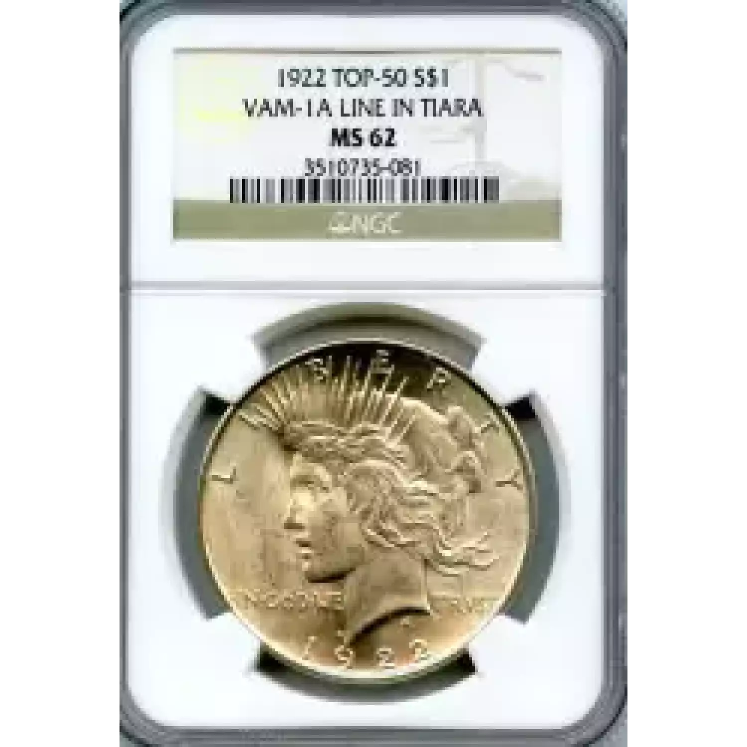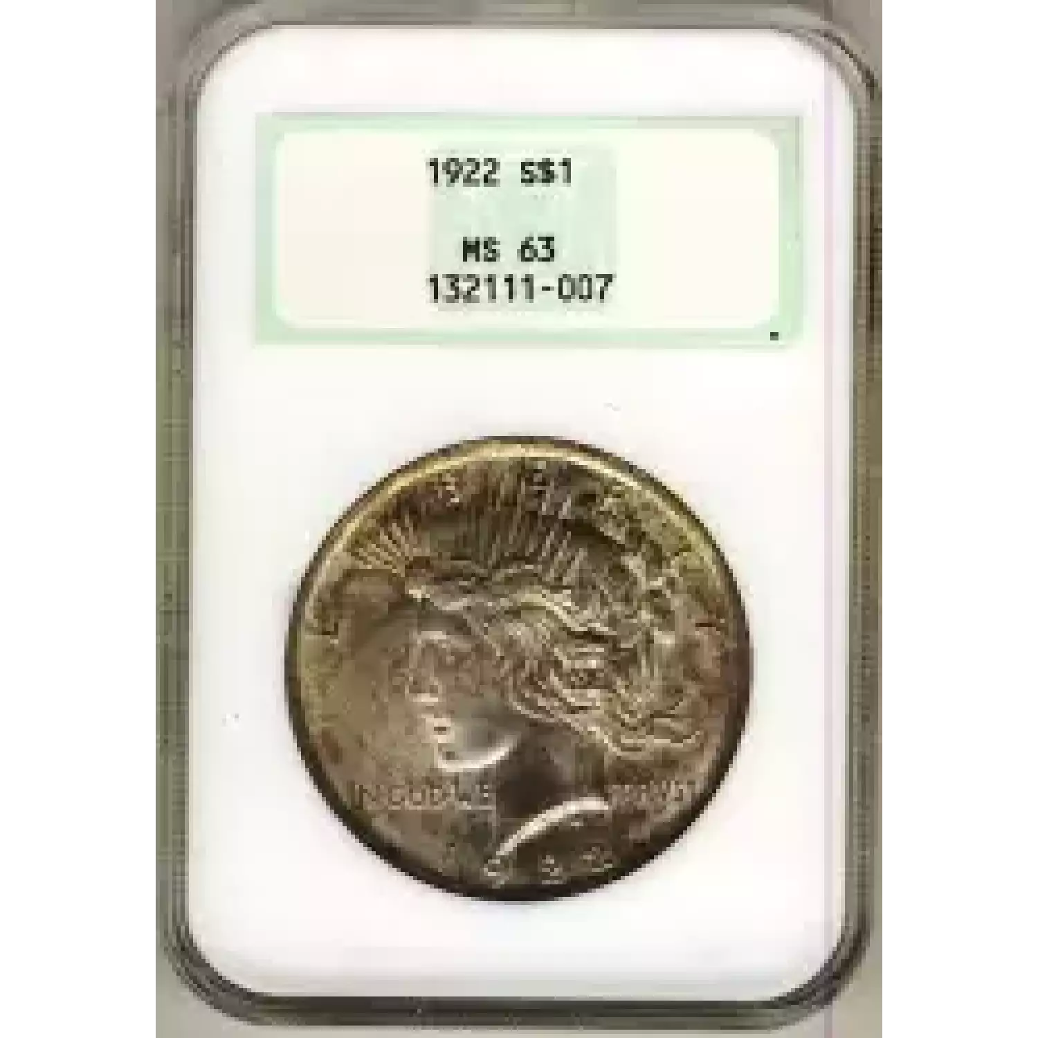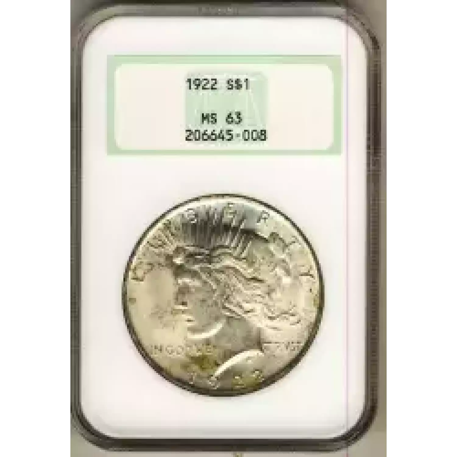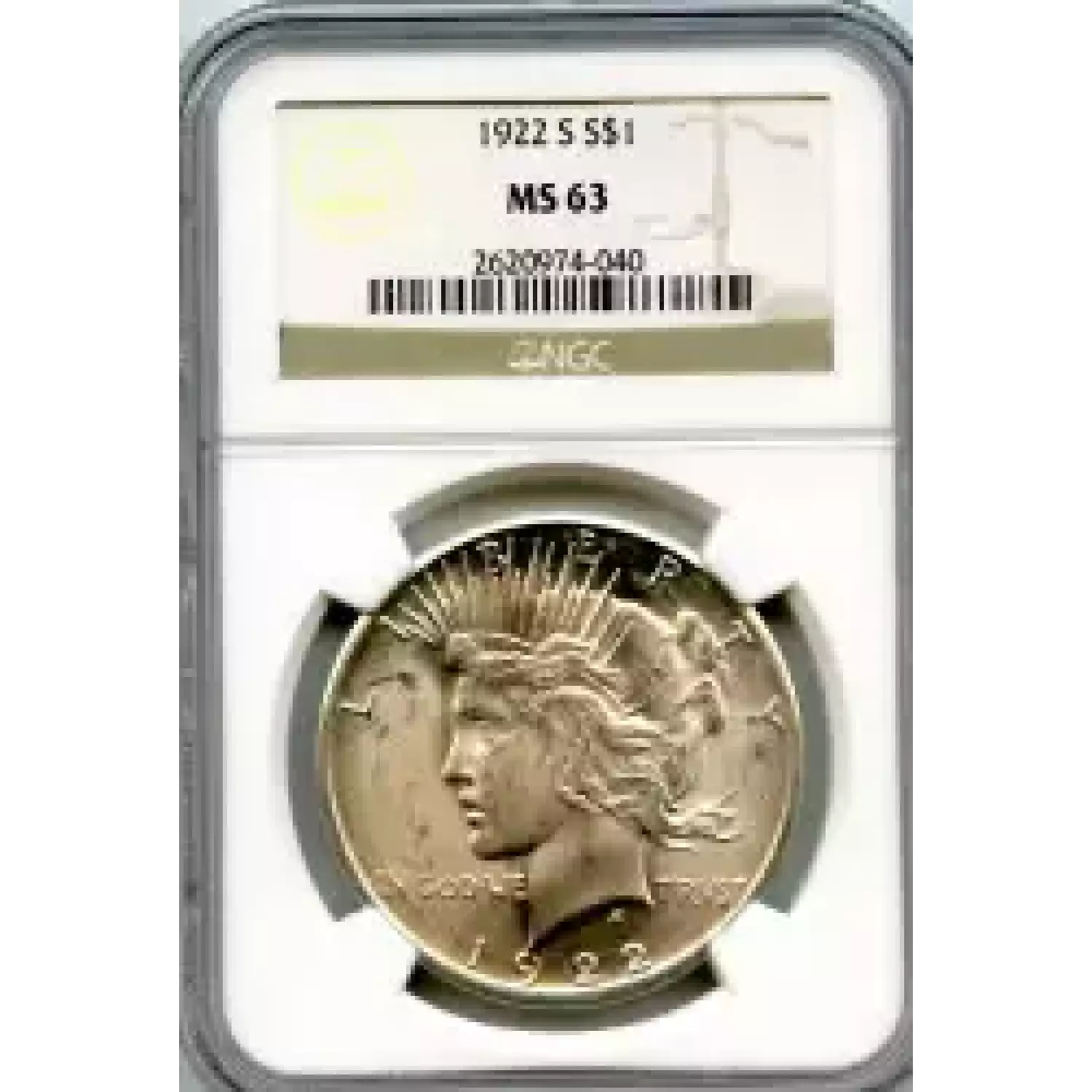 506225 | 1922-MS-62 Peace Silver Dollar NGC MS-62 | NGC | MS-62 | Sold: 29/03/2014 | $1,750 |