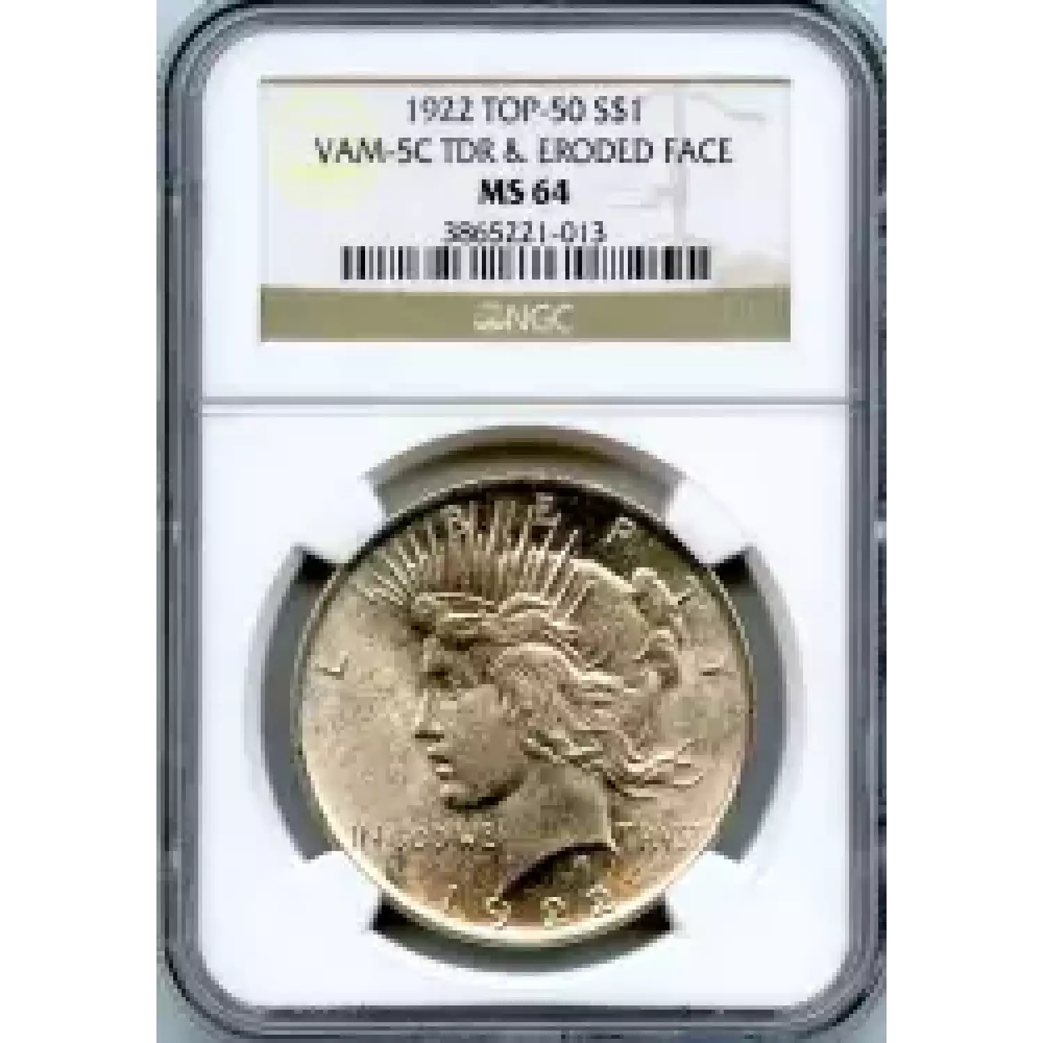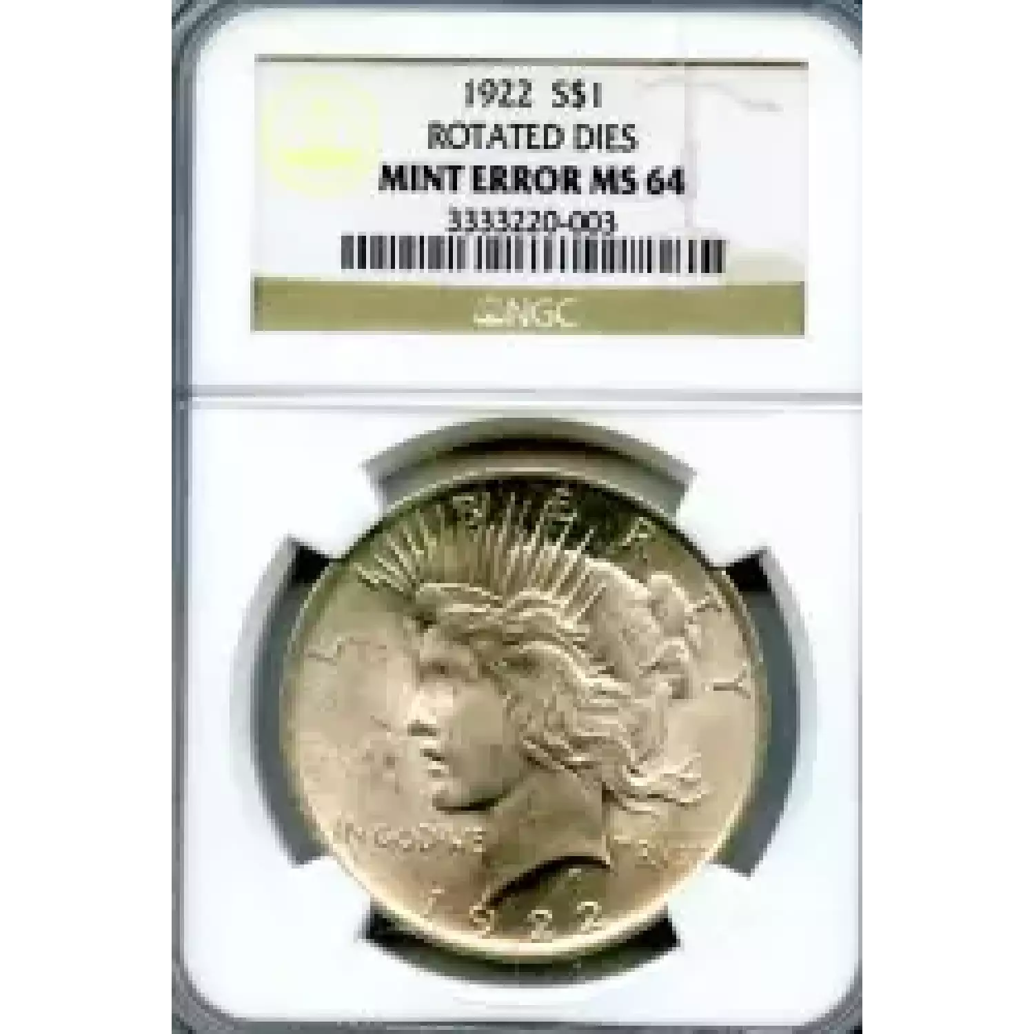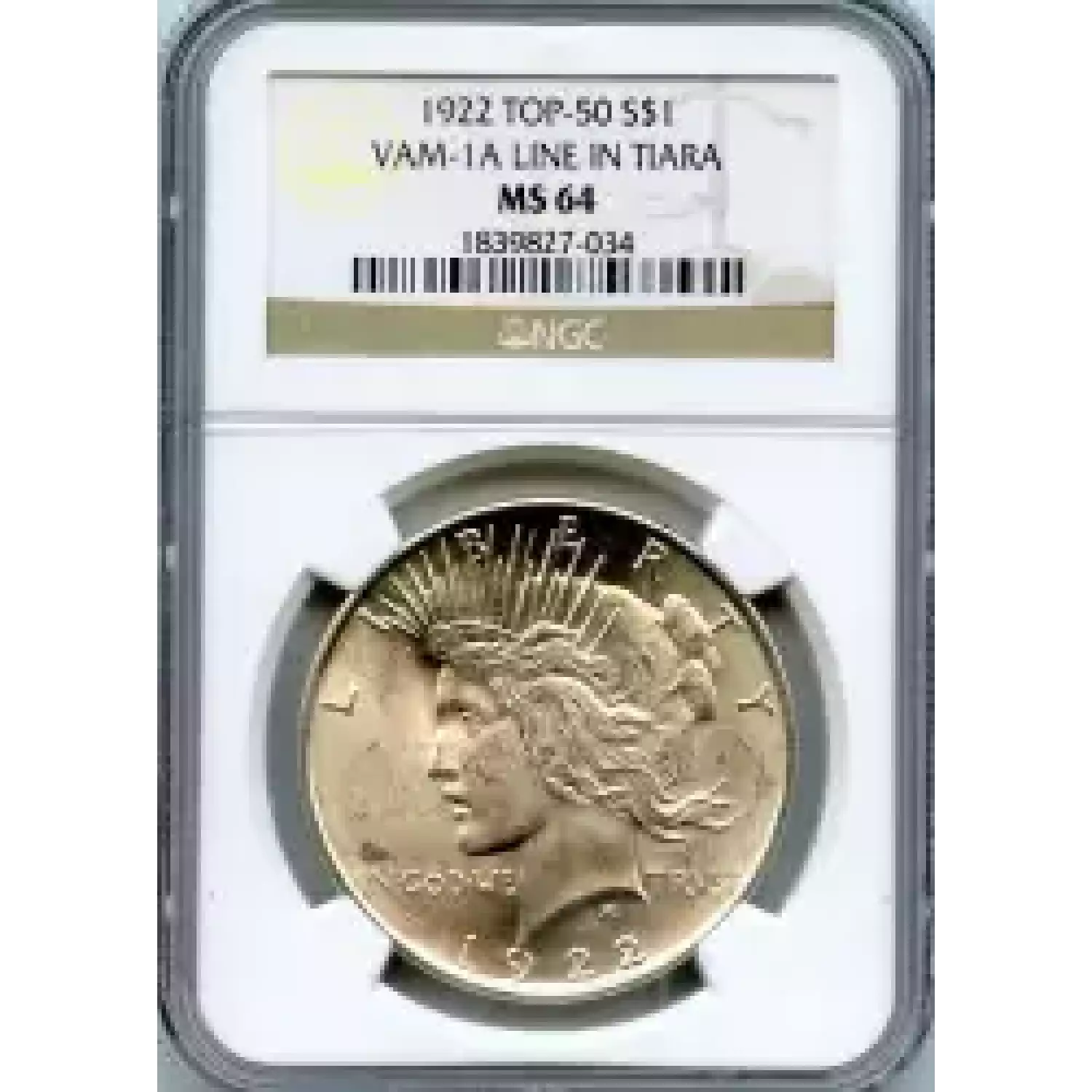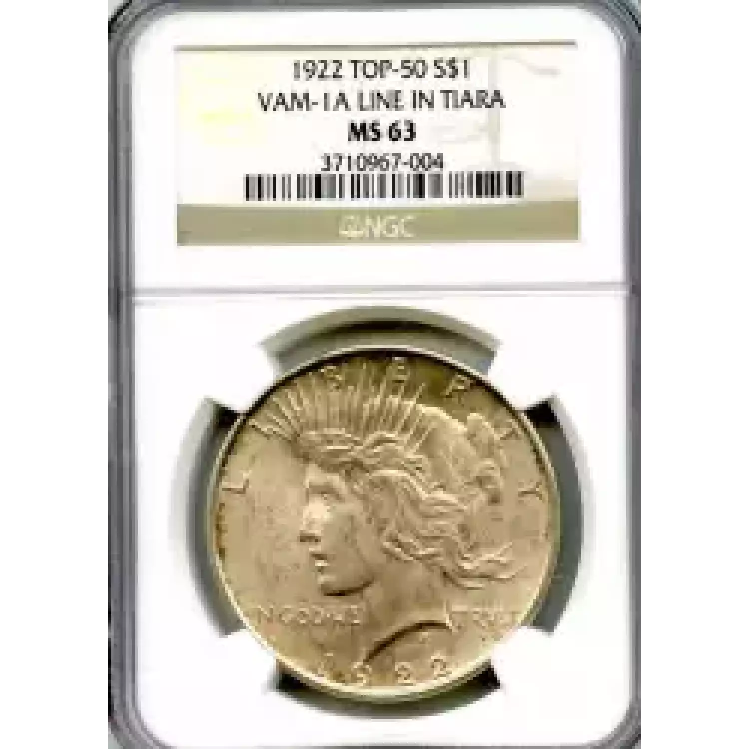 506225 | 1922-MS-62 Peace Silver Dollar NGC MS-62 | NGC | MS-62 | Sold: 29/03/2014 | $1,750 |