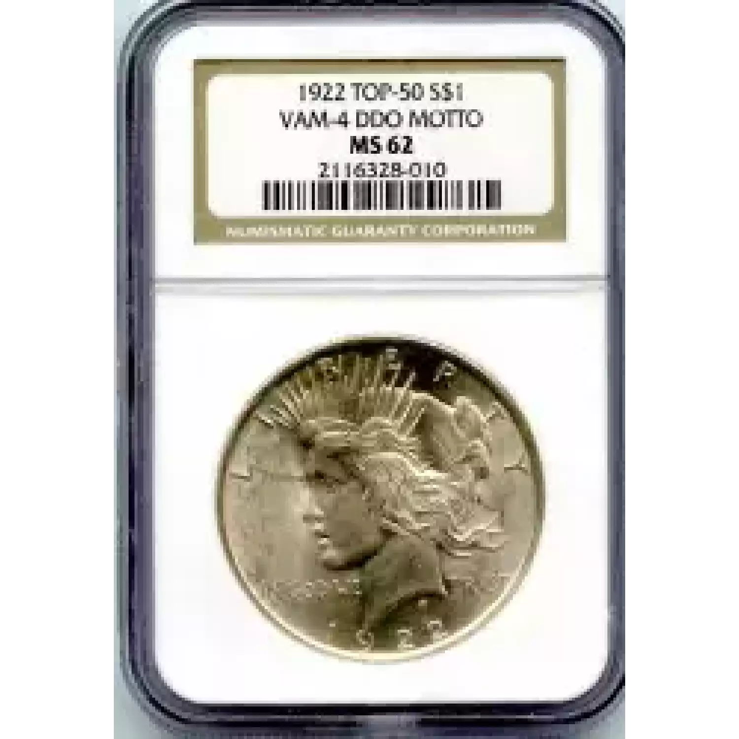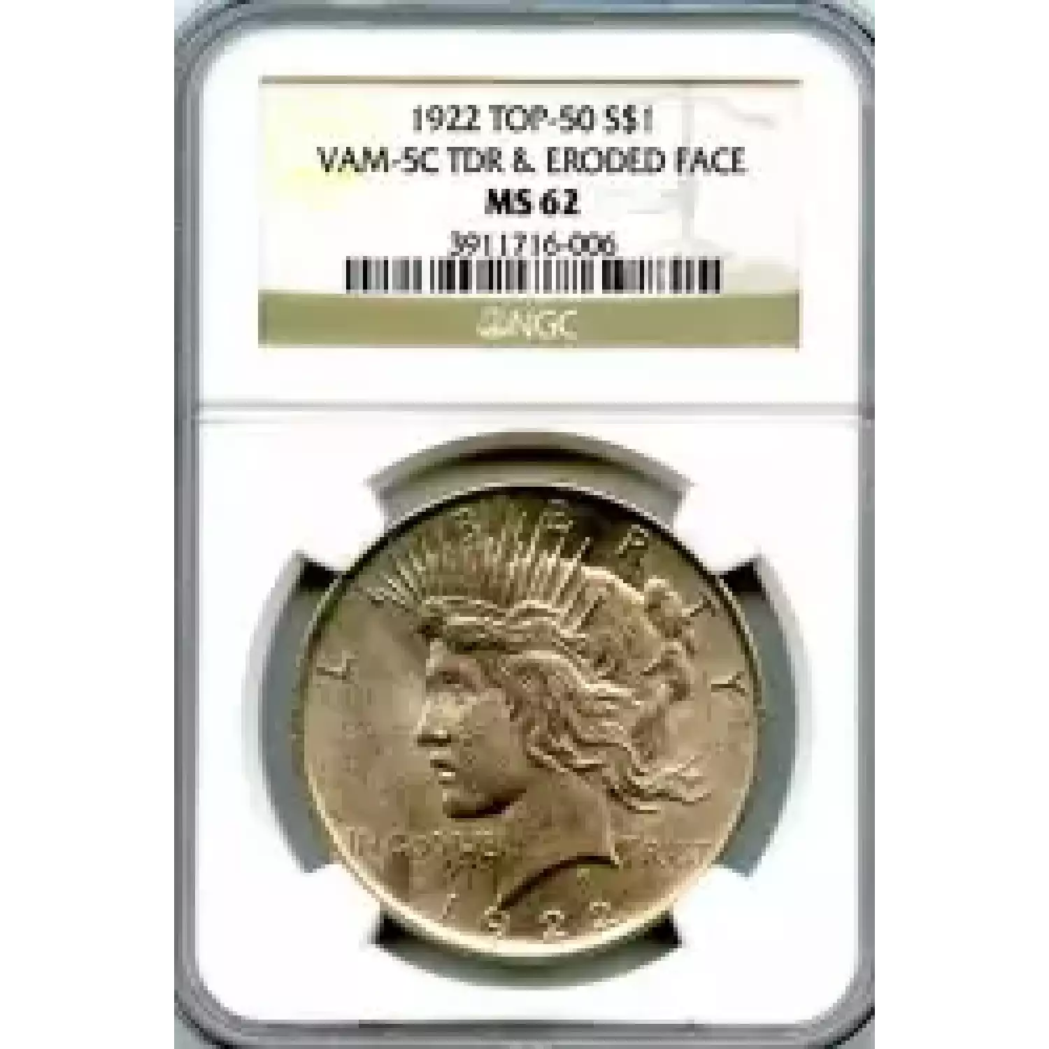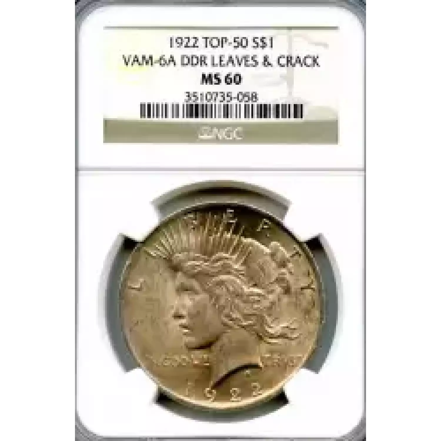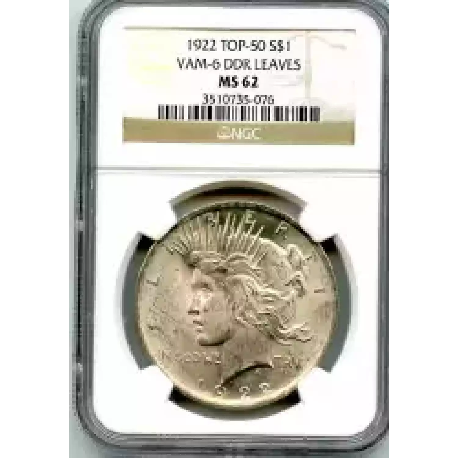 506225 | 1922-MS-62 Peace Silver Dollar NGC MS-62 | NGC | MS-62 | Sold: 29/03/2014 | $1,750 |