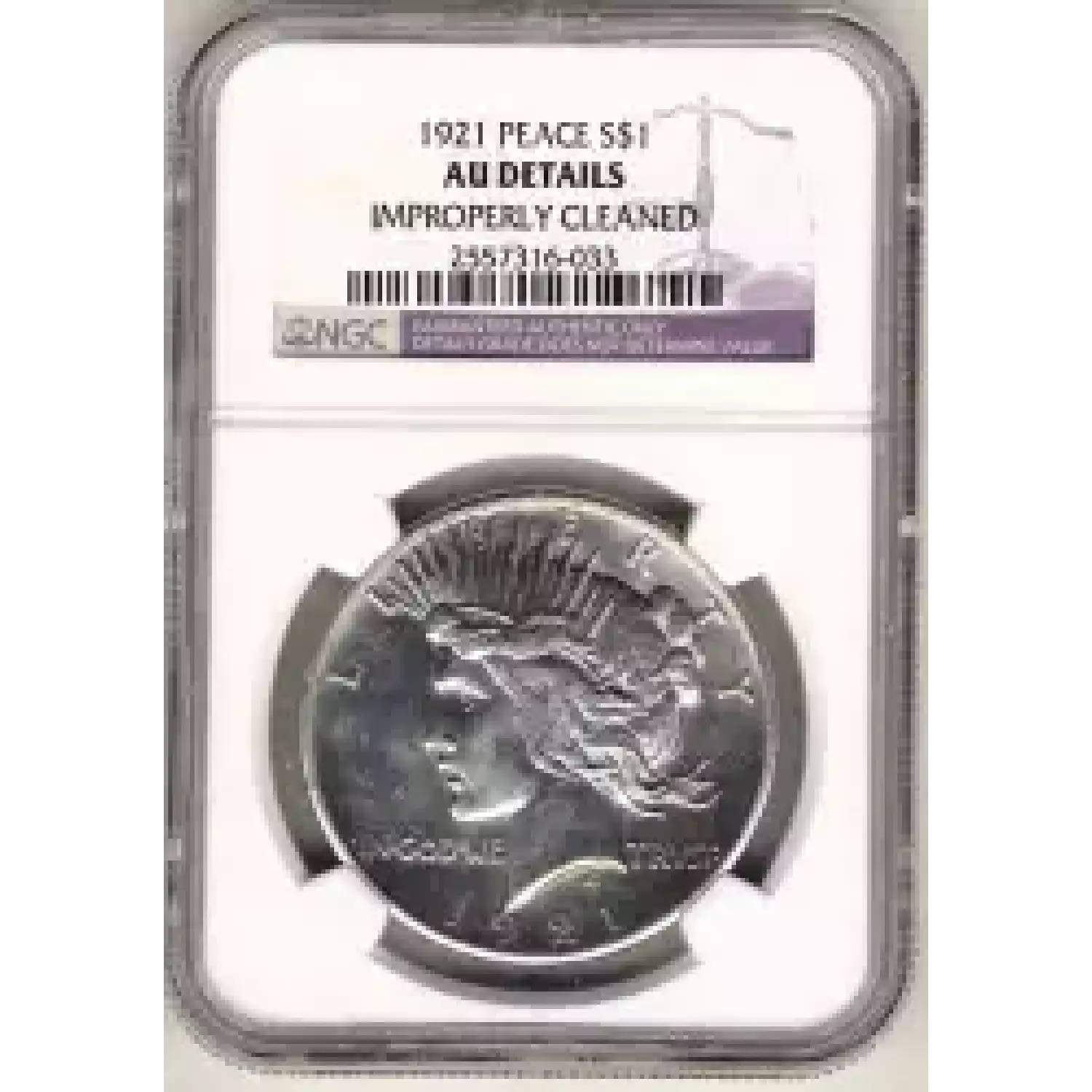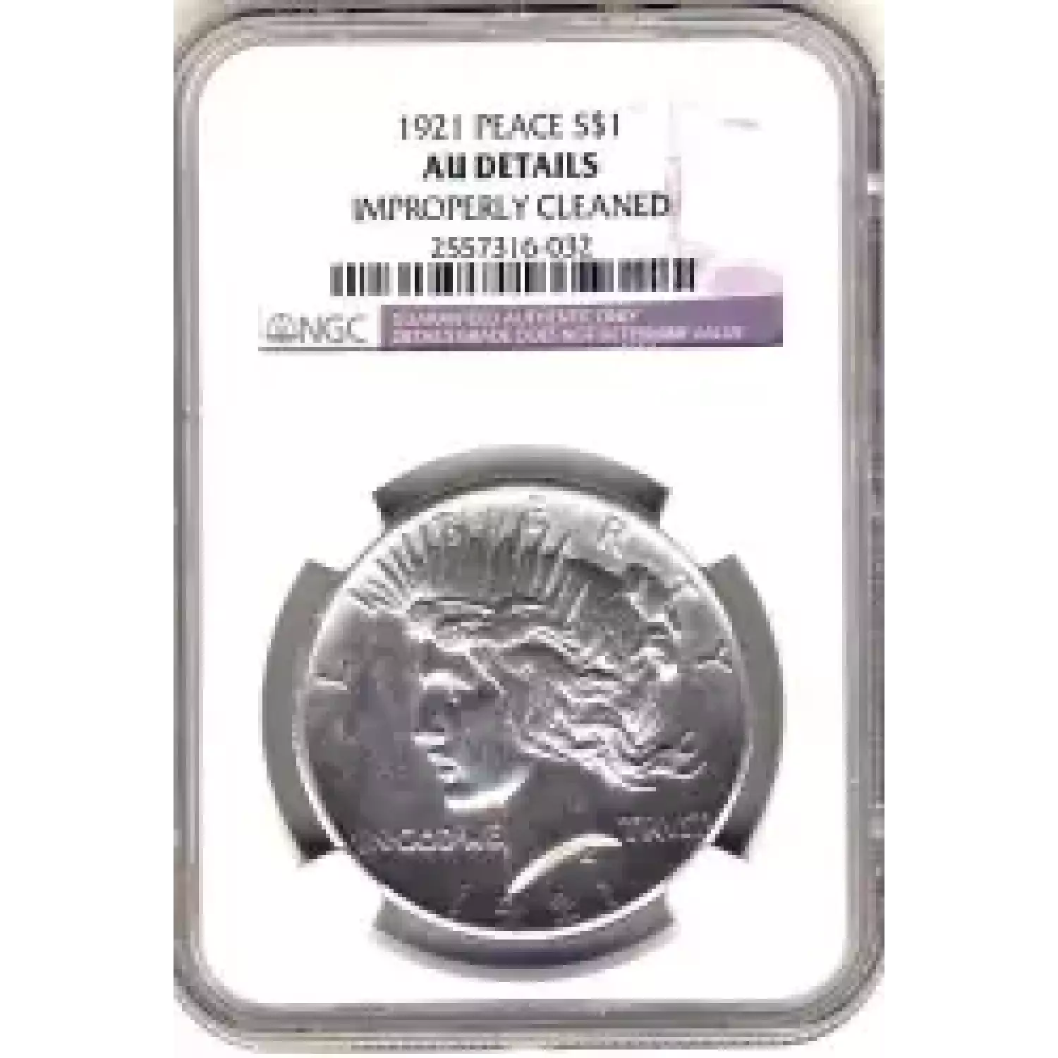 505460 | 1921-AU Details Peace Silver Dollar NGC AU Details | NGC | AU Details | Sold: 12/01/2013 | $160 |