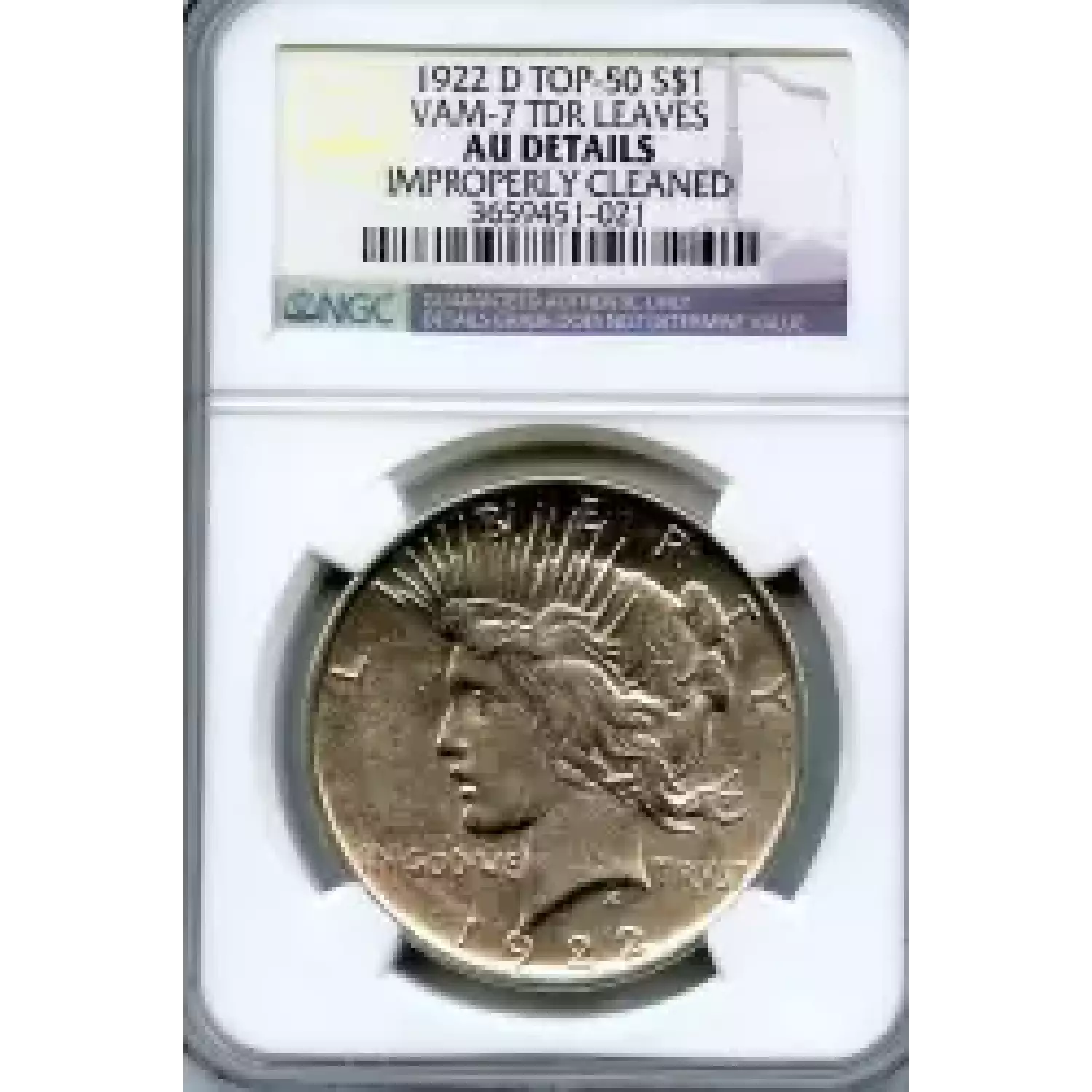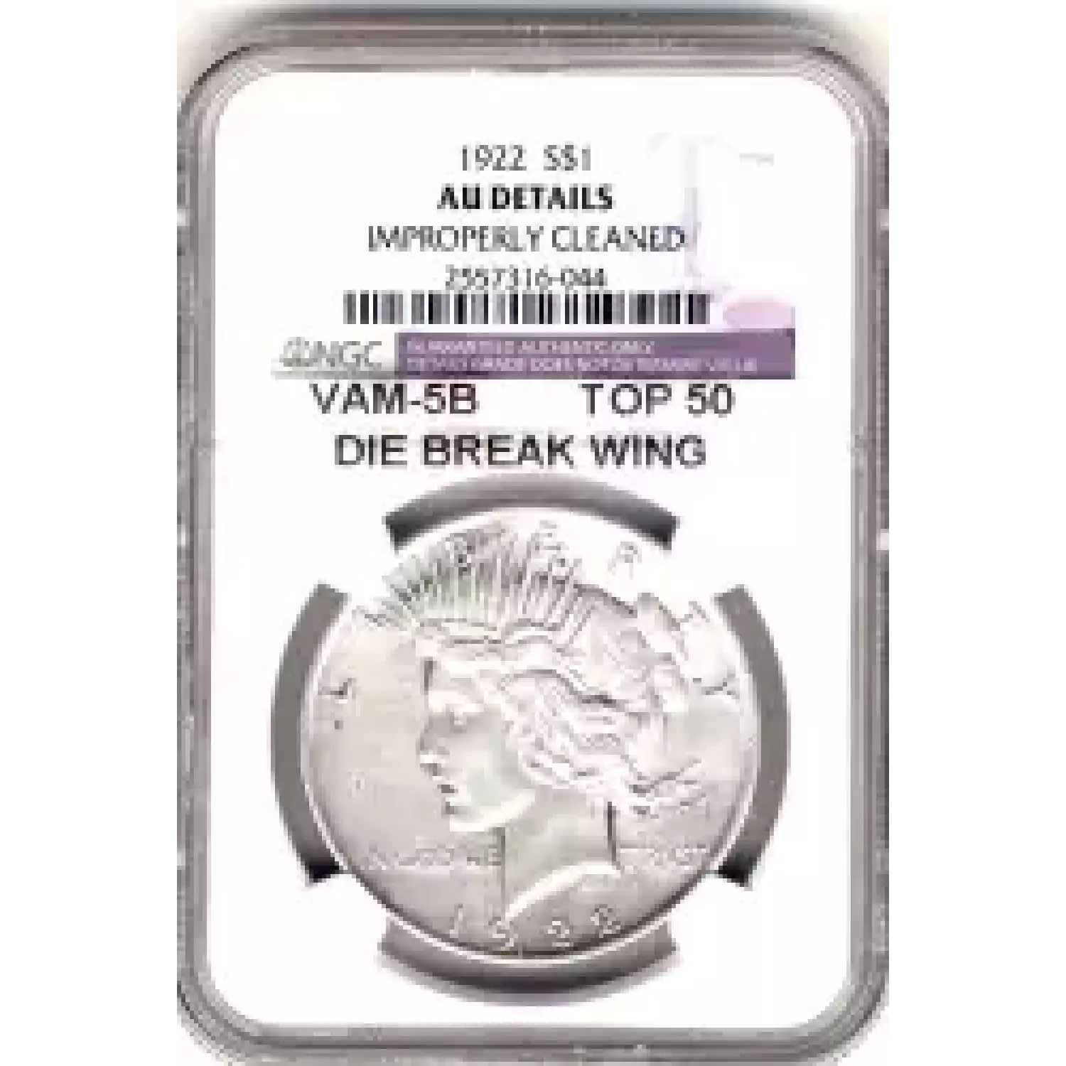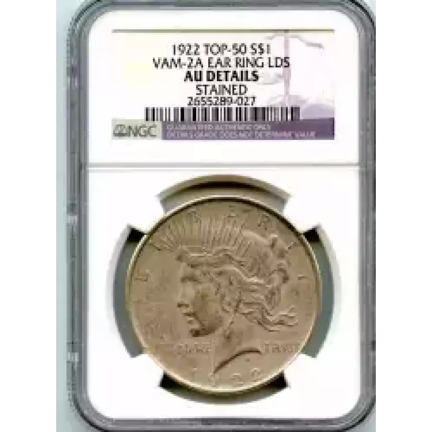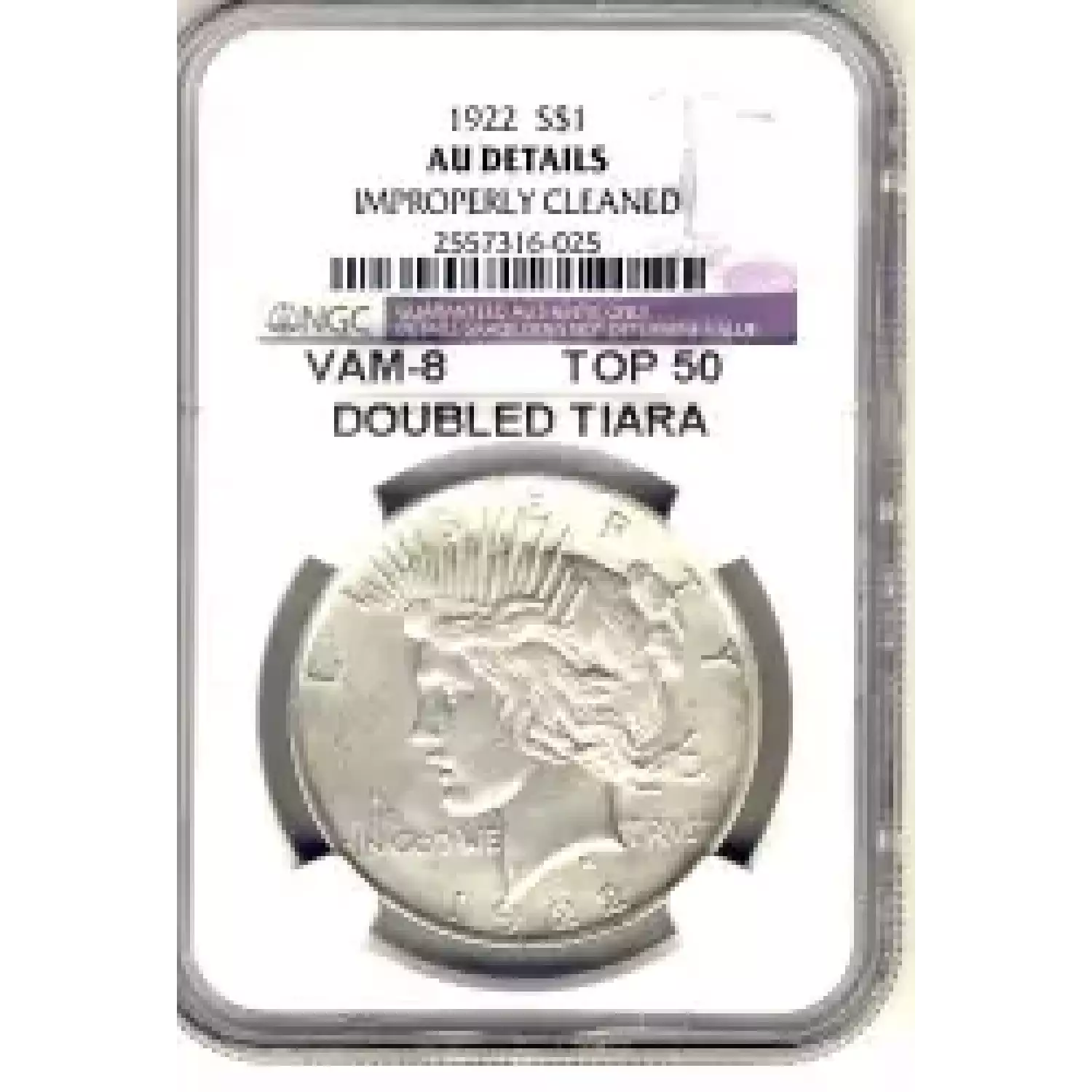 506076 | 1922-AU Details Peace Silver Dollar NGC AU Details | NGC | AU Details | Sold: 17/02/2013 | $150 |