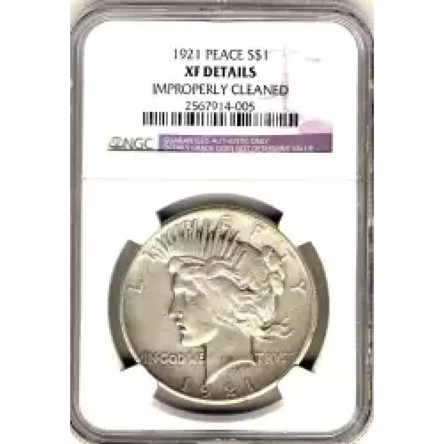 505742 | 1921-XF Details Peace Silver Dollar NGC XF Details | NGC | XF Details | Sold: 17/03/2012 | $73 |