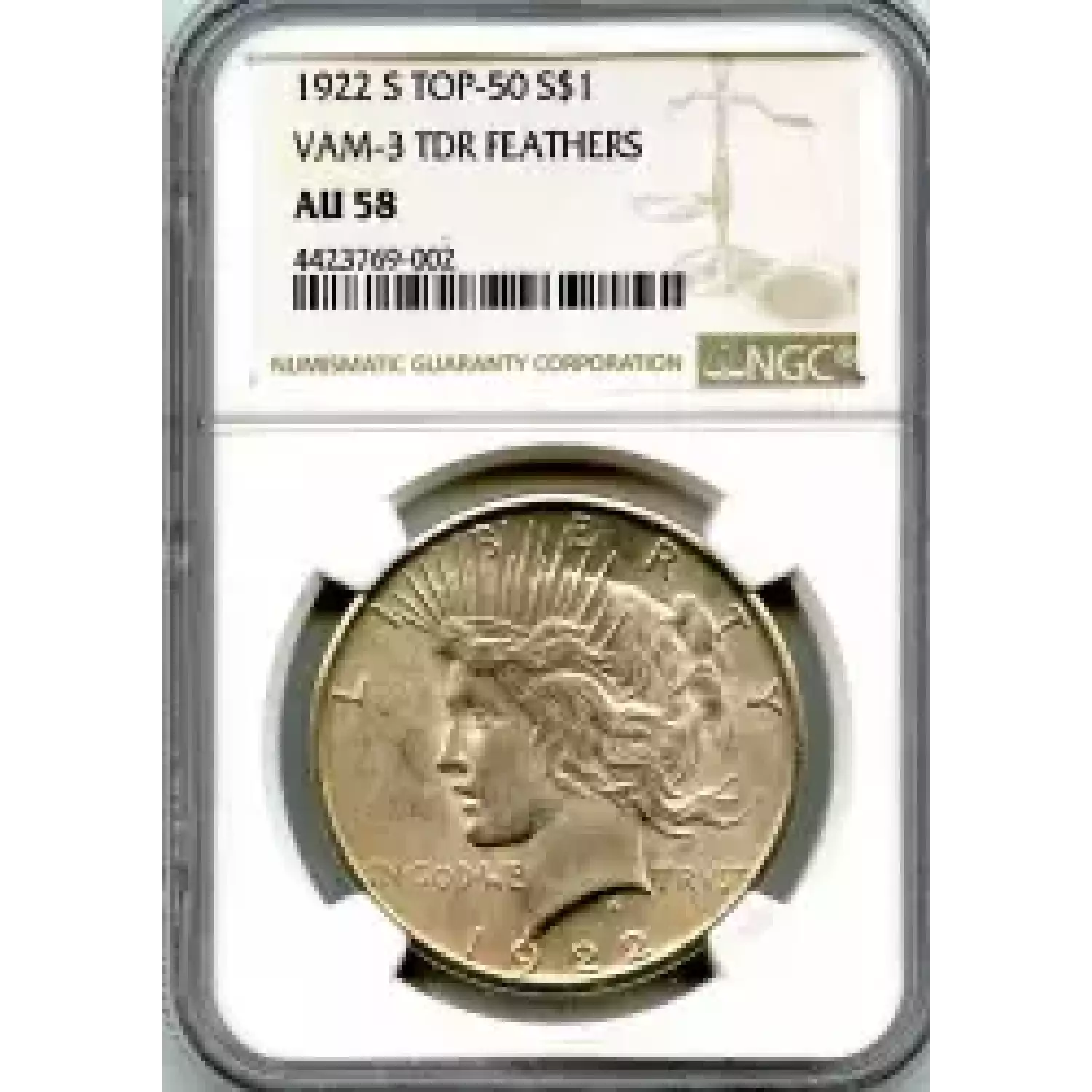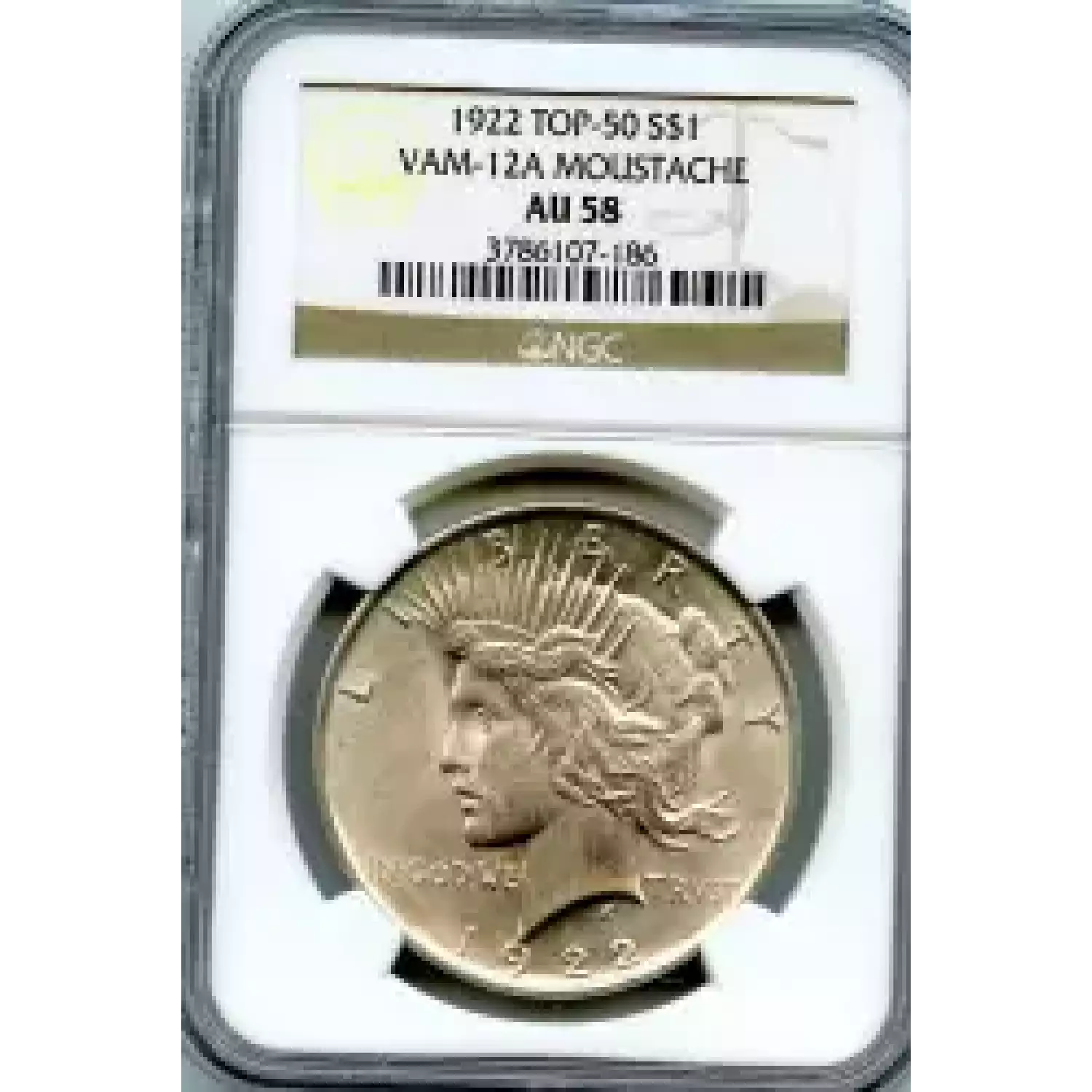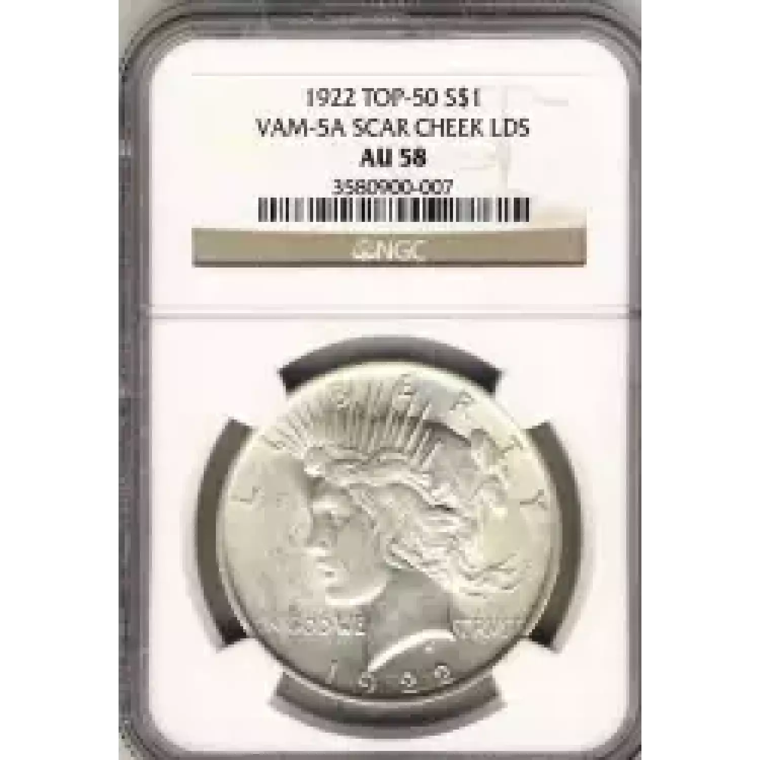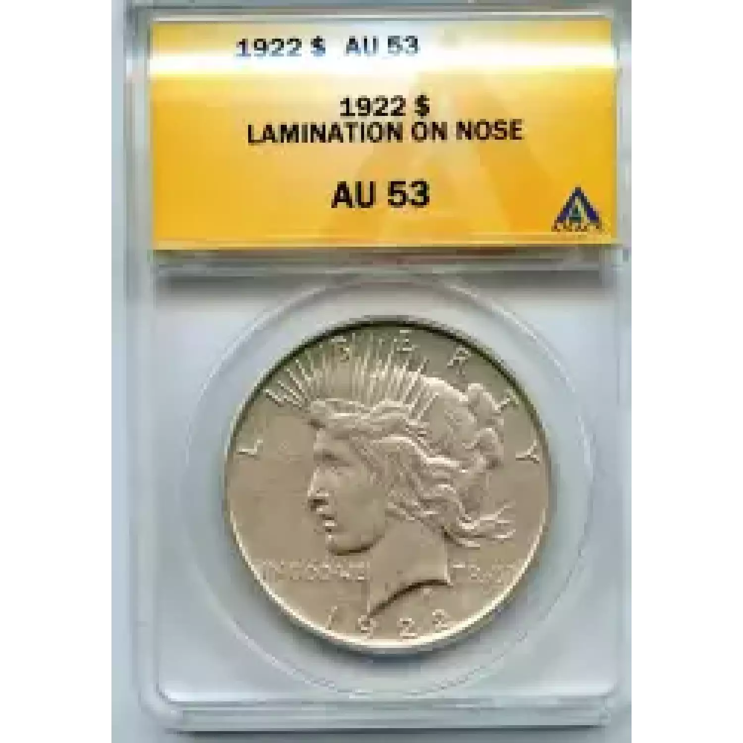 506171 | 1922-AU-58 Peace Silver Dollar NGC AU-58 | NGC | AU-58 | Sold: 30/06/2012 | $375 |