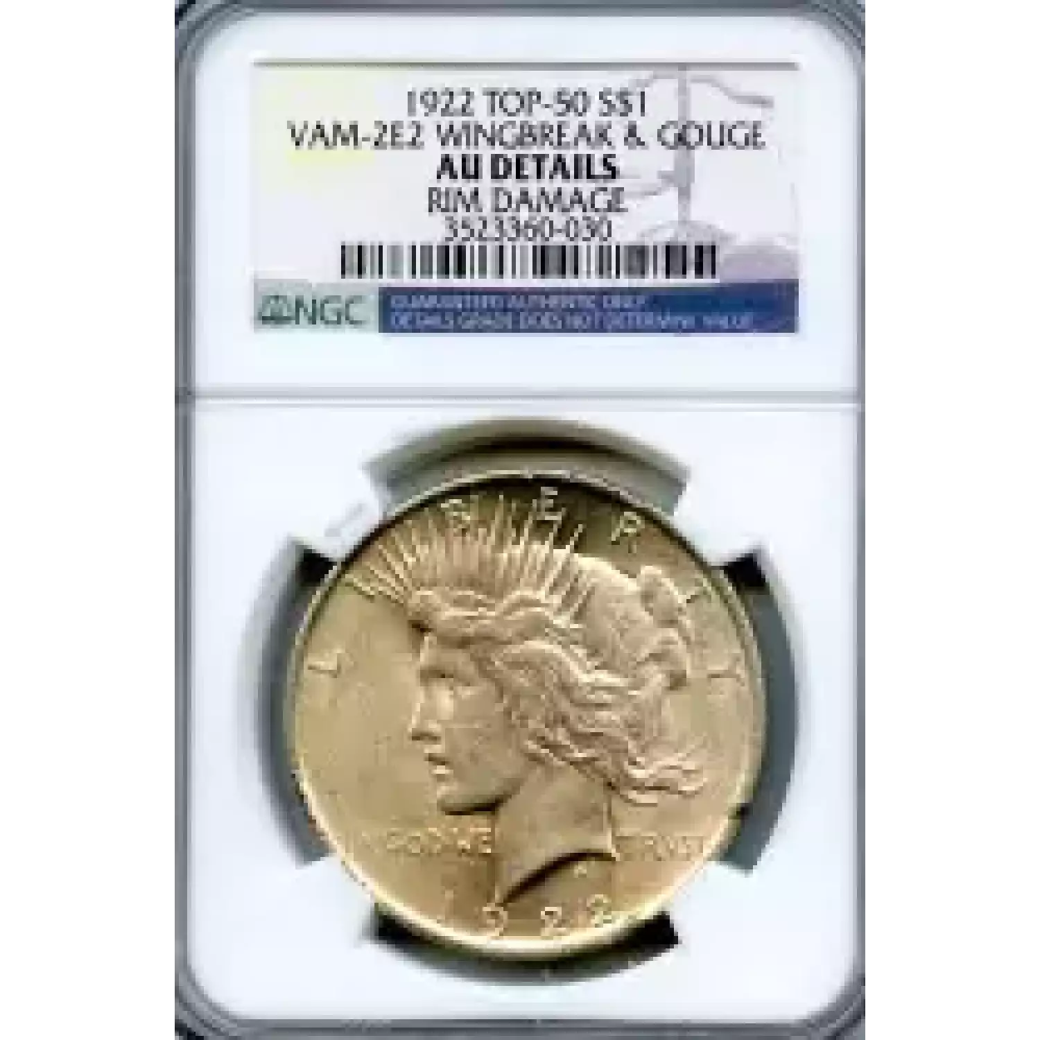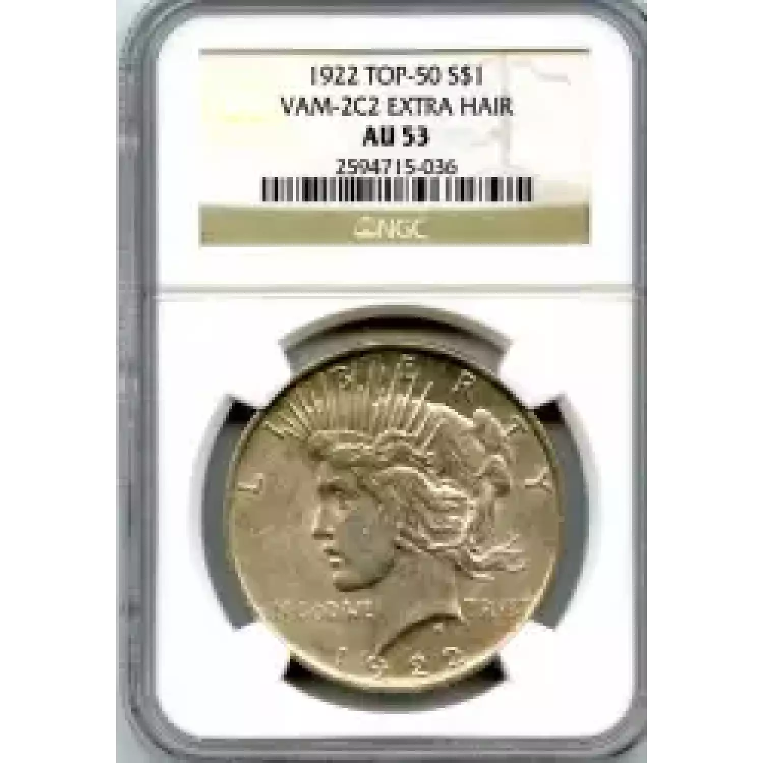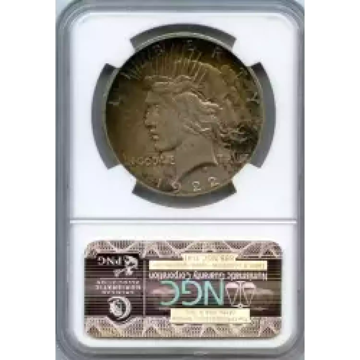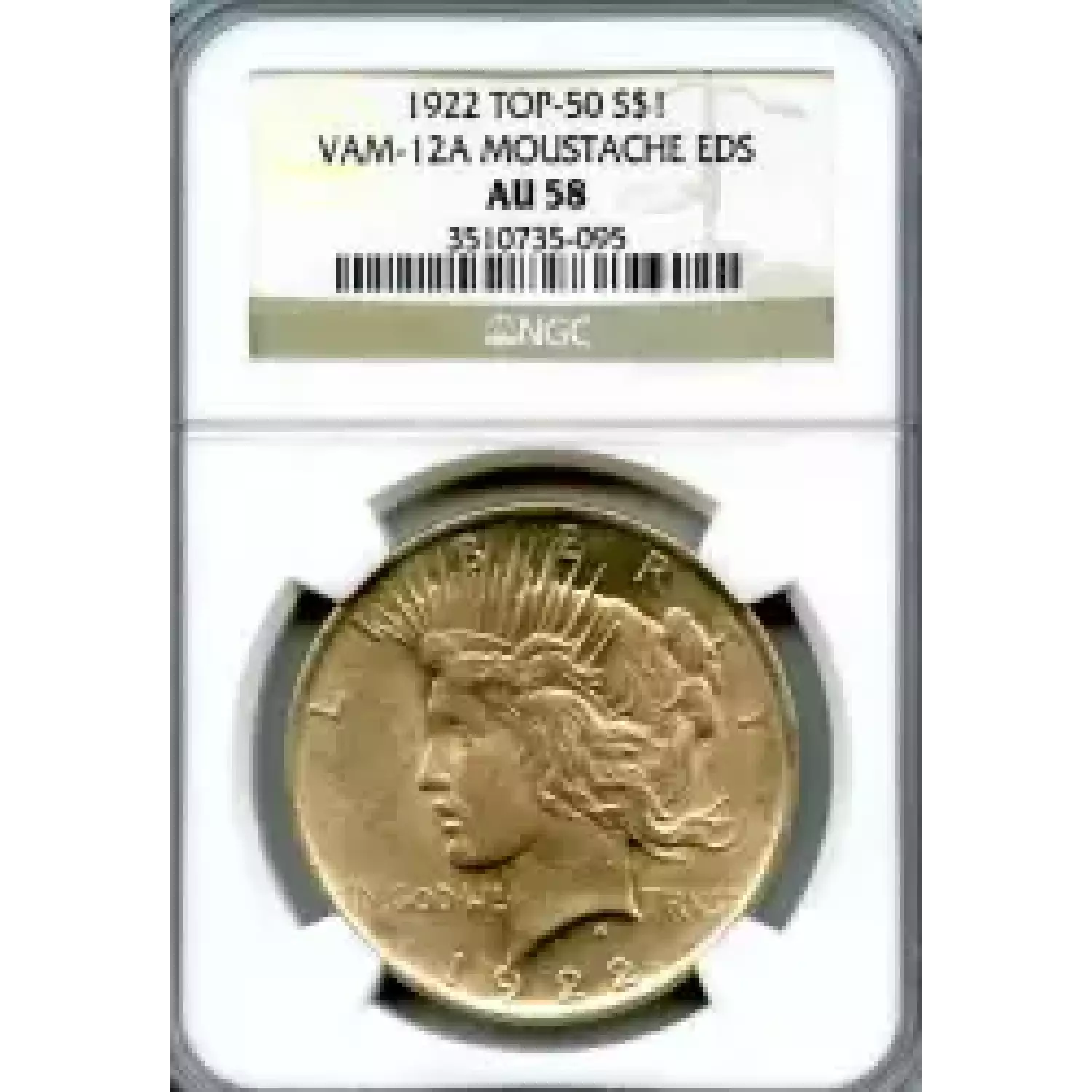 506171 | 1922-AU-58 Peace Silver Dollar NGC AU-58 | NGC | AU-58 | Sold: 30/06/2012 | $375 |
