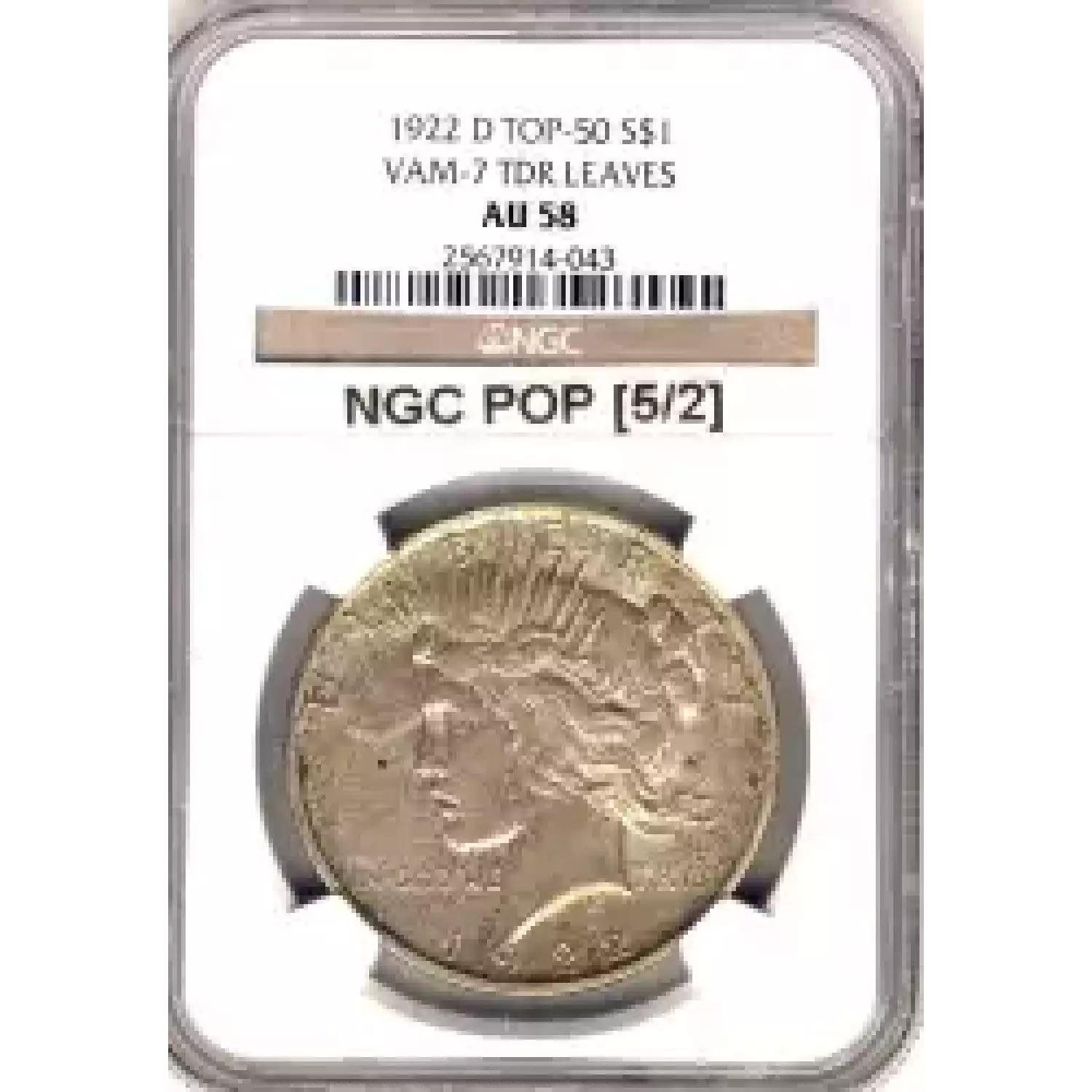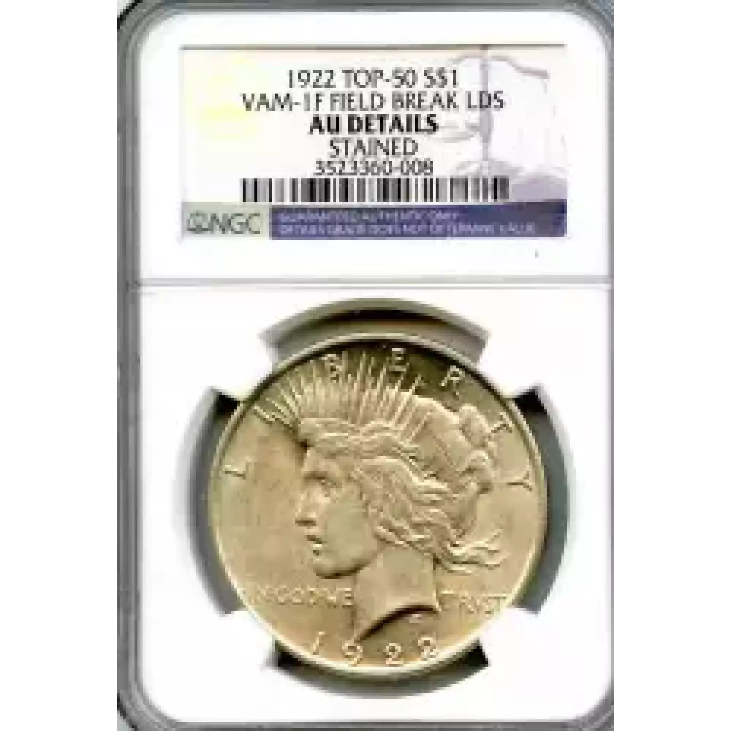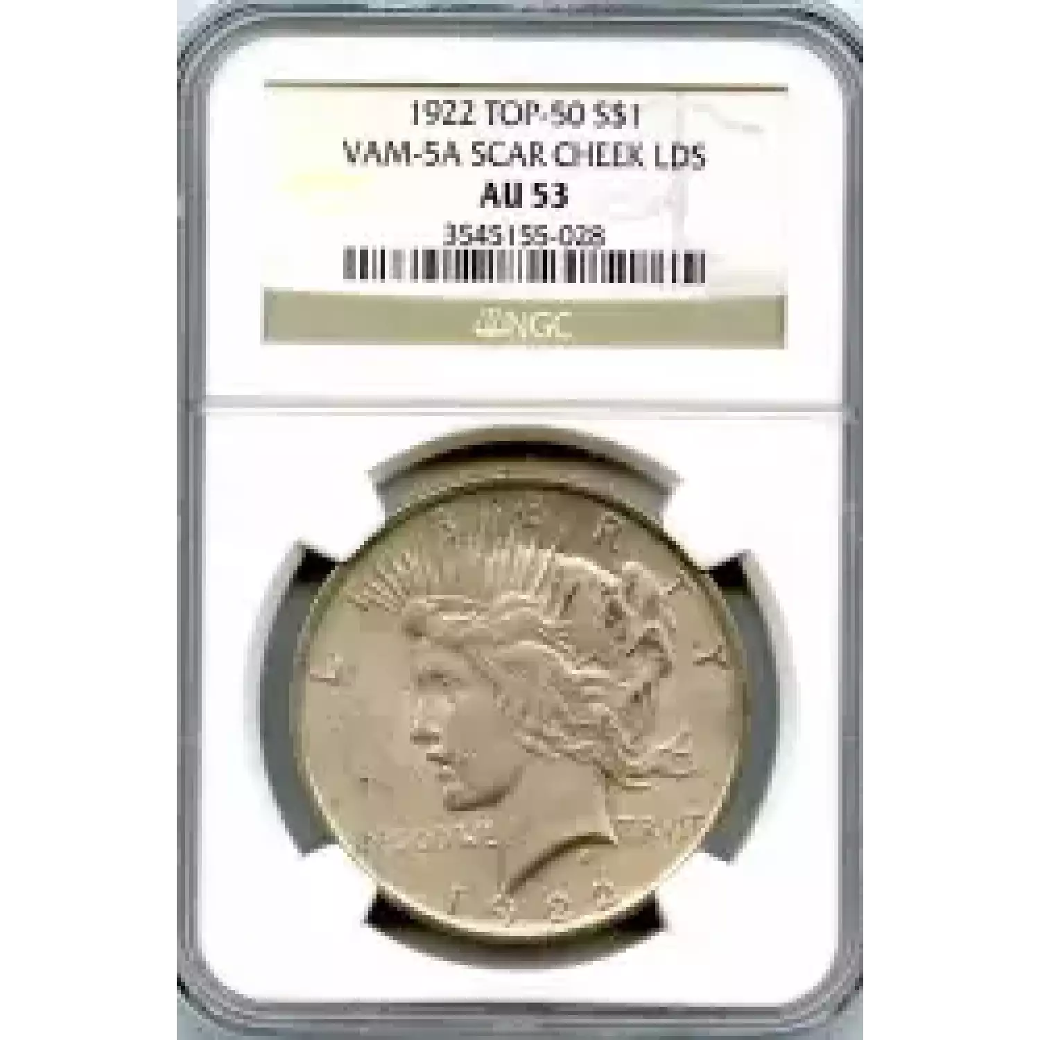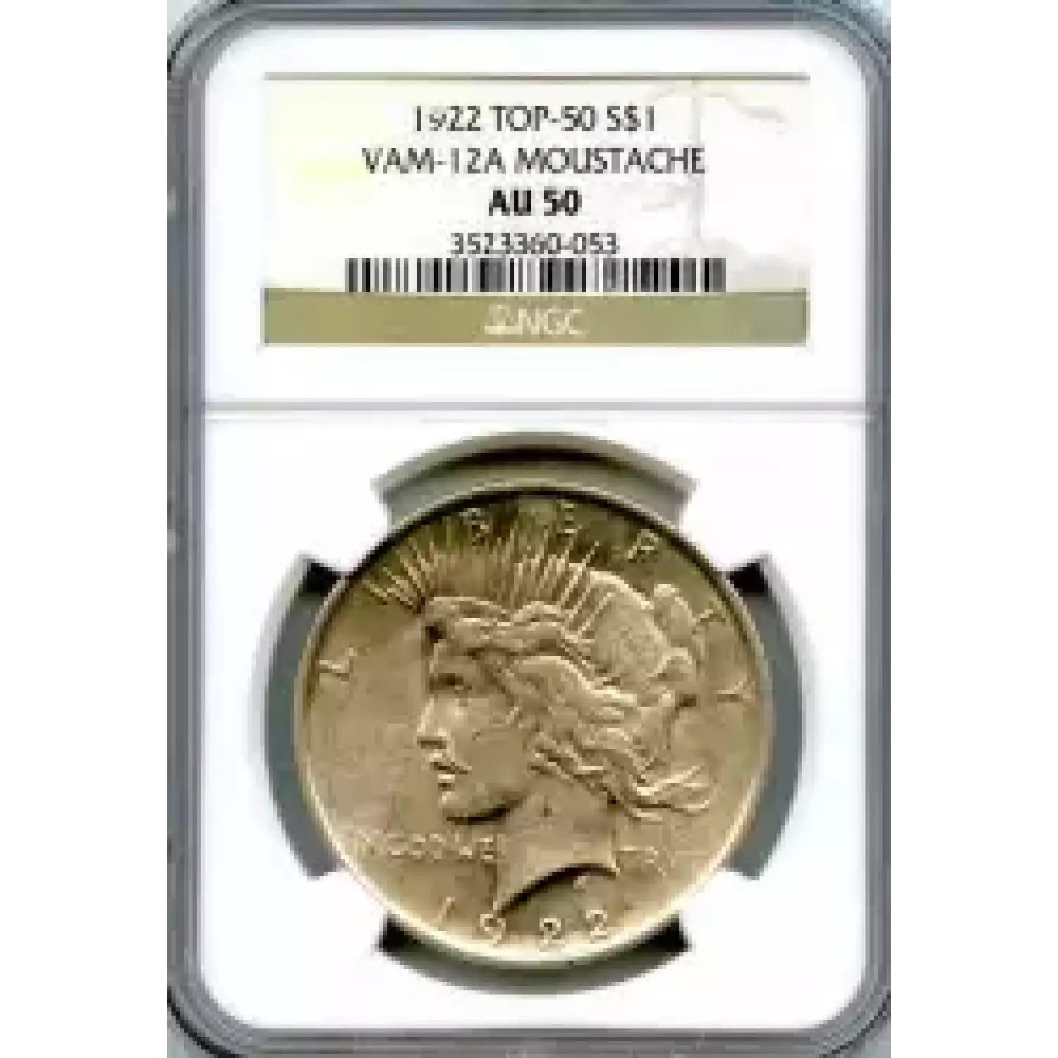 506171 | 1922-AU-58 Peace Silver Dollar NGC AU-58 | NGC | AU-58 | Sold: 30/06/2012 | $375 |