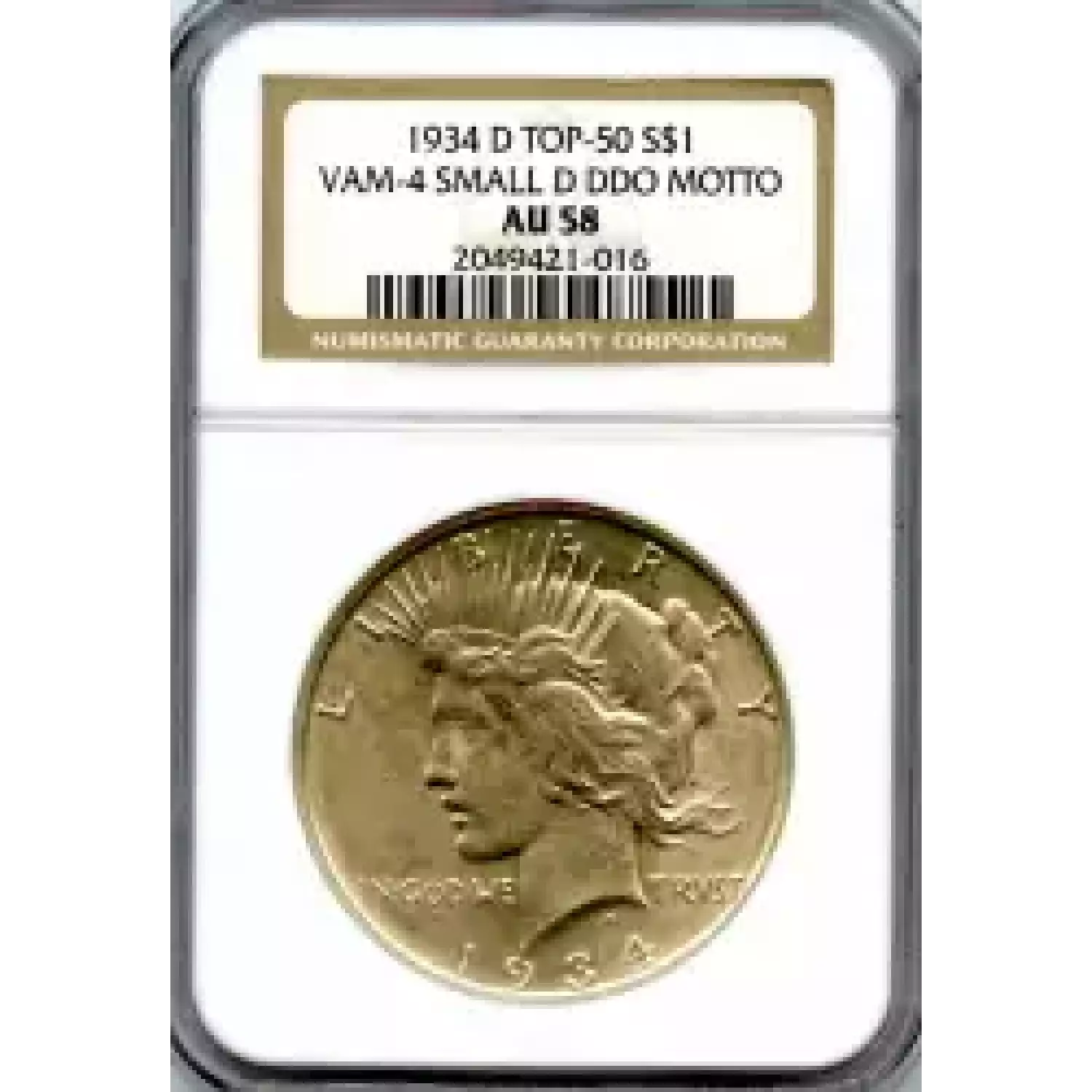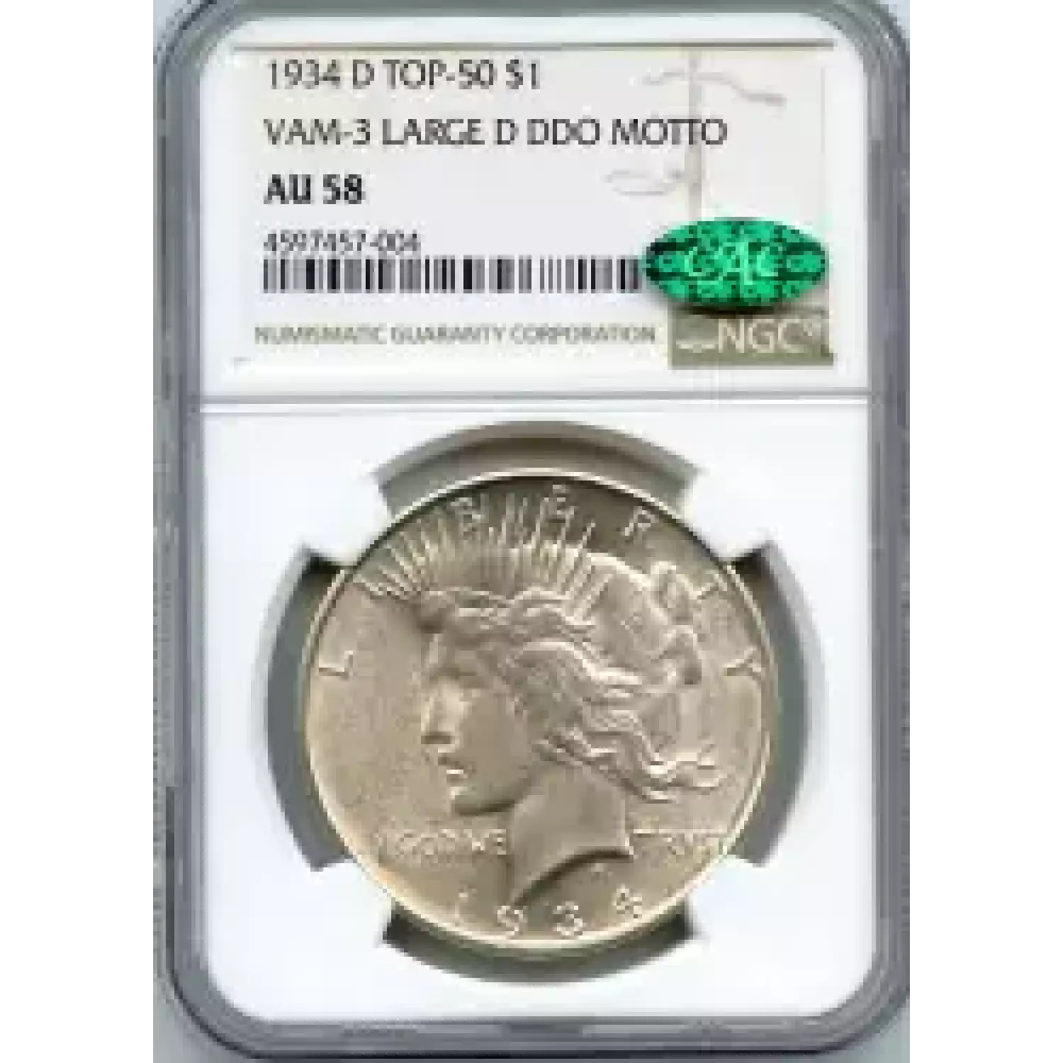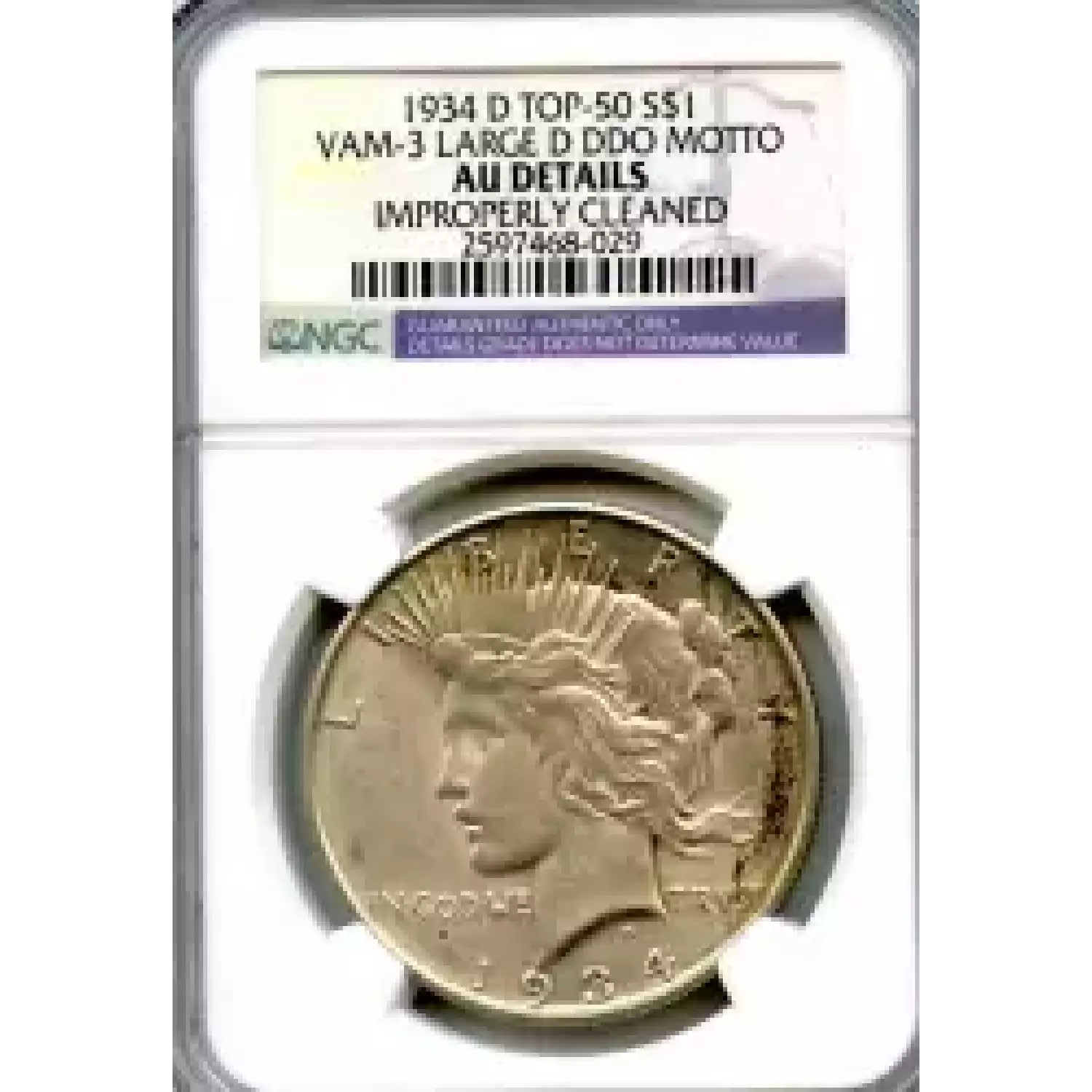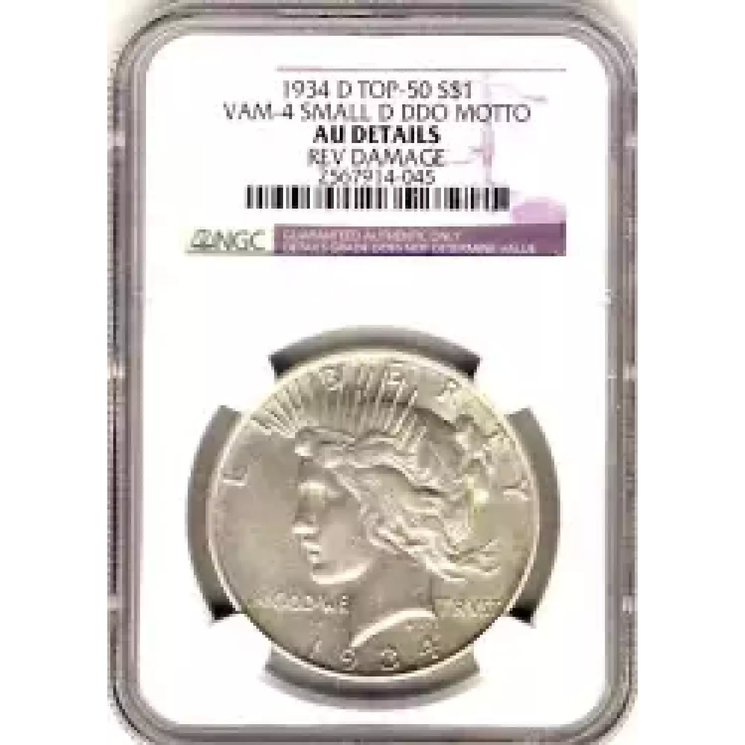 505834 | 1934-AU Details Peace Silver Dollar NGC AU Details | NGC | AU Details | Sold: 22/09/2013 | $78.79 |