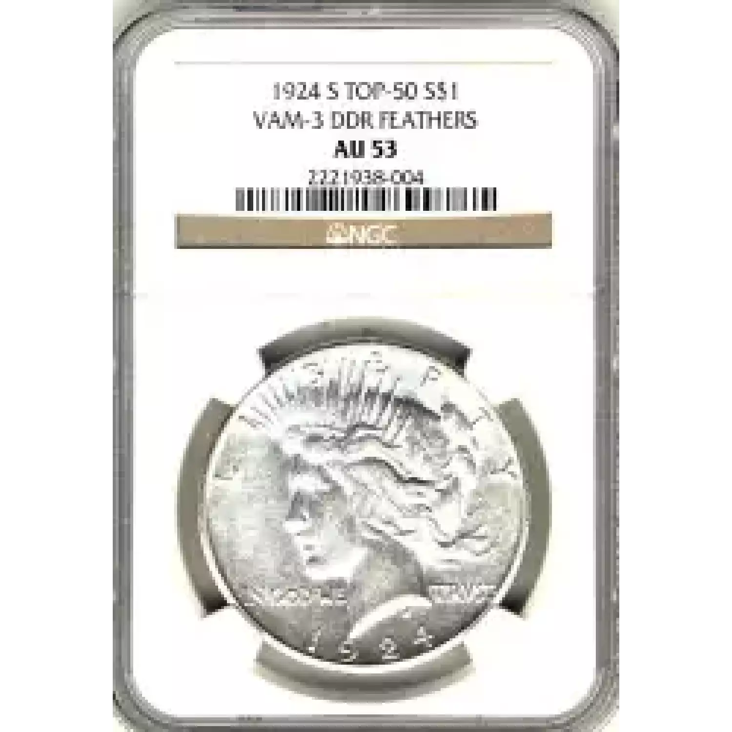 505848 | 1924-AU-53 Peace Silver Dollar NGC AU-53 | NGC | AU-53 | Sold: 22/09/2013 | $152.50 |