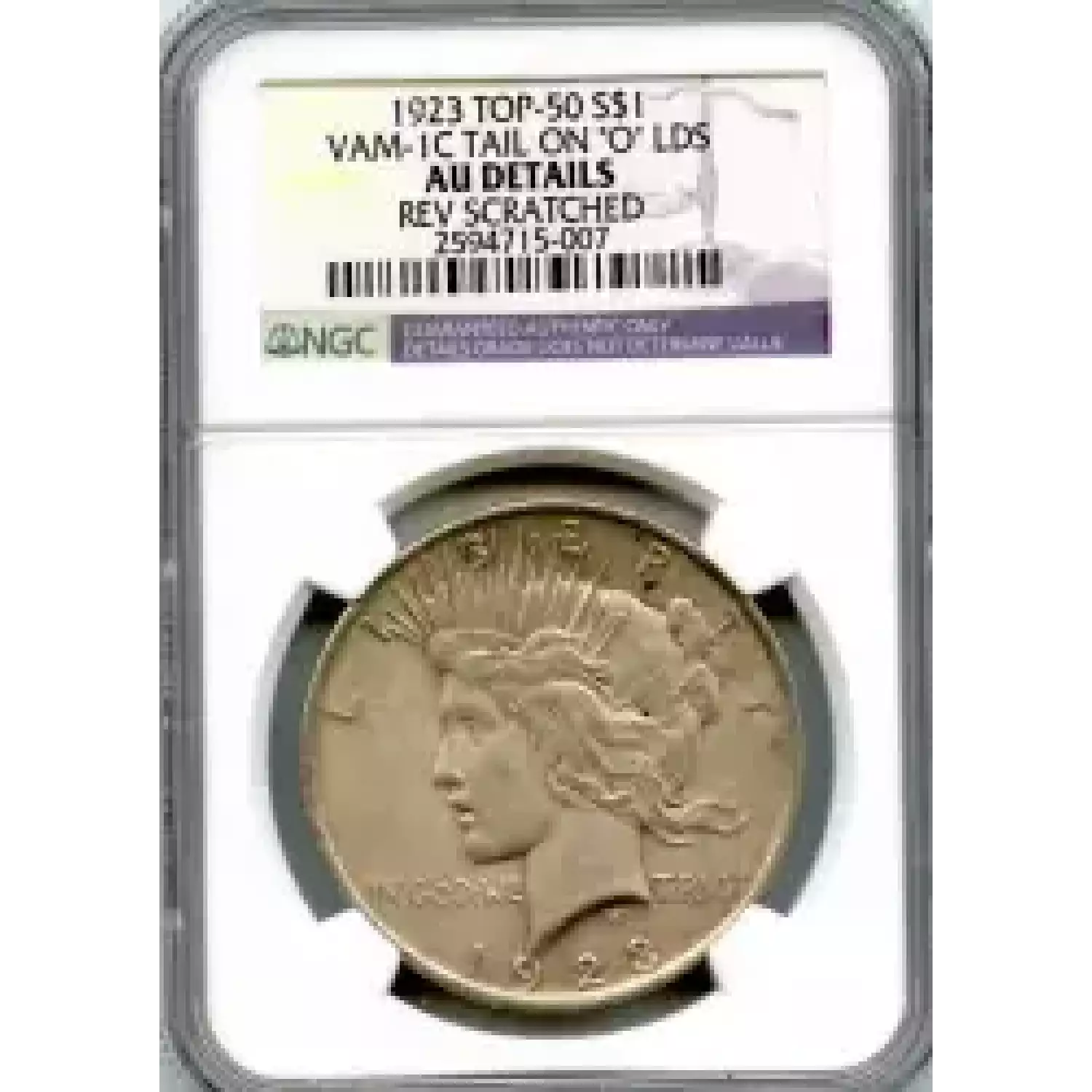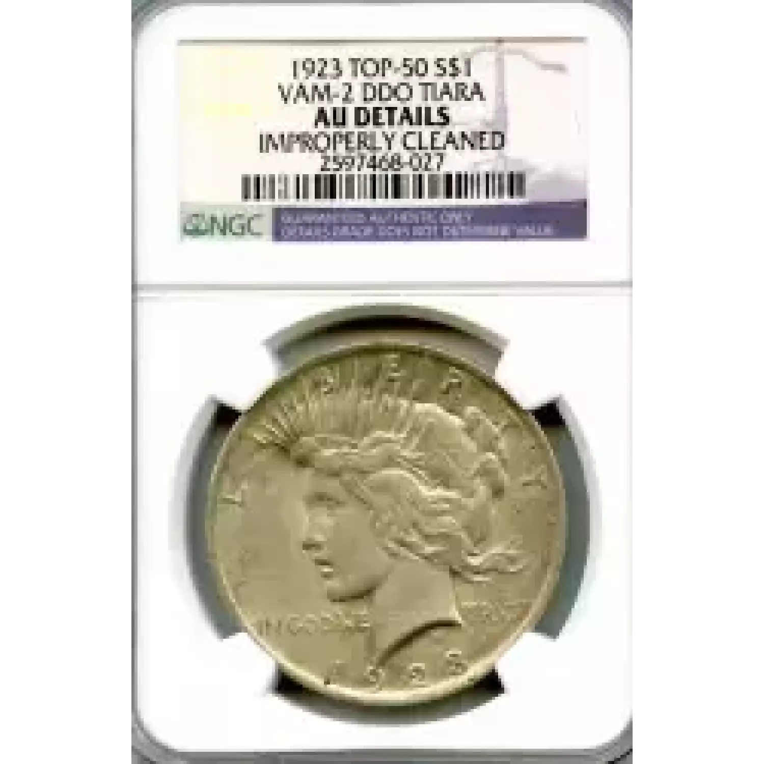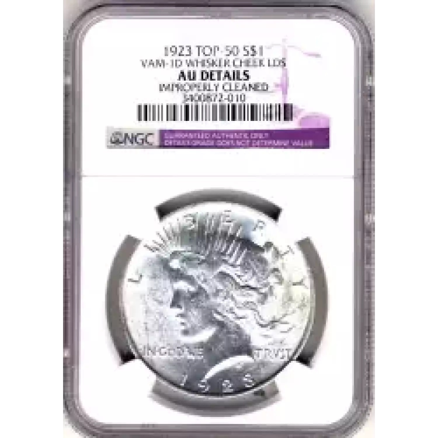 505859 | 1923-AU Details Peace Silver Dollar NGC AU Details | NGC | AU Details | Sold: 22/09/2013 | $66 |