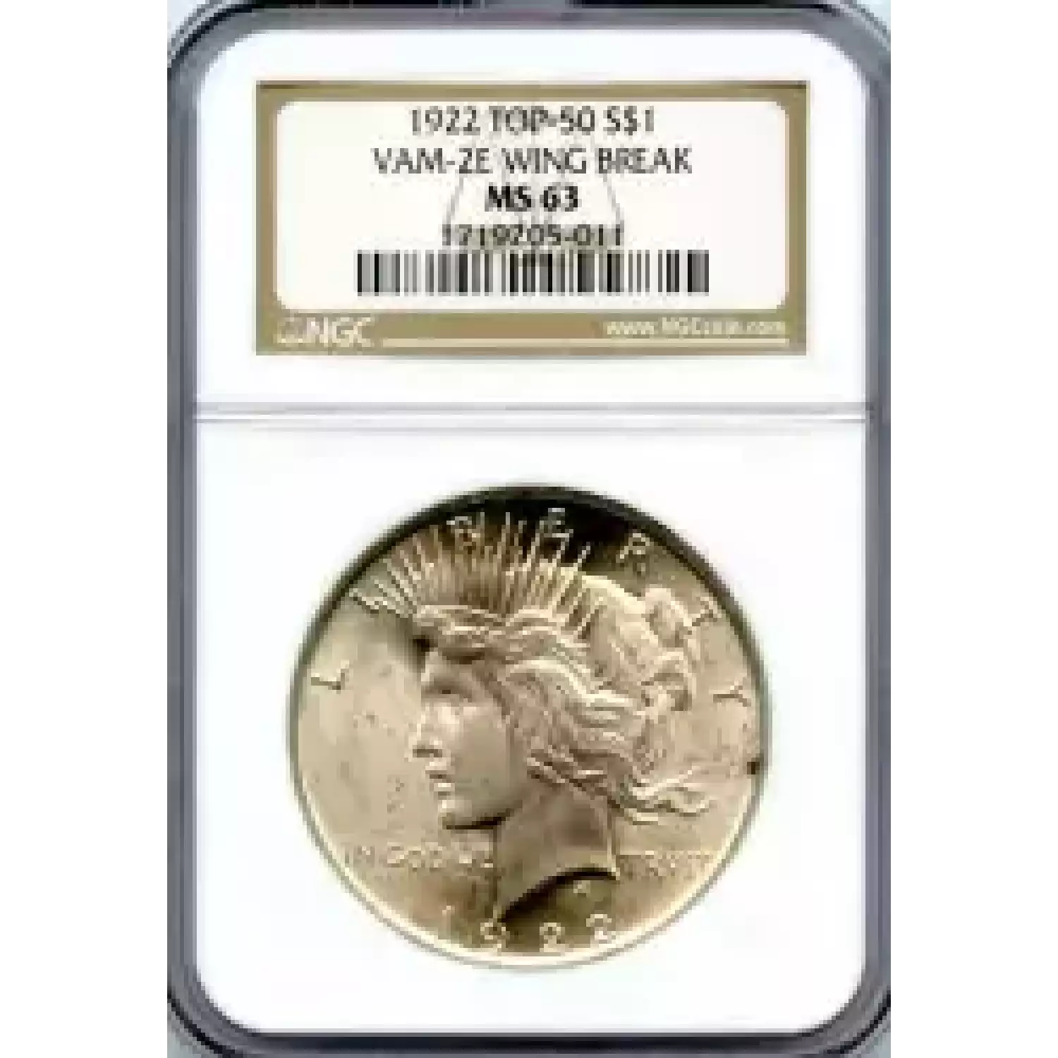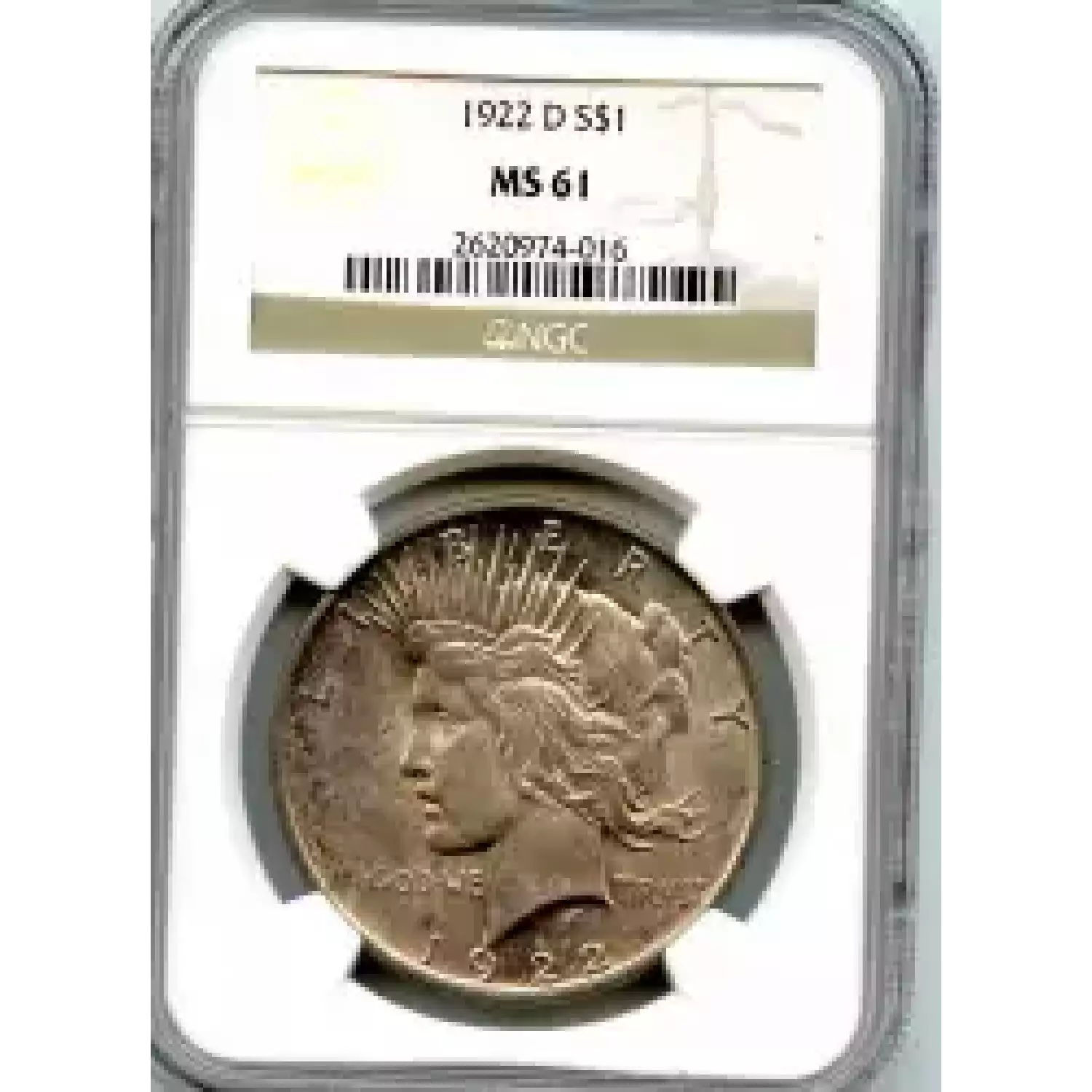 505947 | 1922-MS-62 Peace Silver Dollar NGC MS-62 | NGC | MS-62 | Sold: 15/07/2012 | $240 |
