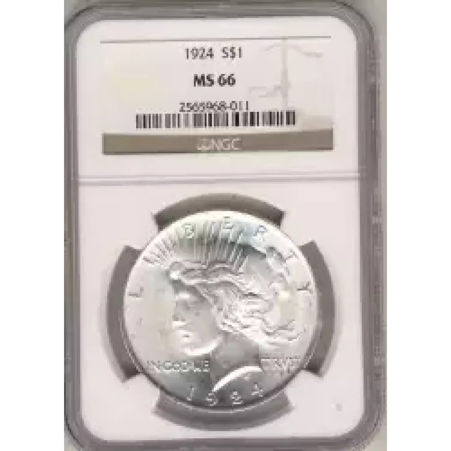 505911 | 1924-MS-66 Peace Silver Dollar NGC MS-66 | NGC | MS-66 | Sold: 23/03/2012 | $575 |