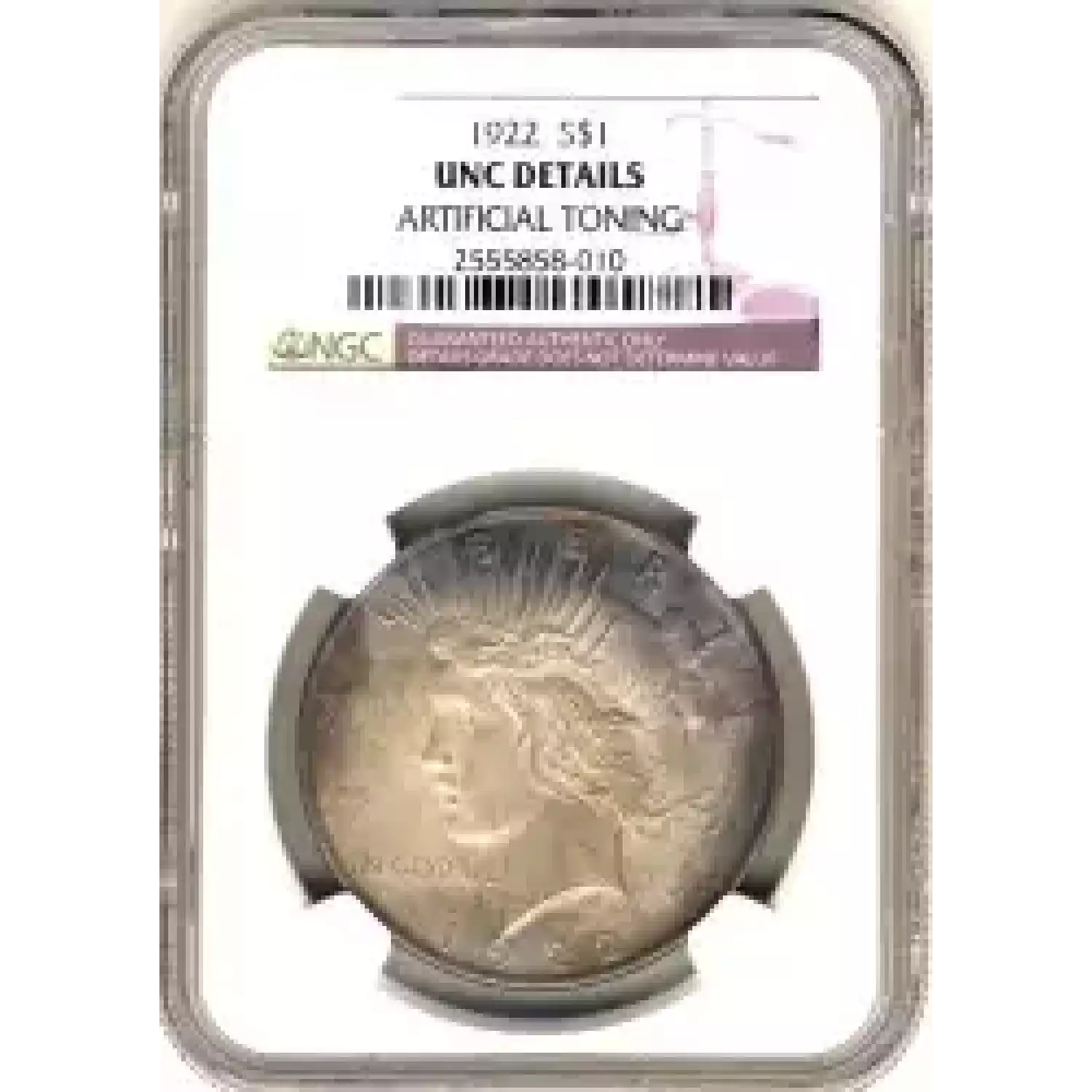 506002 | 1922-UNC Details Peace Silver Dollar NGC UNC Details | NGC | UNC Details | Sold: 11/08/2012 | $31.33 |