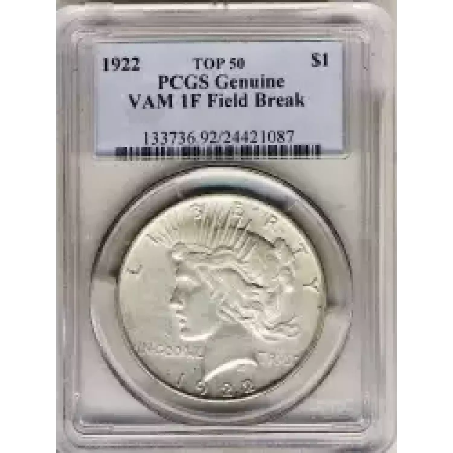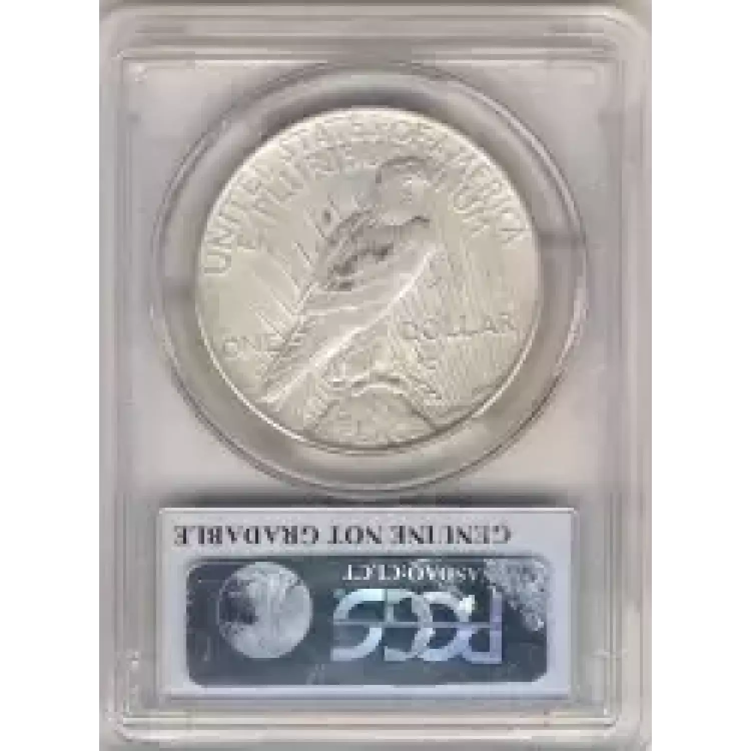 506037 | 1922-Genuine (92 - Cleaning) Peace Silver Dollar PCGS Genuine (92 - Cleaning) | PCGS | Genuine (92 - Cleaning) | Sold: 18/11/2013 | $22.50 |