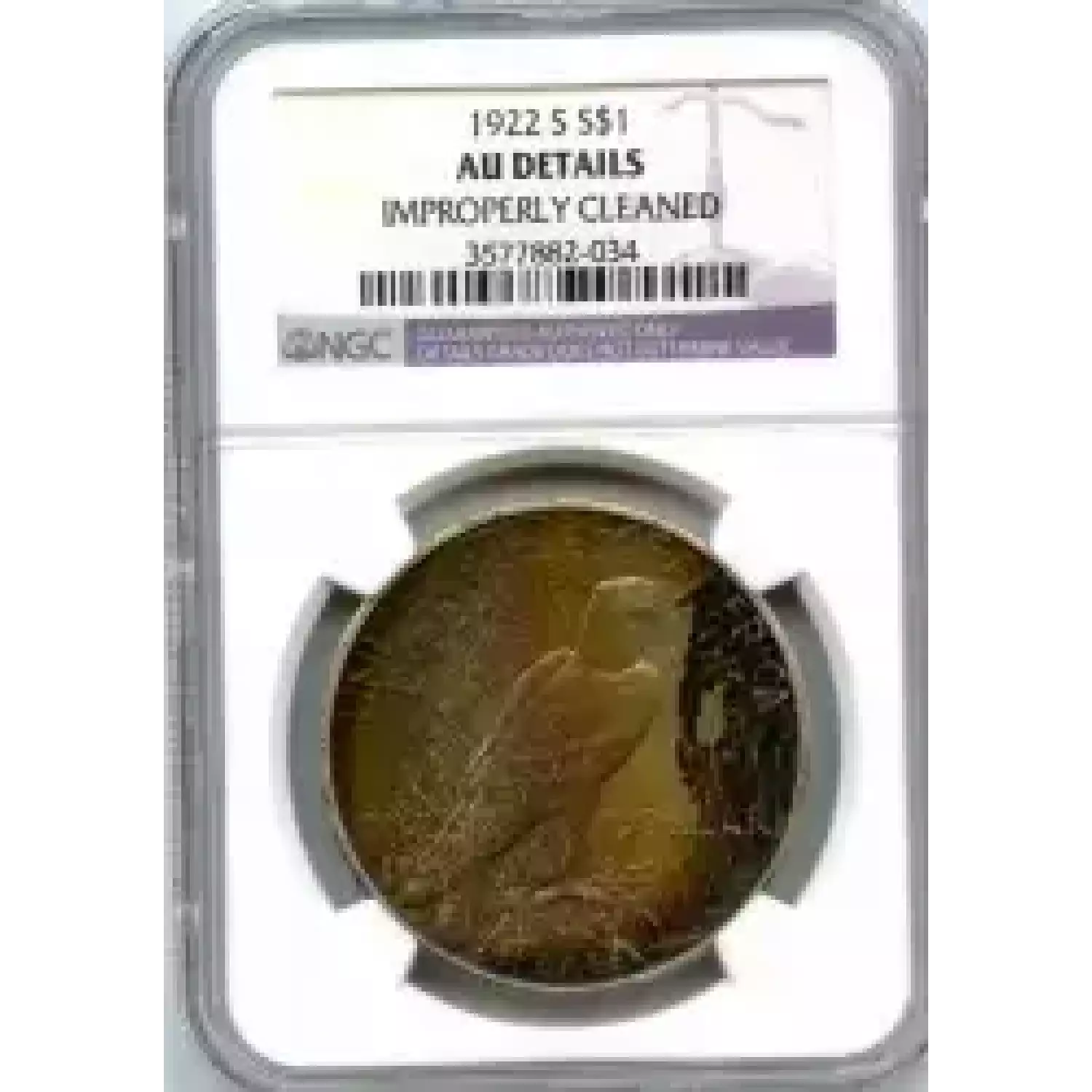 505674 | 1922-AU Details Peace Silver Dollar NGC AU Details | NGC | AU Details | Sold: 17/03/2012 | $36.02 |