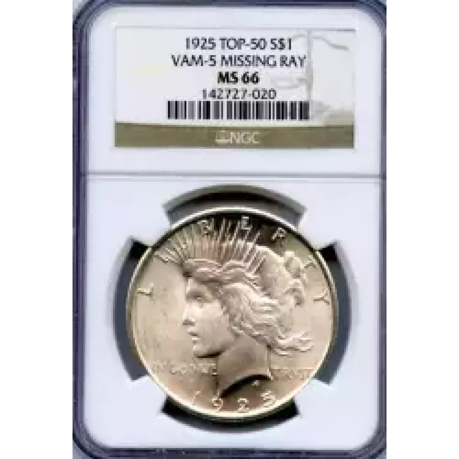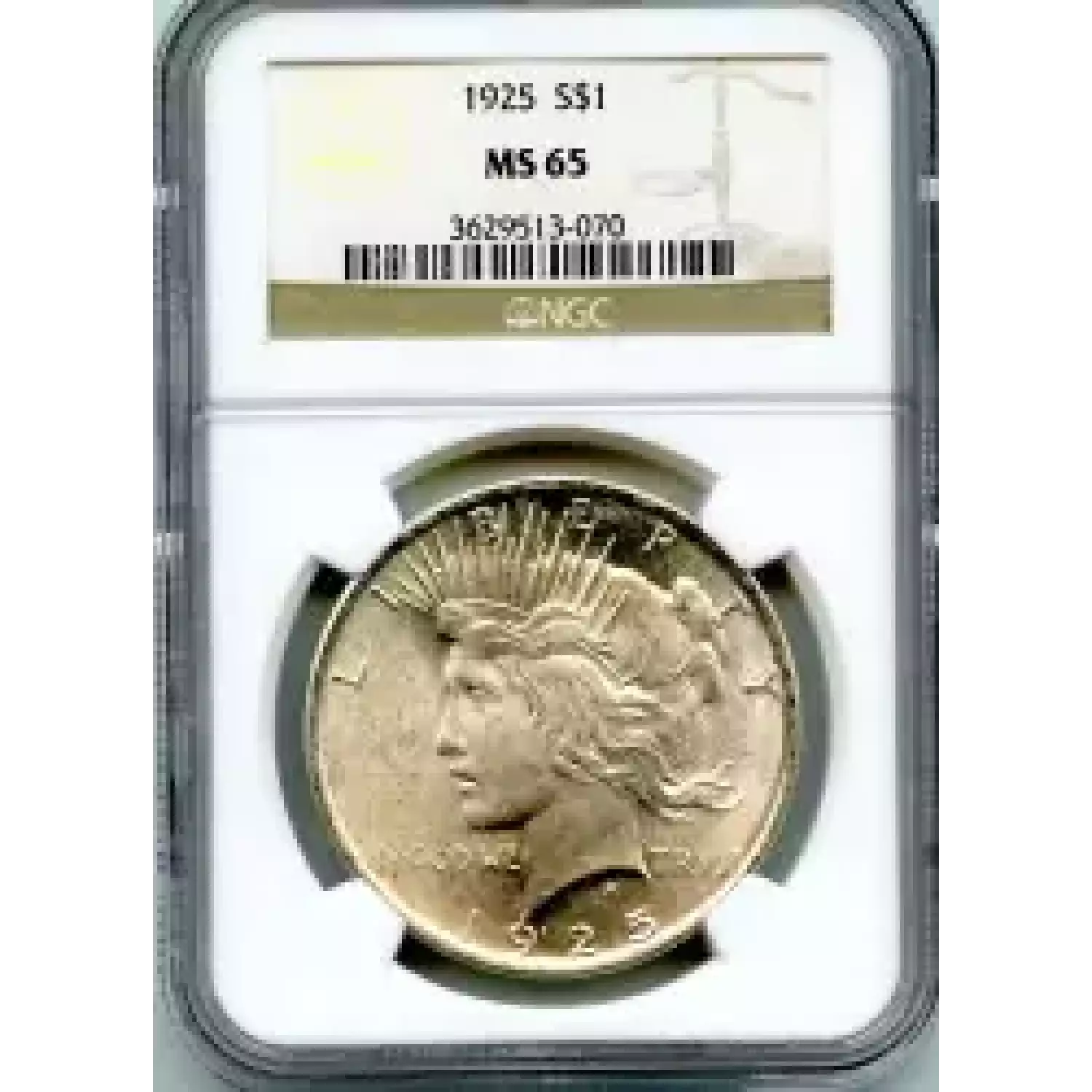 506148 | 1925-MS-66 Peace Silver Dollar NGC MS-66 | NGC | MS-66 | Sold: 06/11/2012 | $1,900 |