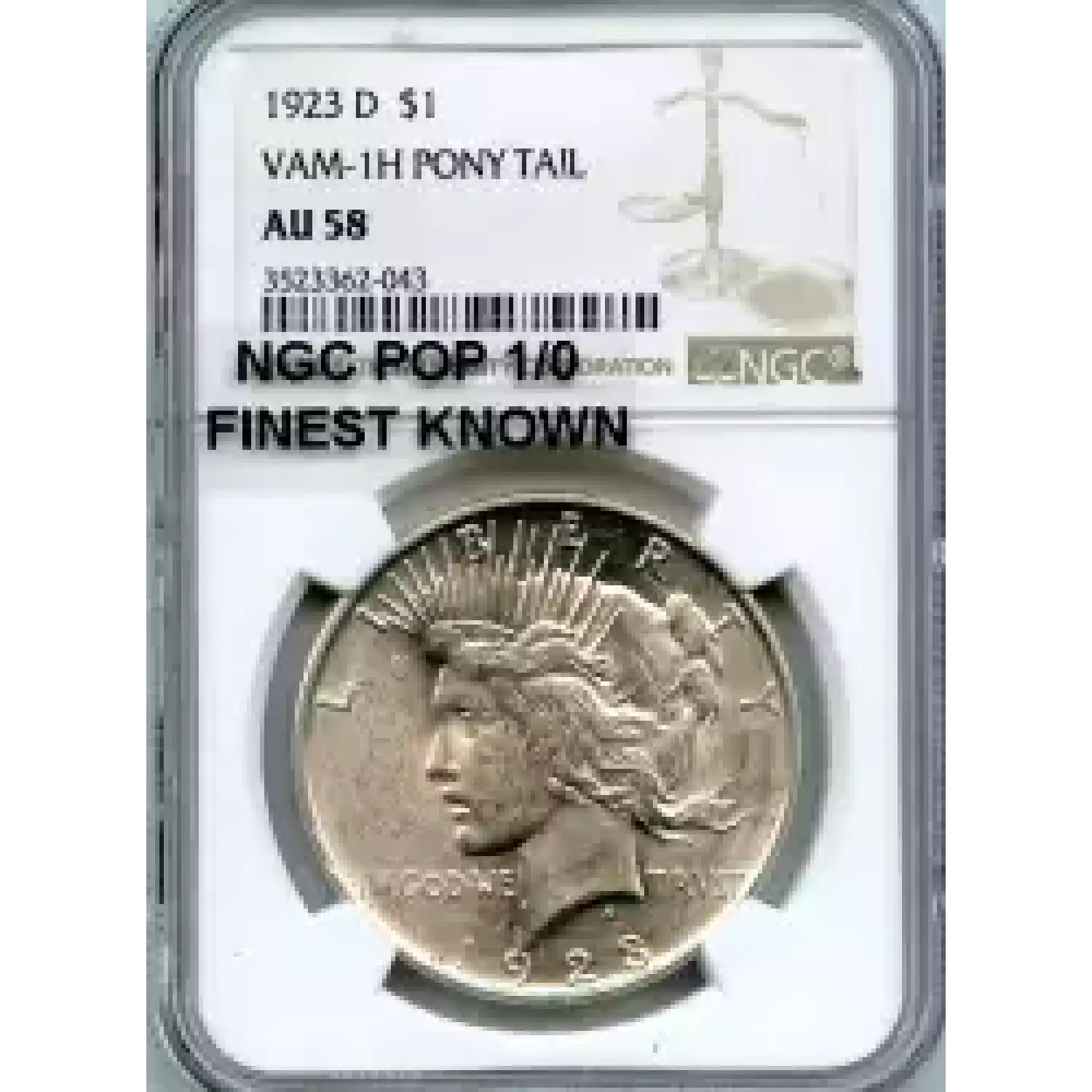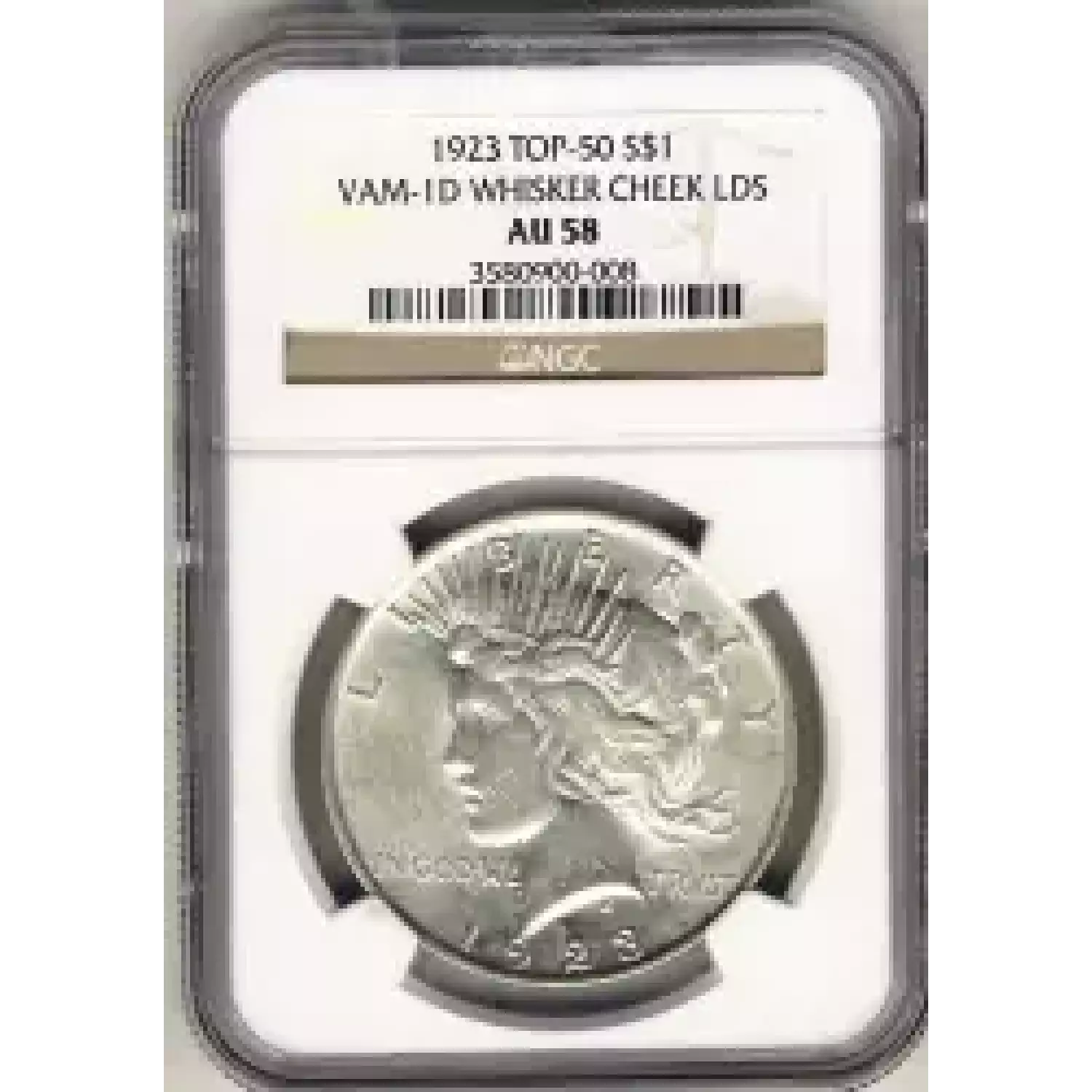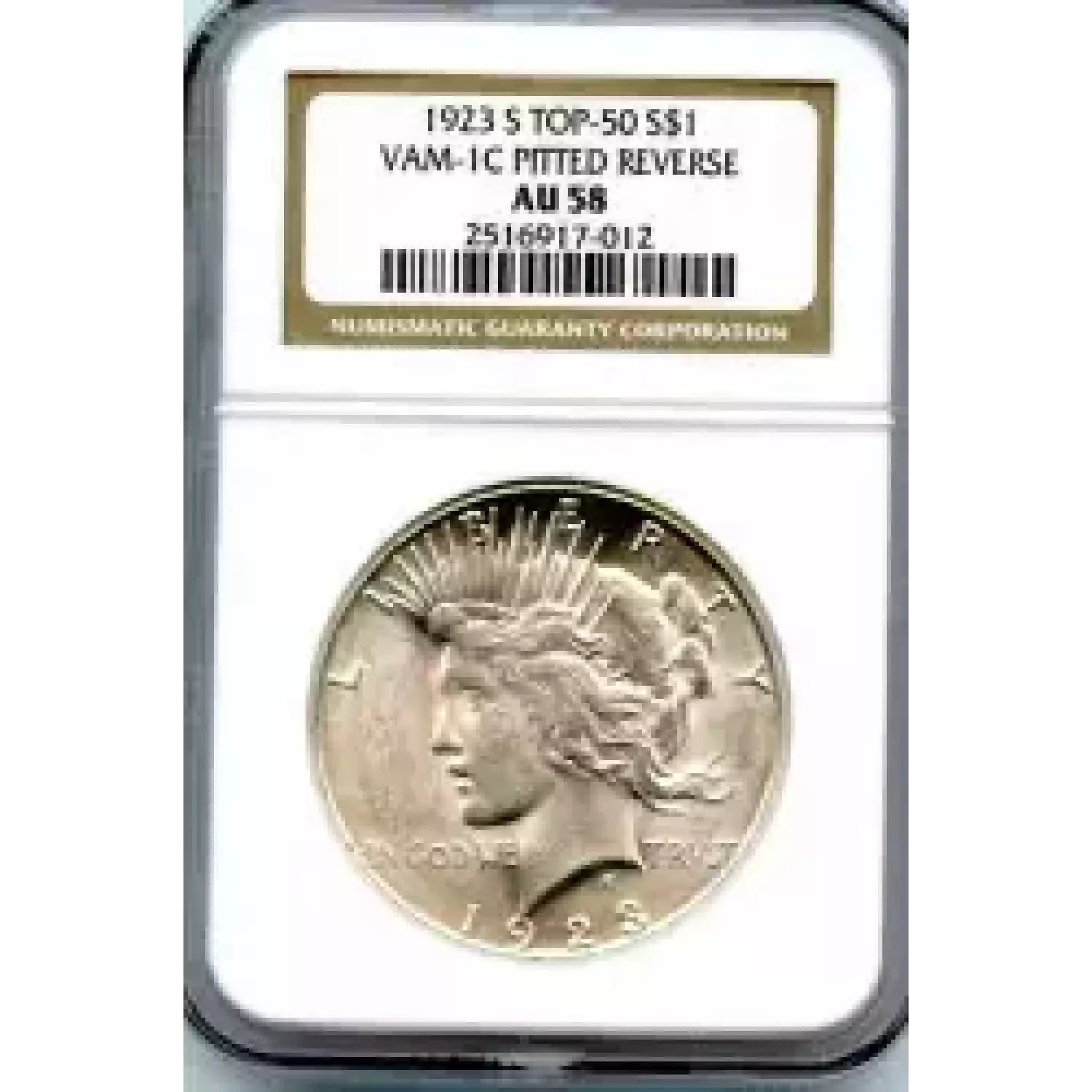 506172 | 1923-AU-58 Peace Silver Dollar NGC AU-58 | NGC | AU-58 | Sold: 08/03/2015 | $75 |