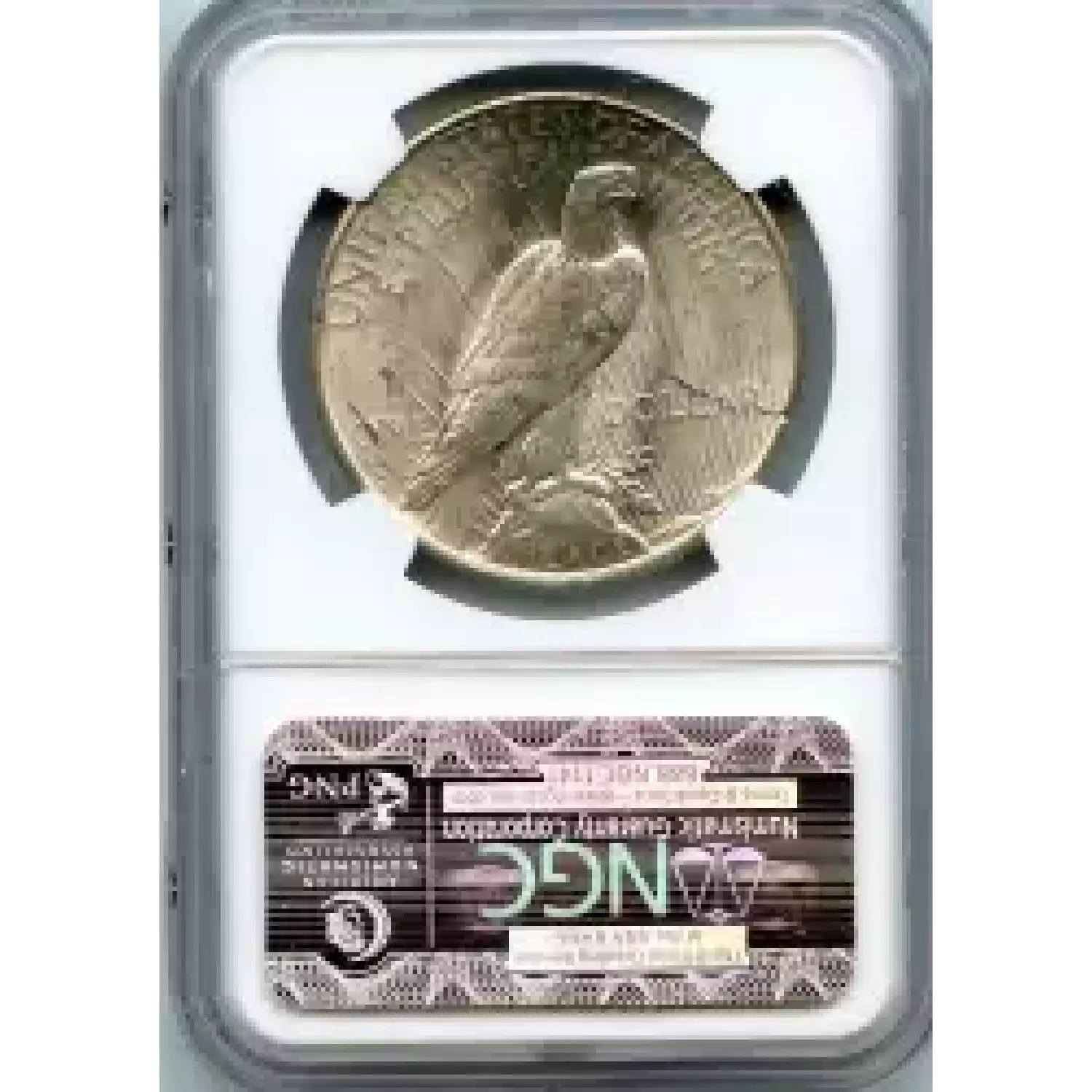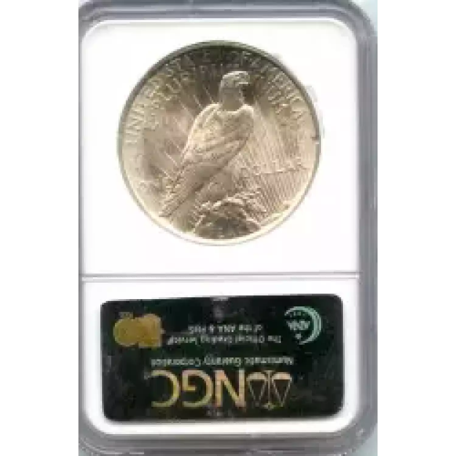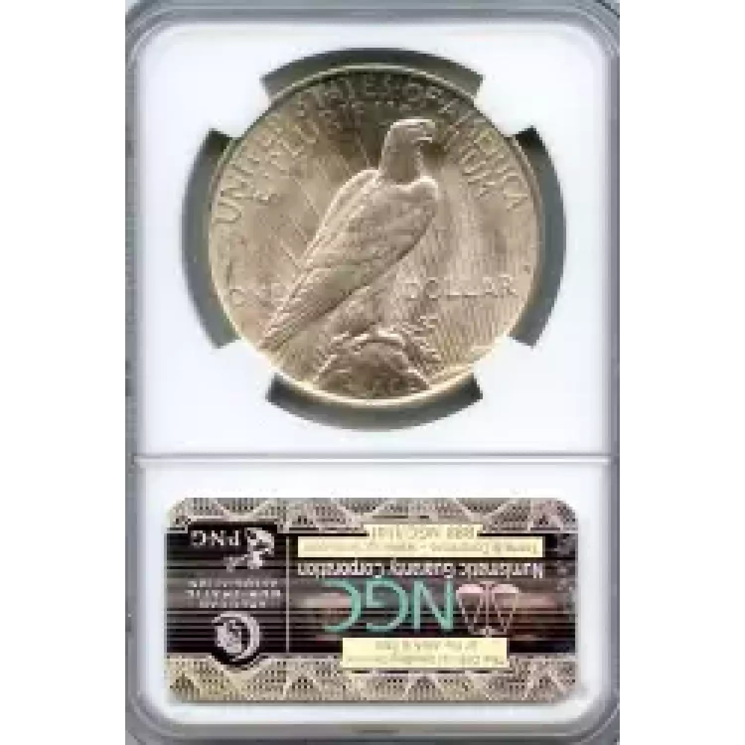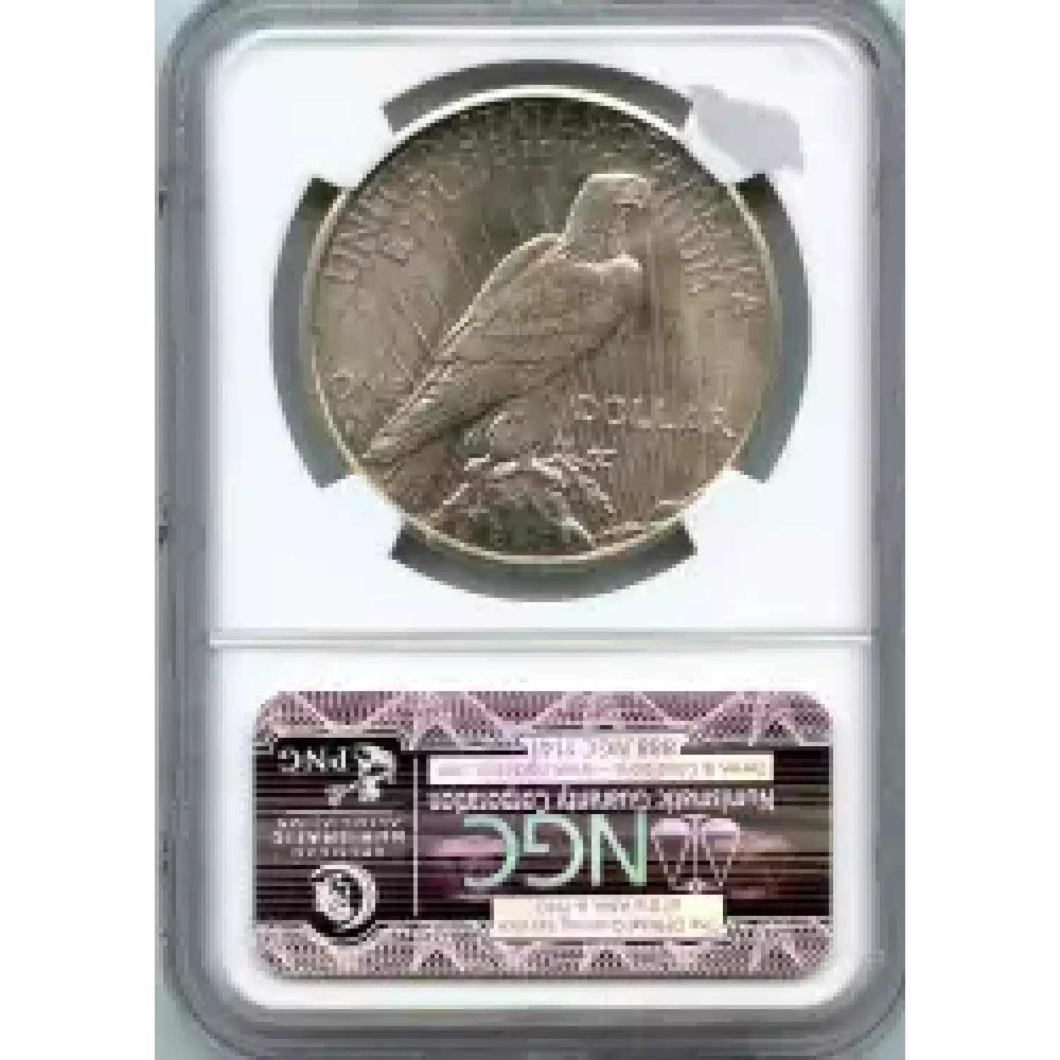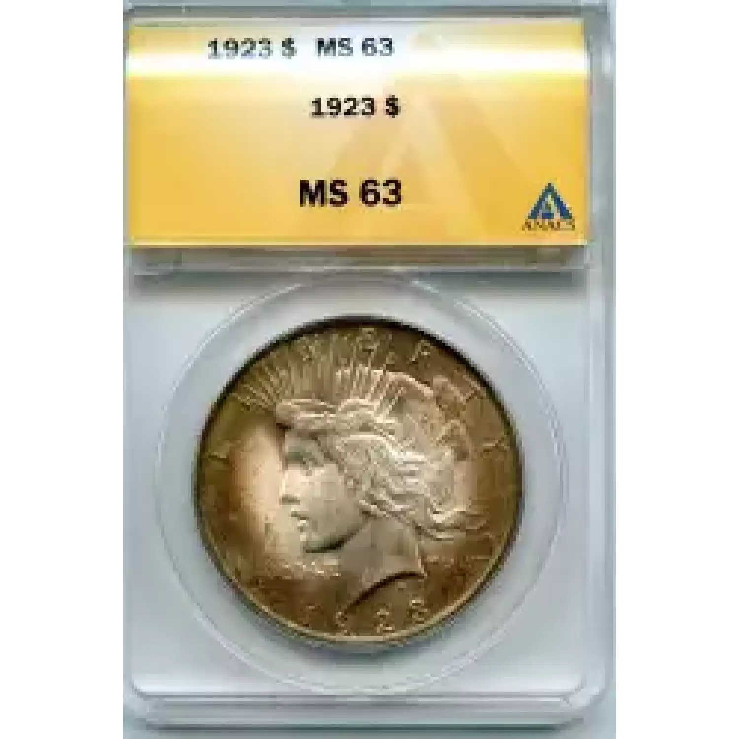 513213 | 1923-MS-62 Peace Silver Dollar NGC MS-62 | NGC | MS-62 | Sold: 06/05/2020 | $295 |