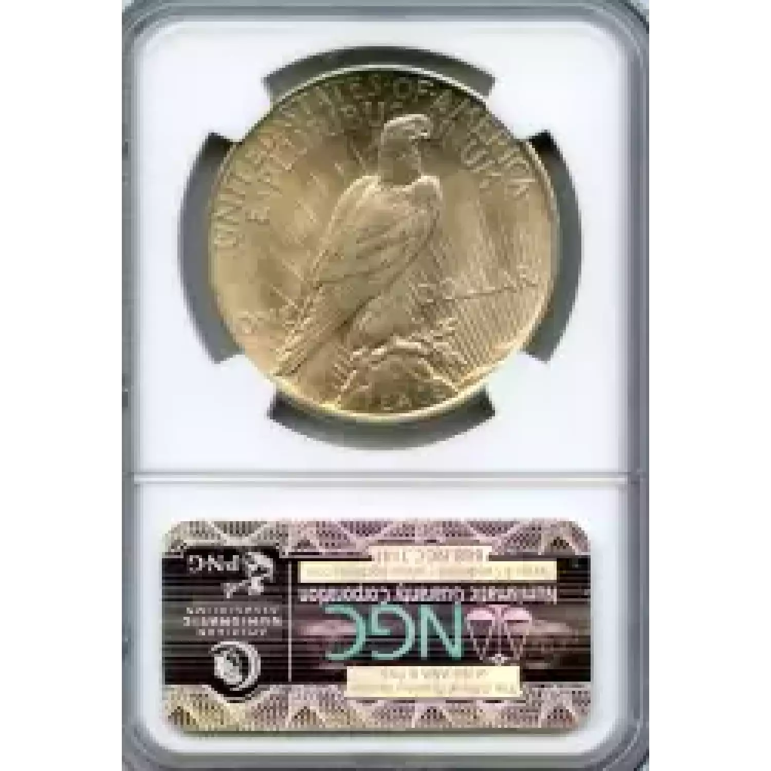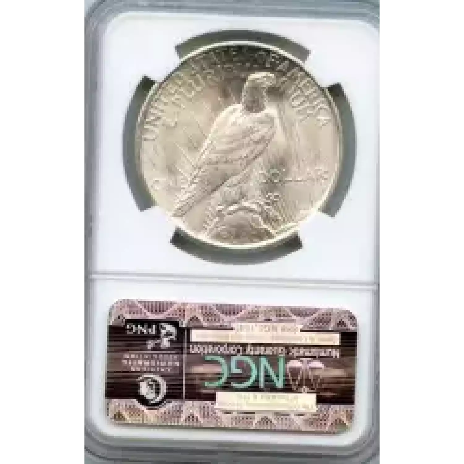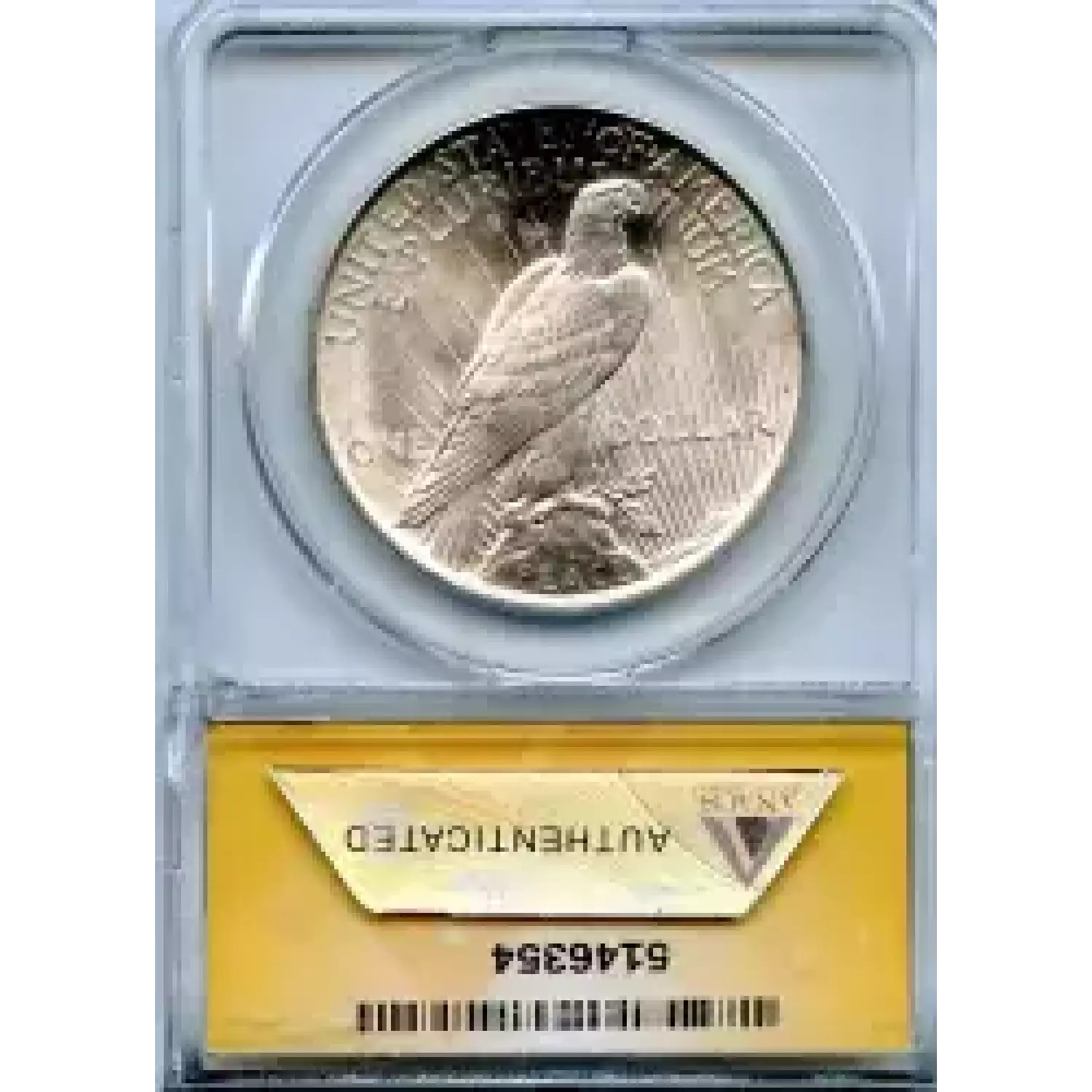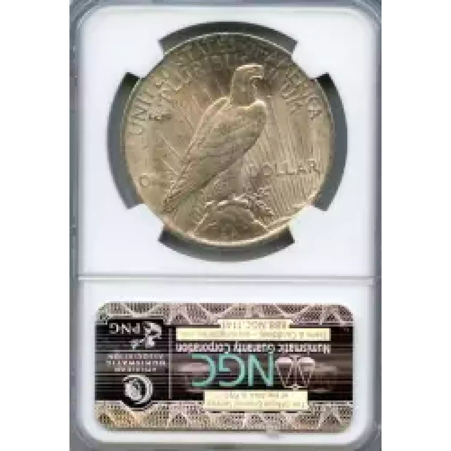 513213 | 1923-MS-62 Peace Silver Dollar NGC MS-62 | NGC | MS-62 | Sold: 06/05/2020 | $295 |