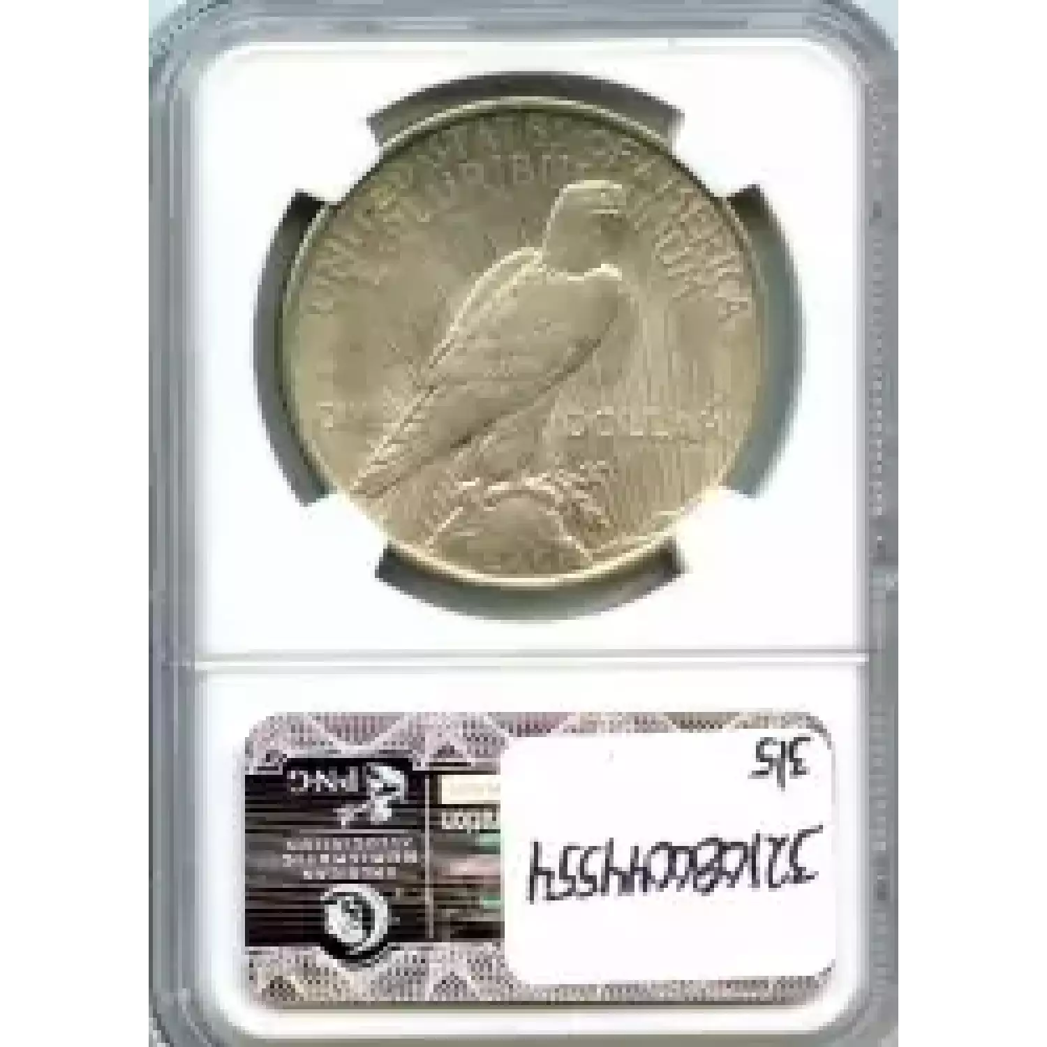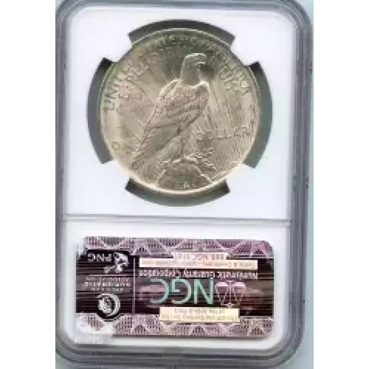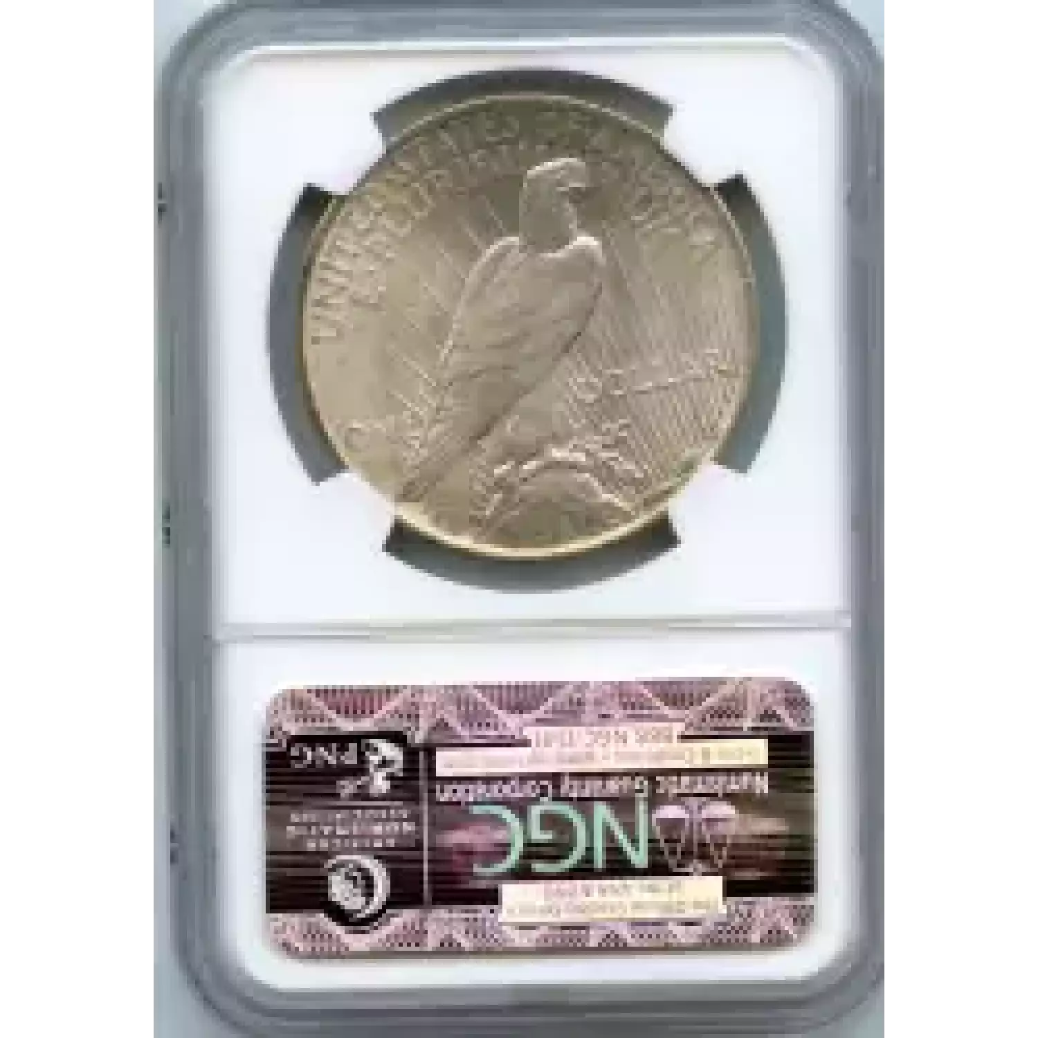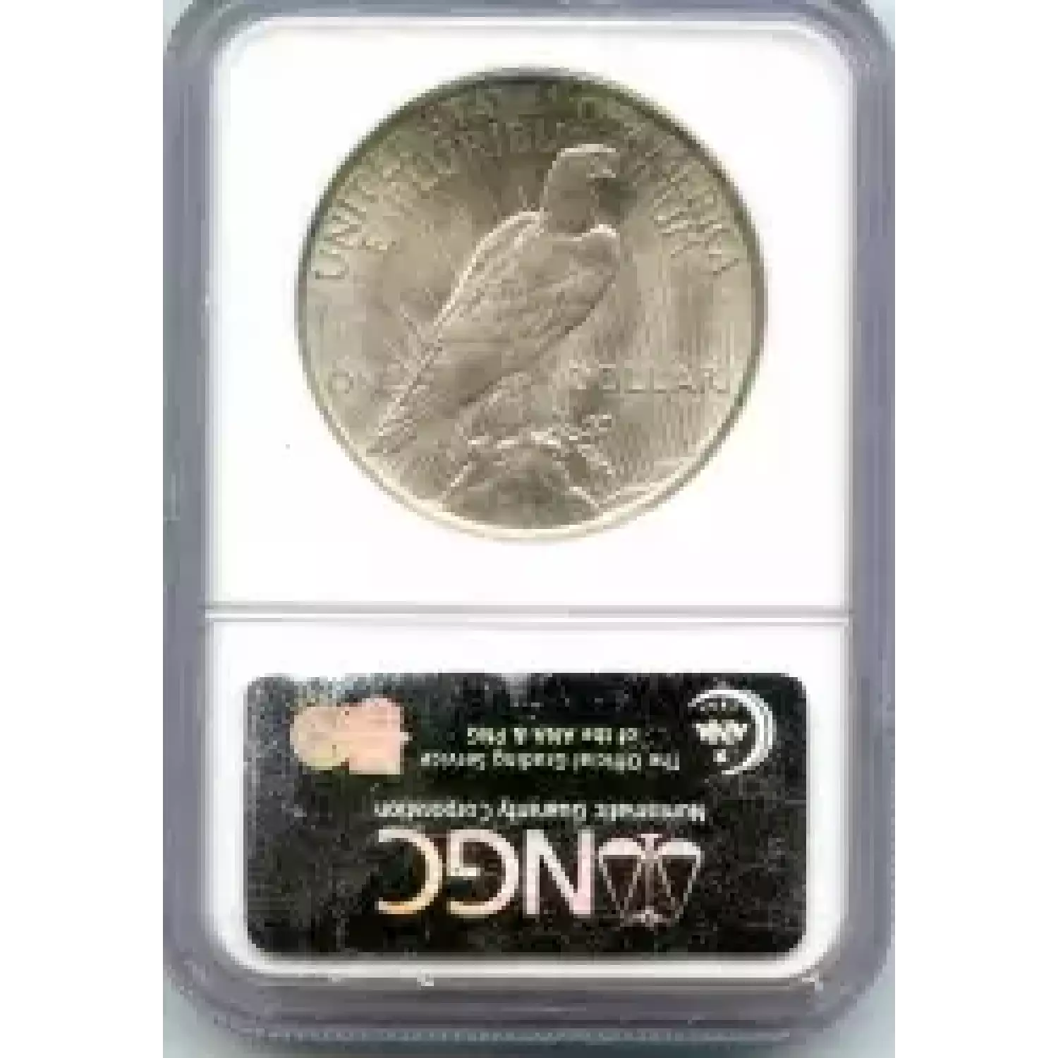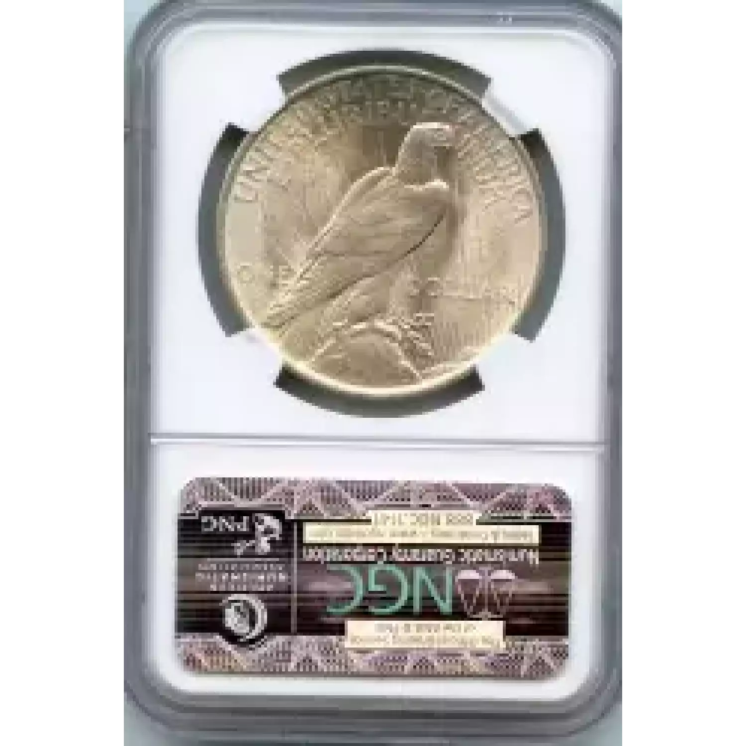 513213 | 1923-MS-62 Peace Silver Dollar NGC MS-62 | NGC | MS-62 | Sold: 06/05/2020 | $295 |