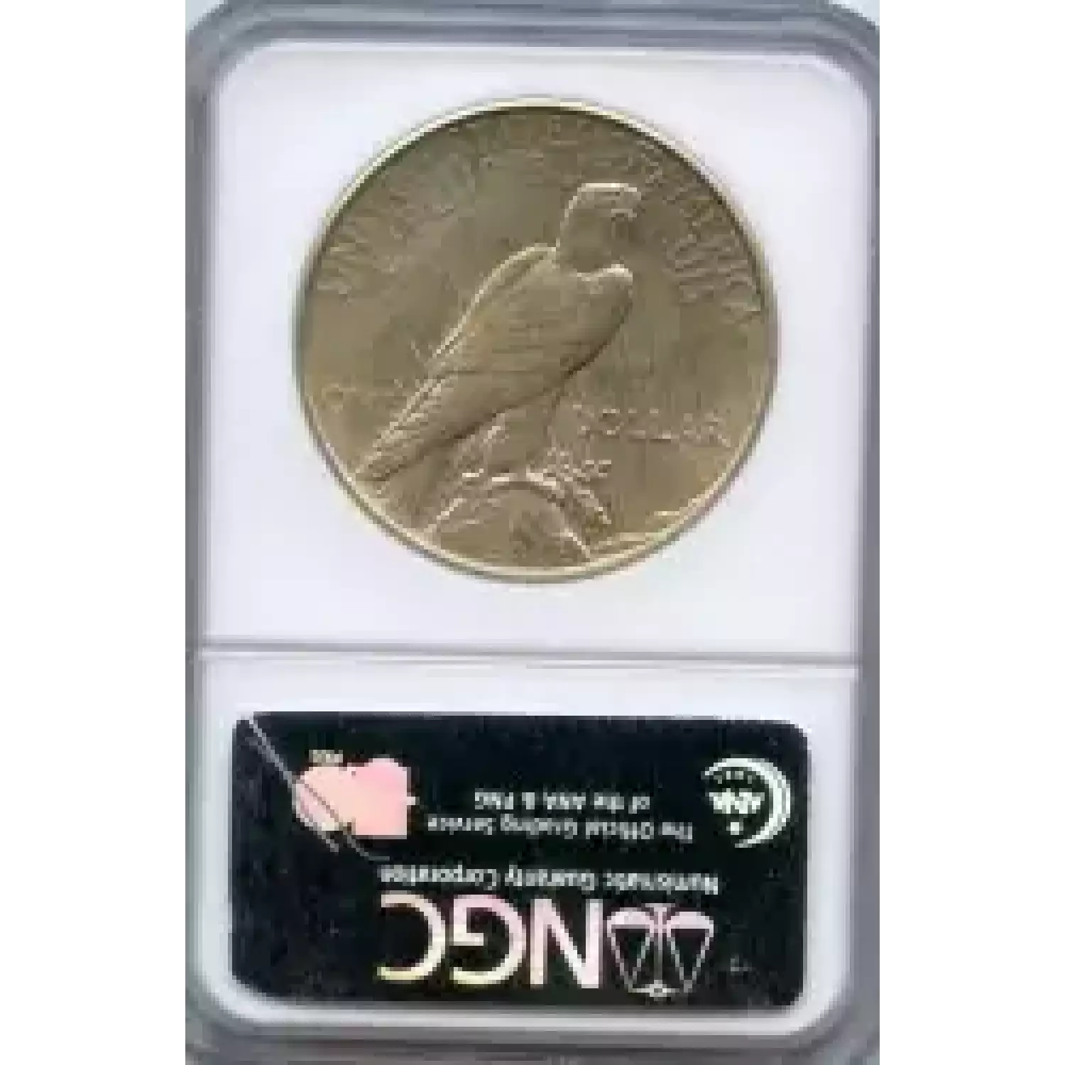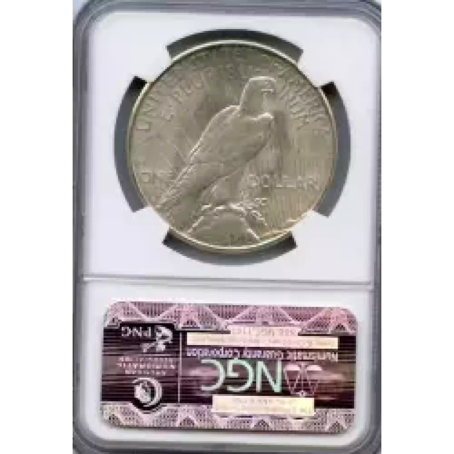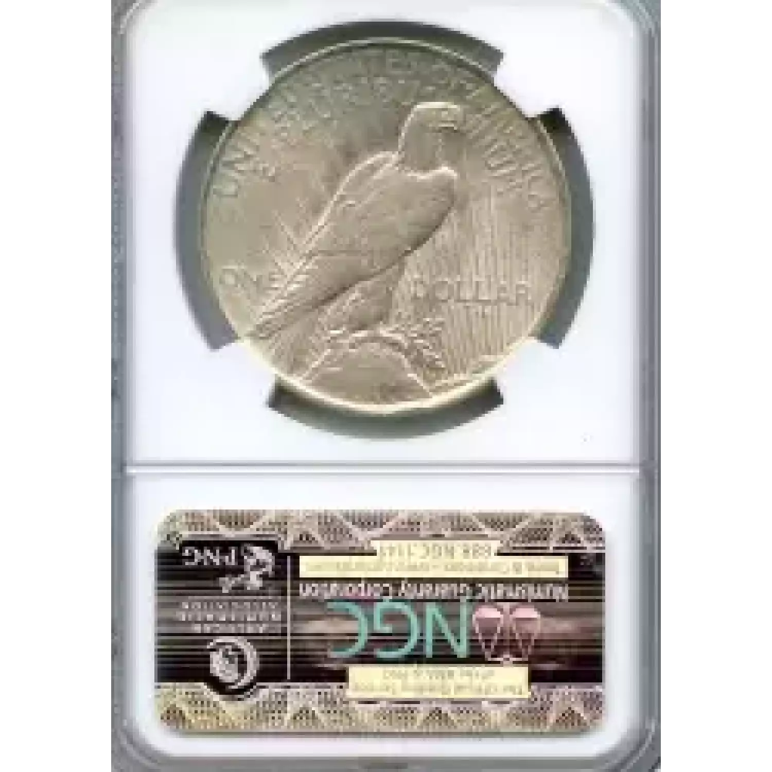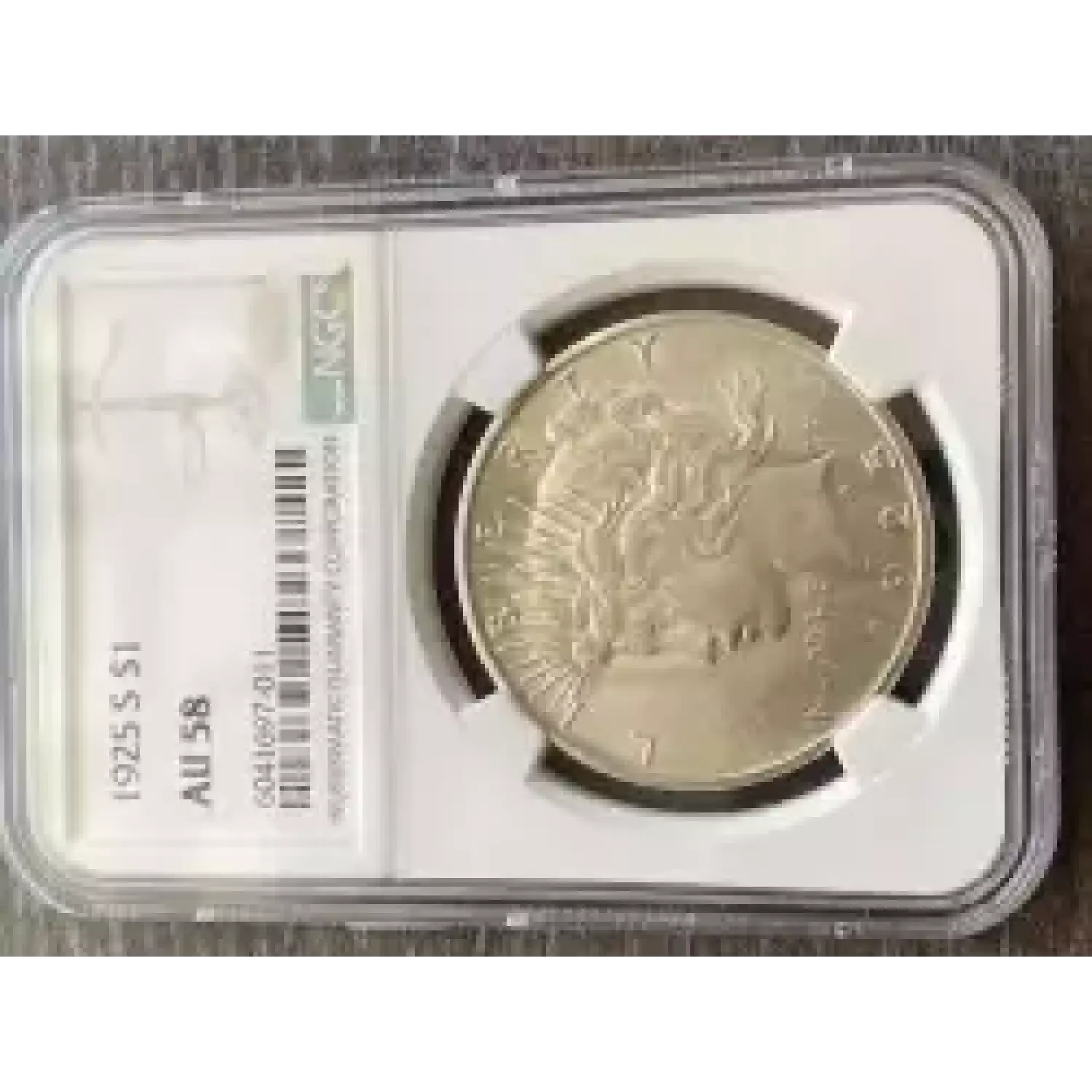 512048 | 1925-AU-55 Peace Silver Dollar NGC AU-55 | NGC | AU-55 | Sold: 18/10/2018 | $75 |