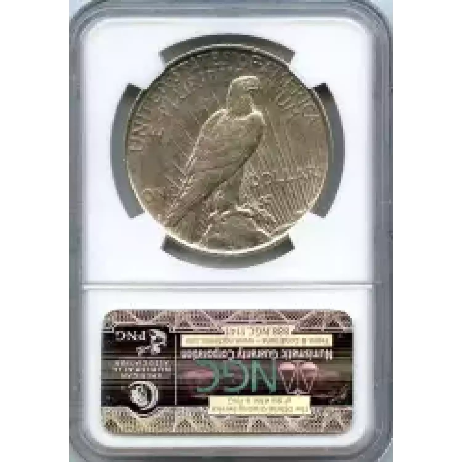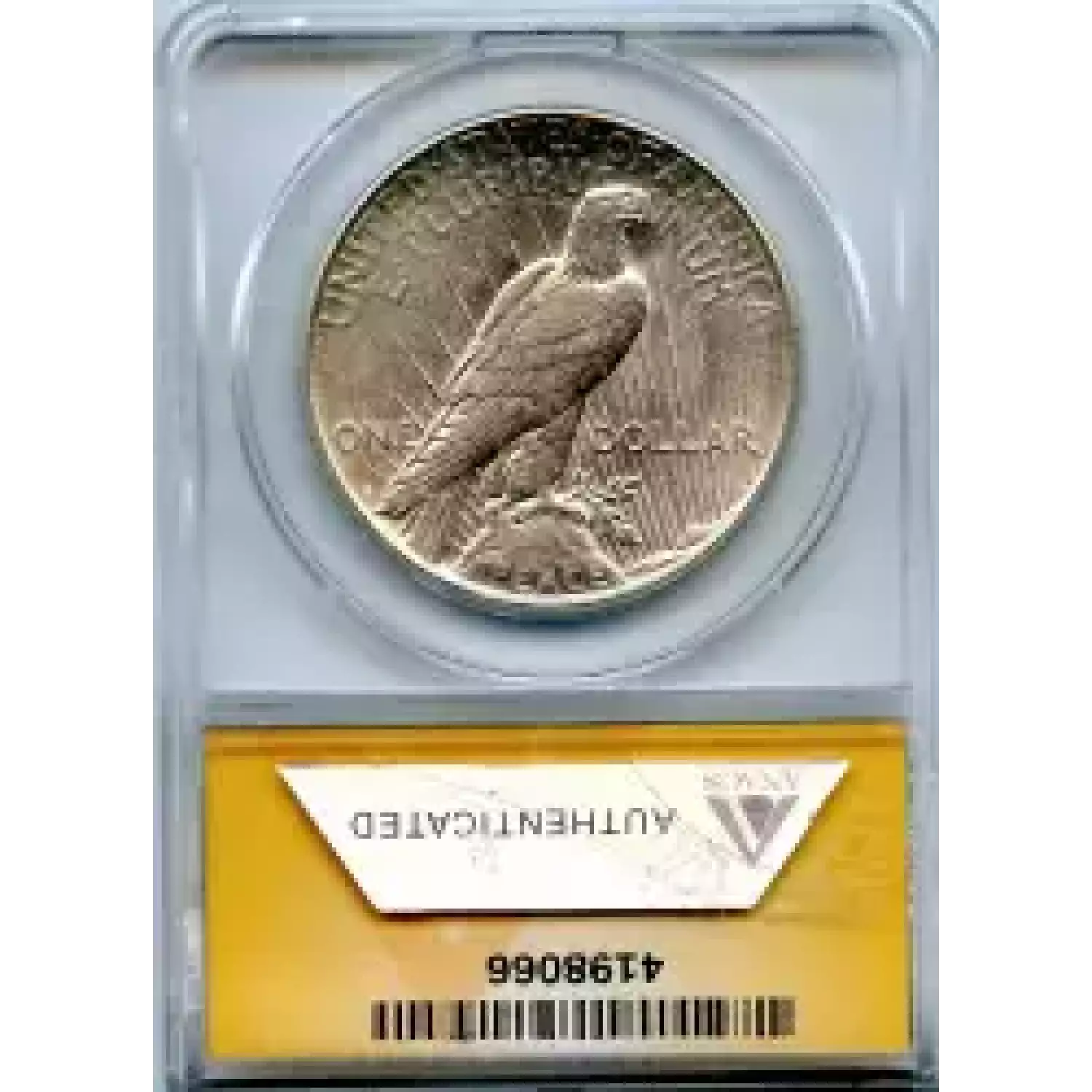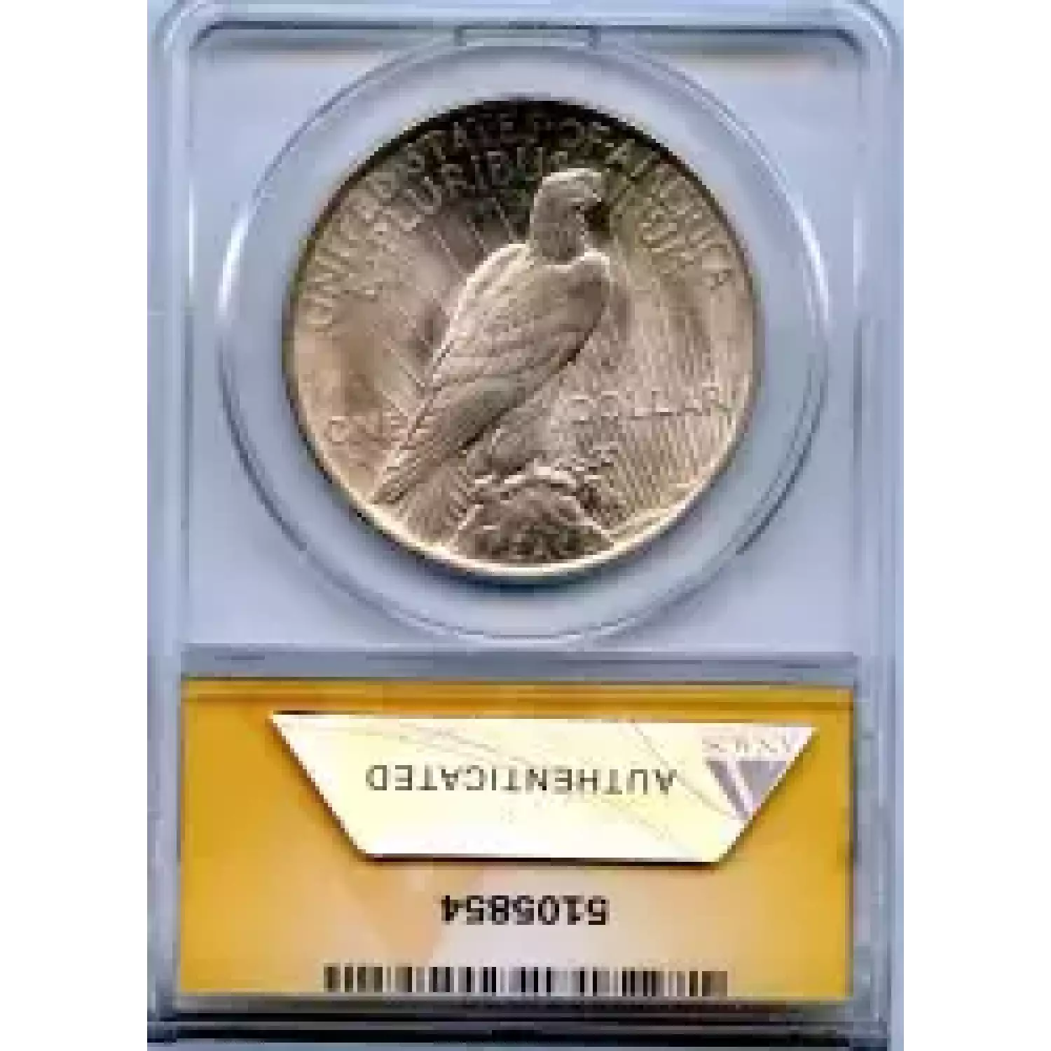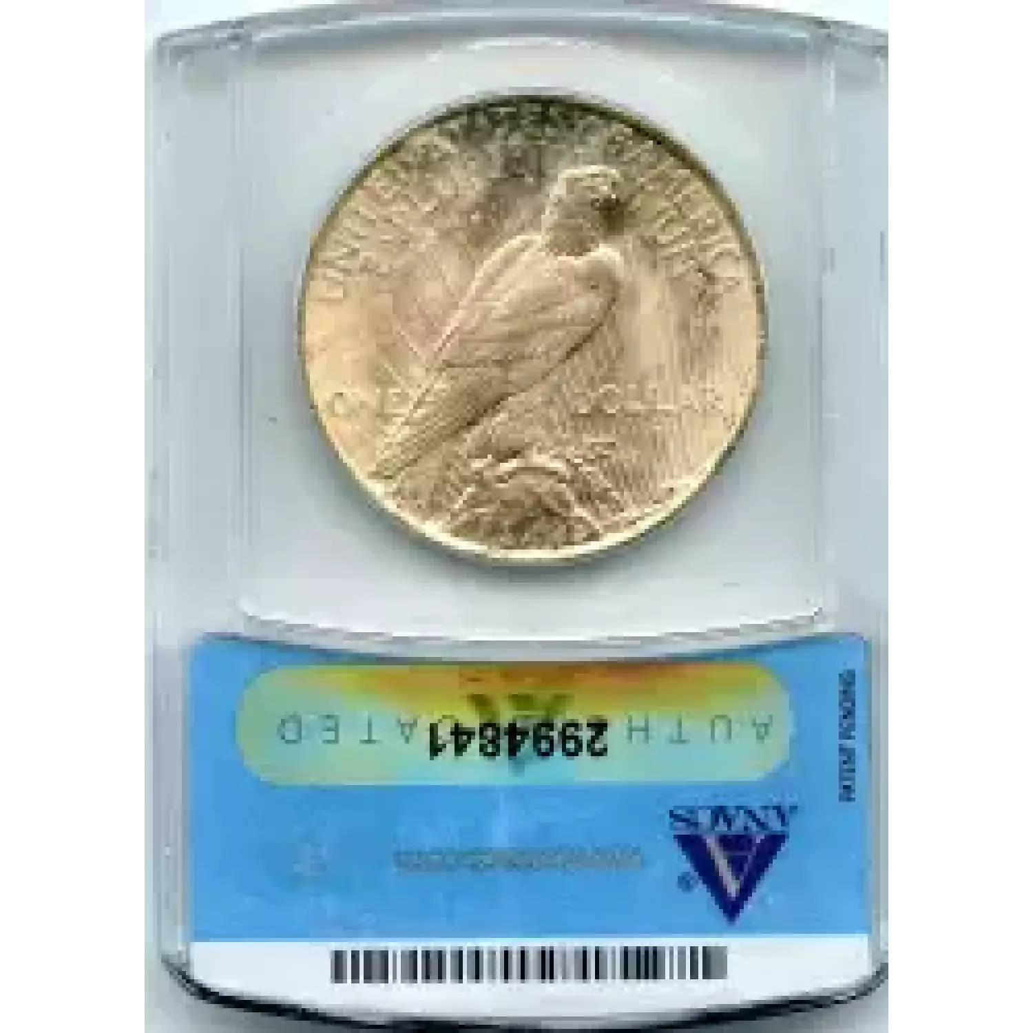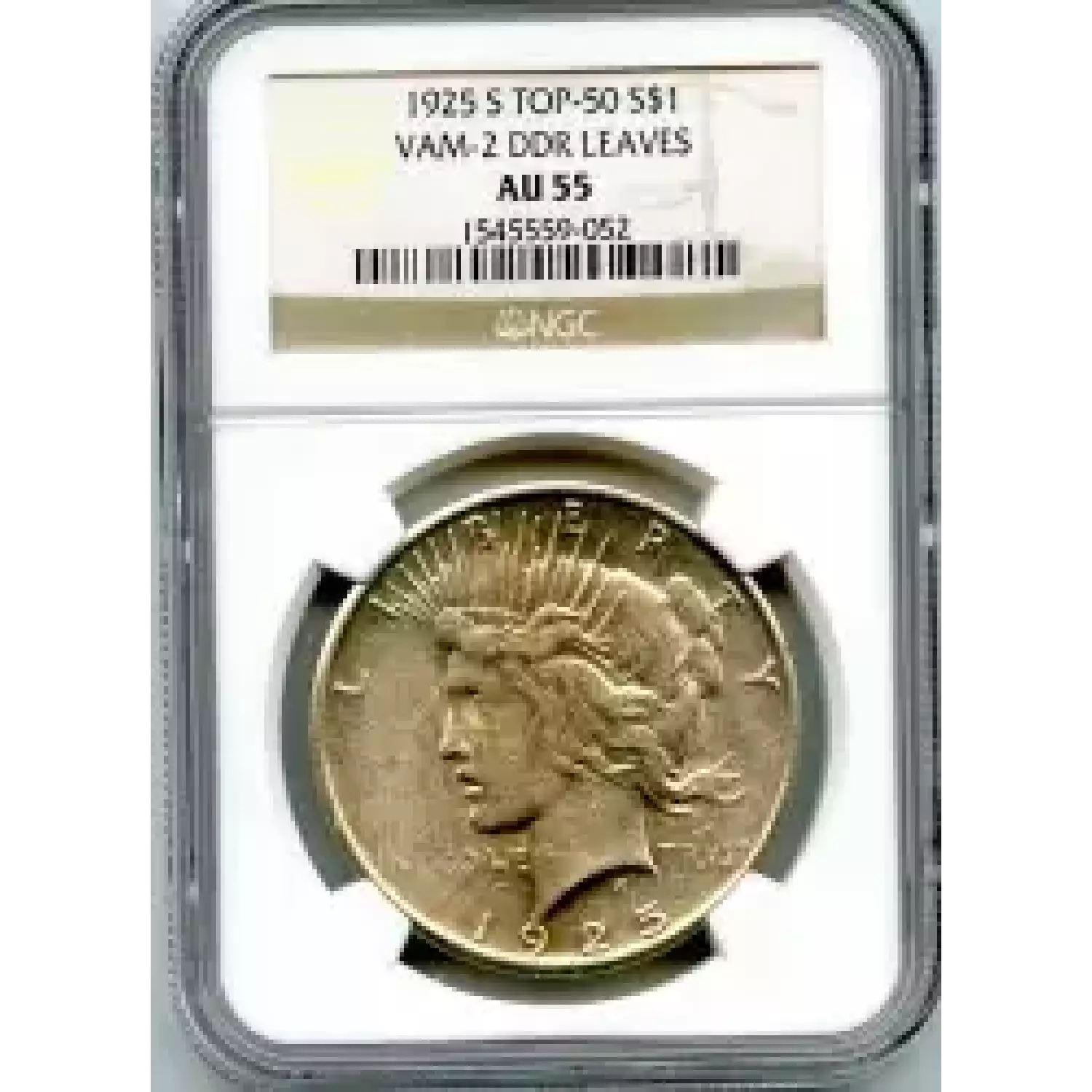 512048 | 1925-AU-55 Peace Silver Dollar NGC AU-55 | NGC | AU-55 | Sold: 18/10/2018 | $75 |