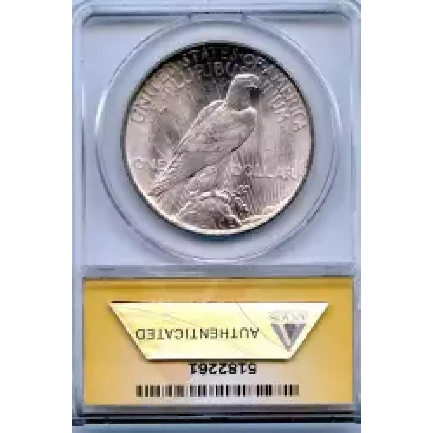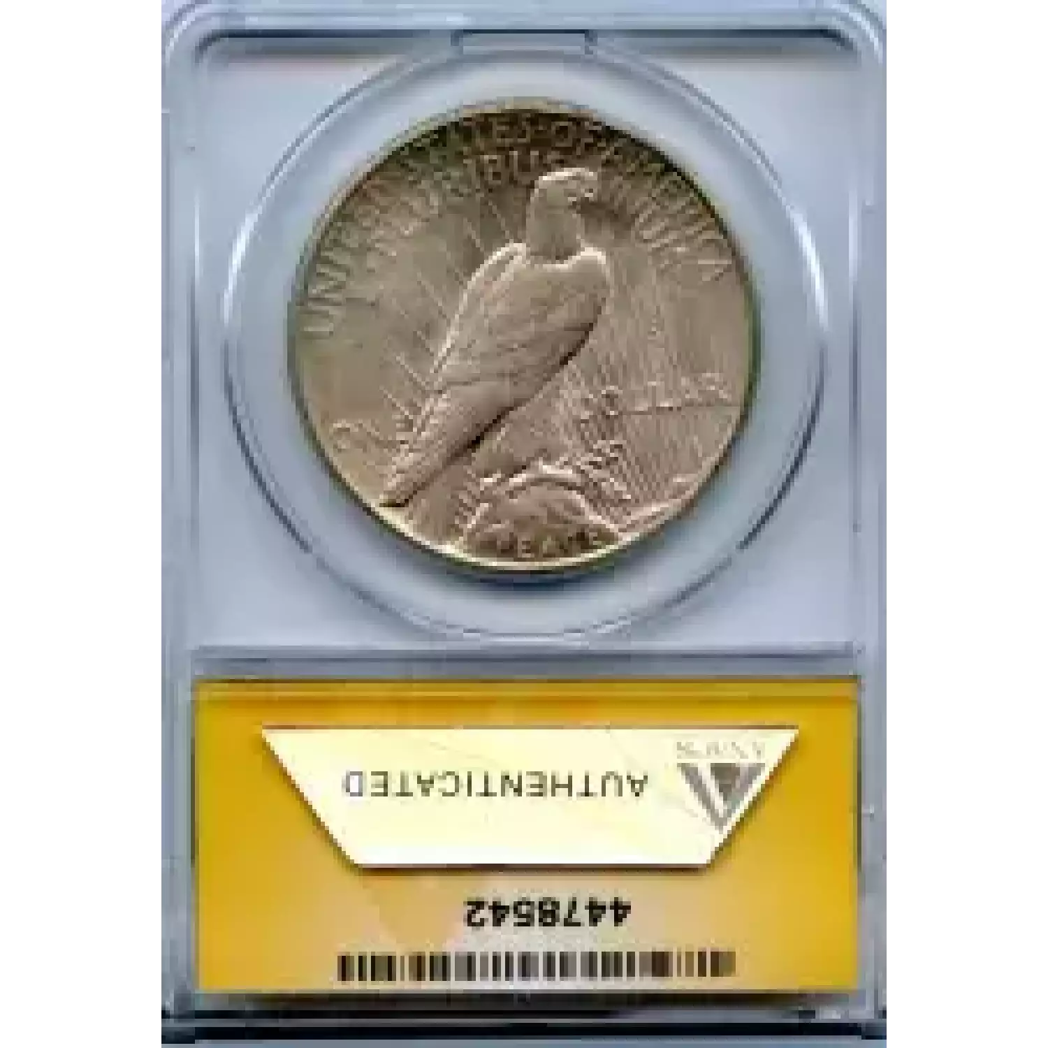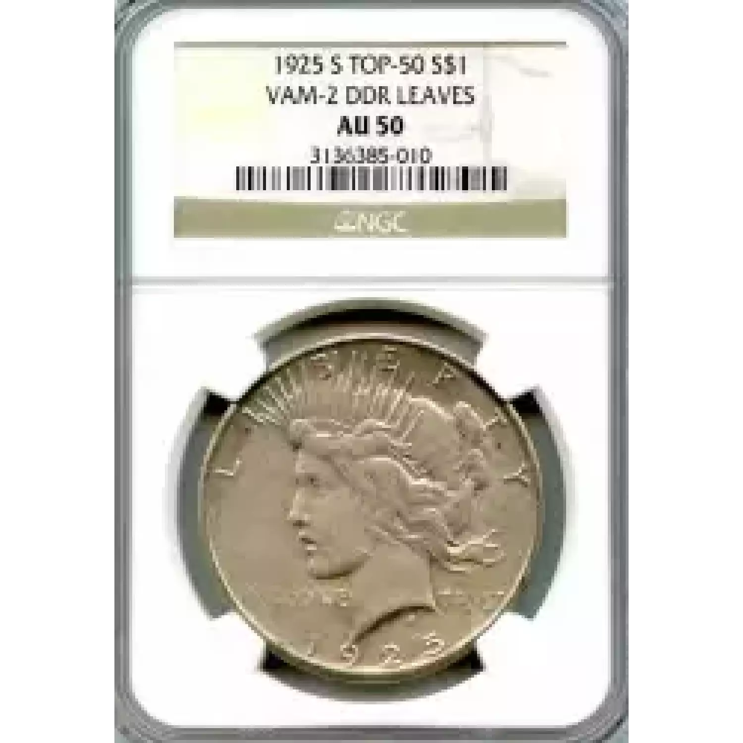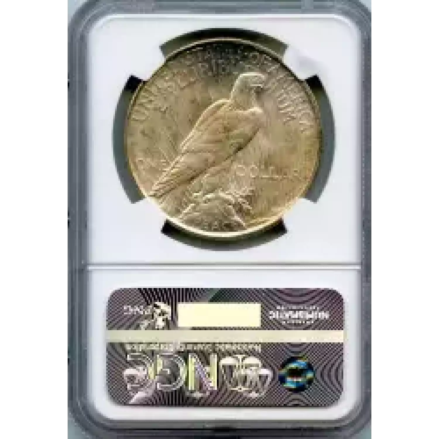 512048 | 1925-AU-55 Peace Silver Dollar NGC AU-55 | NGC | AU-55 | Sold: 18/10/2018 | $75 |