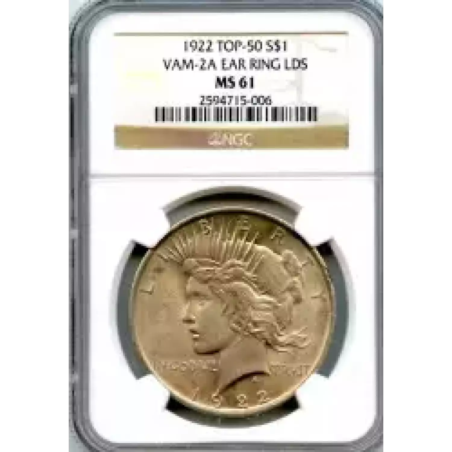 512136 | 1922-MS-61 Peace Silver Dollar NGC MS-61 | NGC | MS-61 | Sold: 06/11/2019 | $225 |