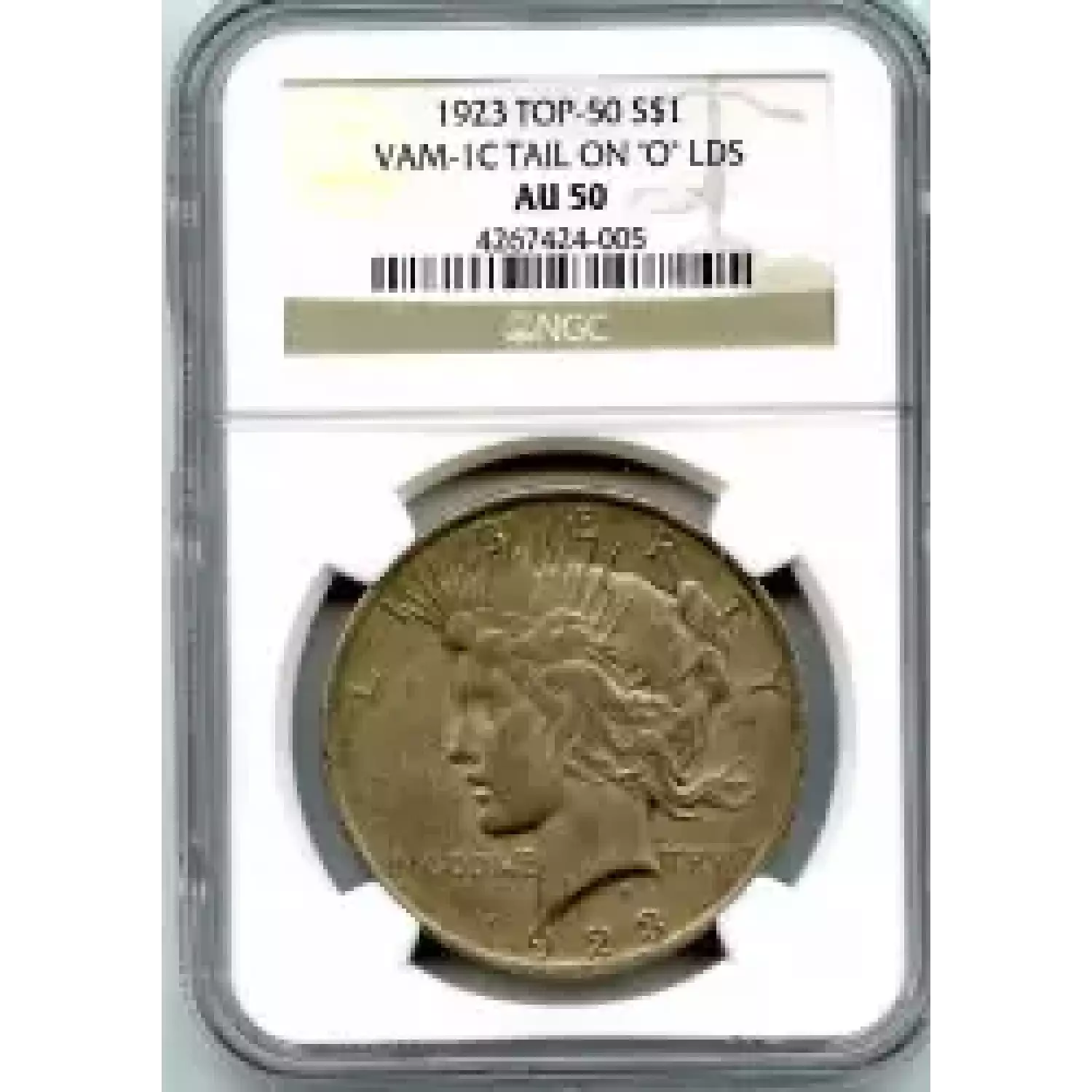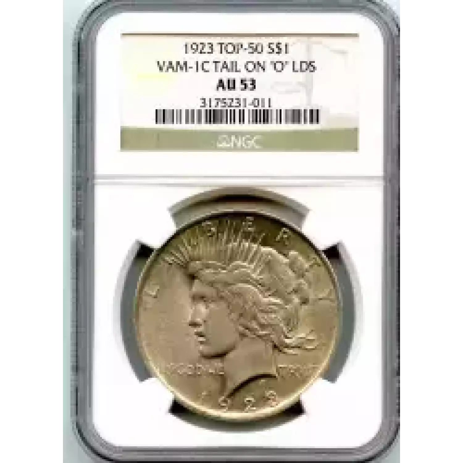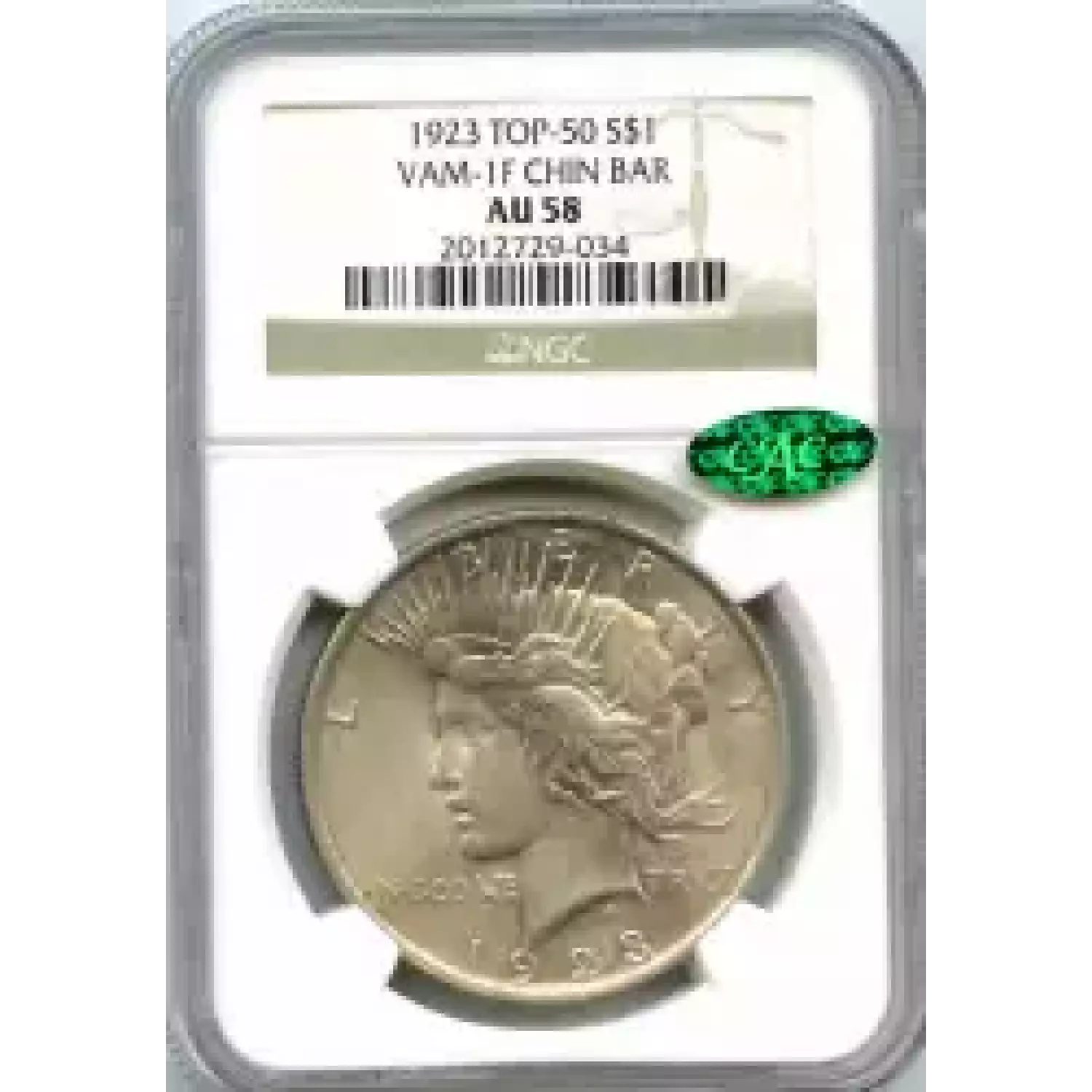 506173 | 1923-AU-58 Peace Silver Dollar NGC AU-58 | NGC | AU-58 | Sold: 07/03/2015 | $53 |