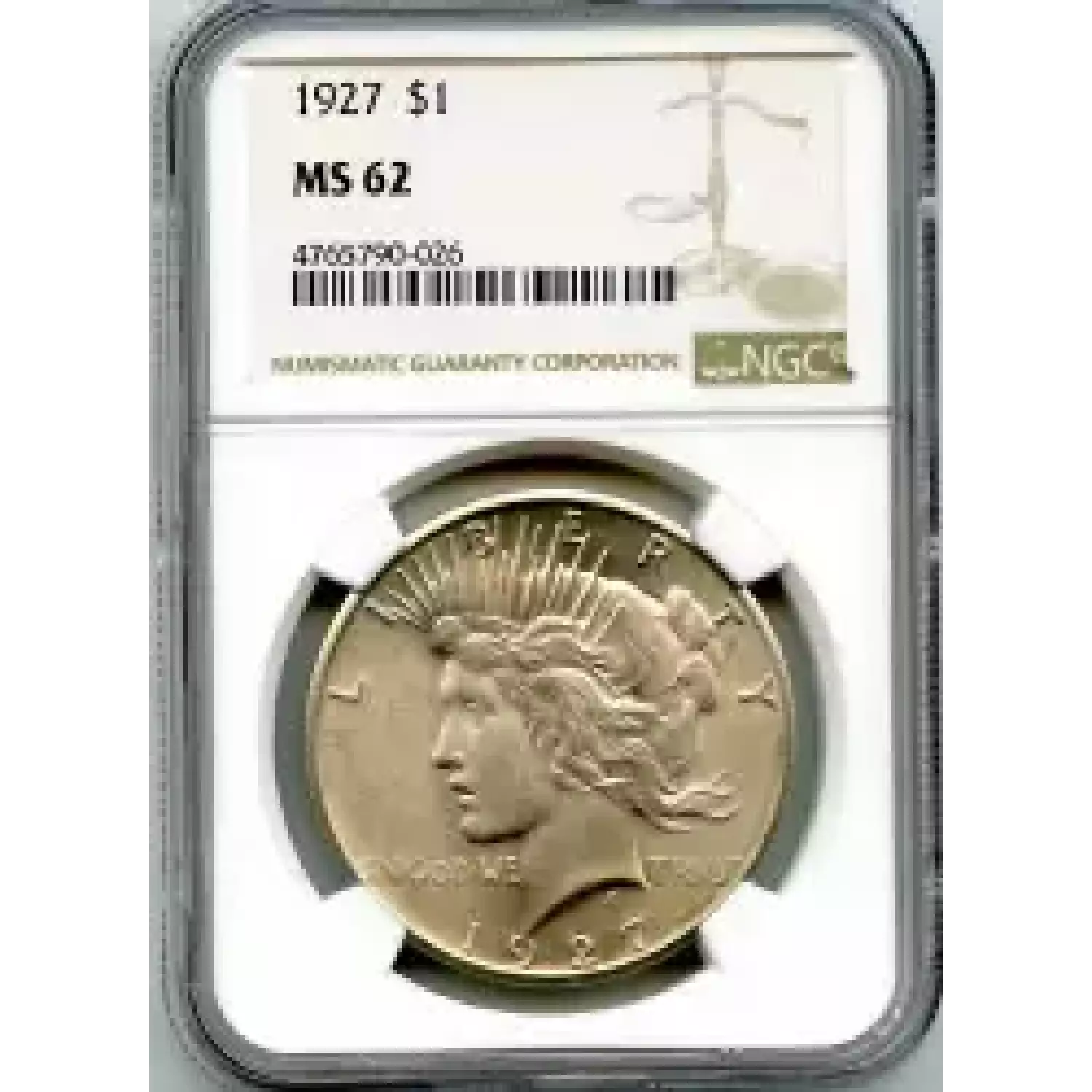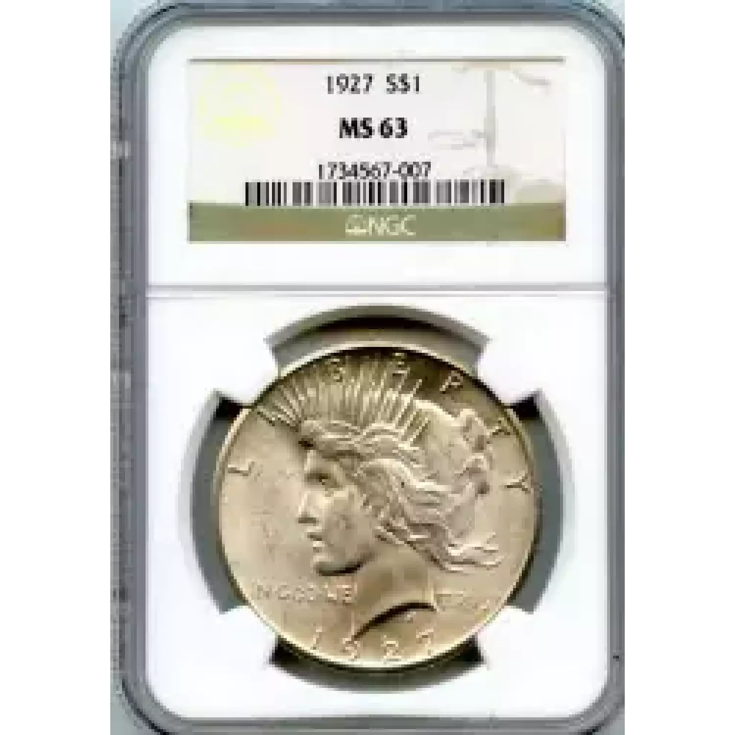 505518 | 1927-MS-62 Peace Silver Dollar NGC MS-62 | NGC | MS-62 | Sold: 16/11/2012 | $300 |