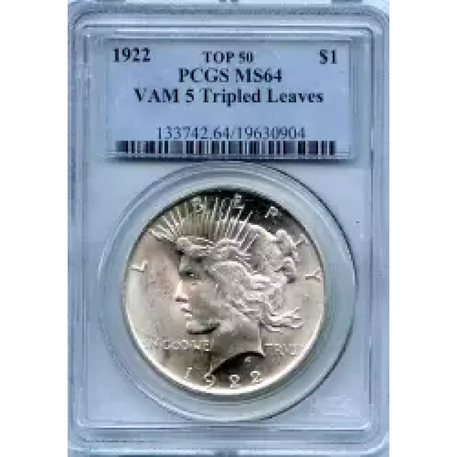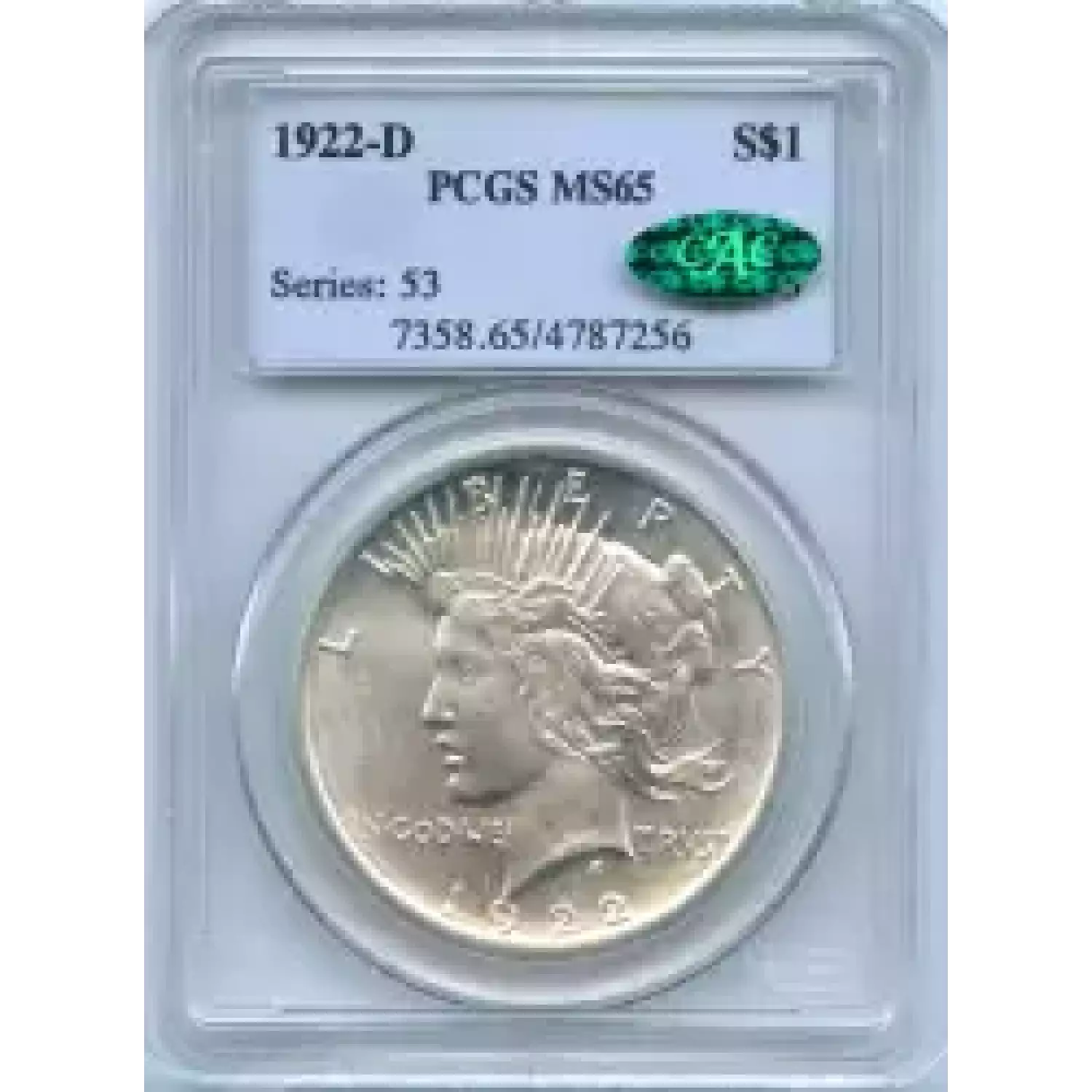 514079 | 1922-MS-66 Peace Silver Dollar PCGS MS-66 CAC | PCGS | MS-66 | Sold: 03/01/2020 | $500 |