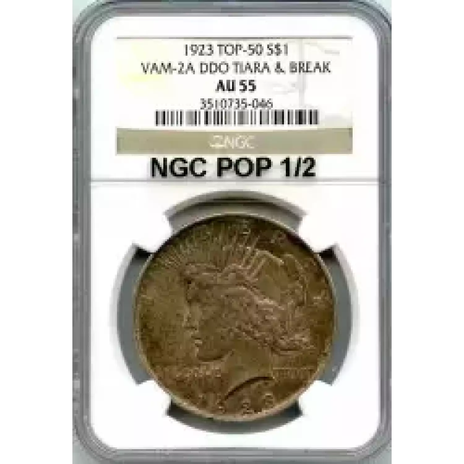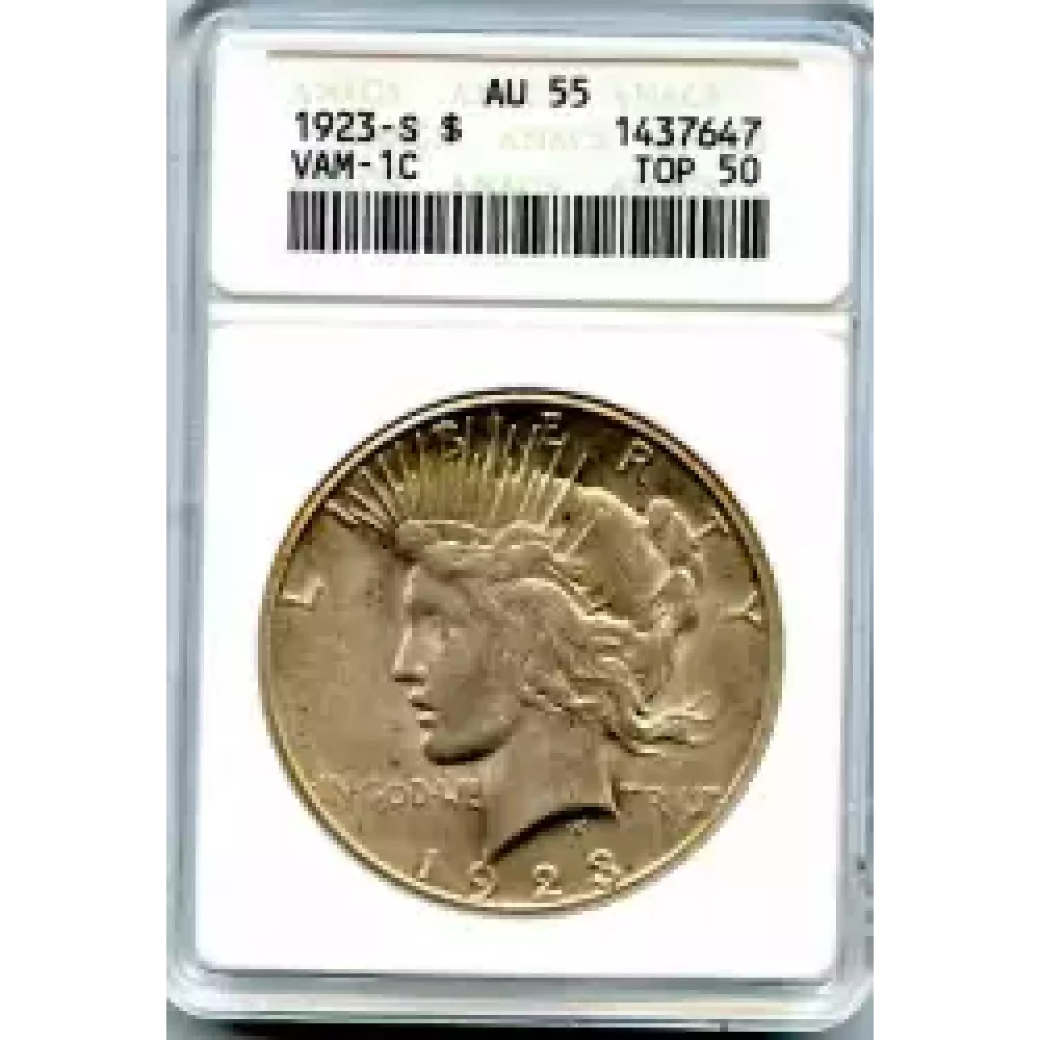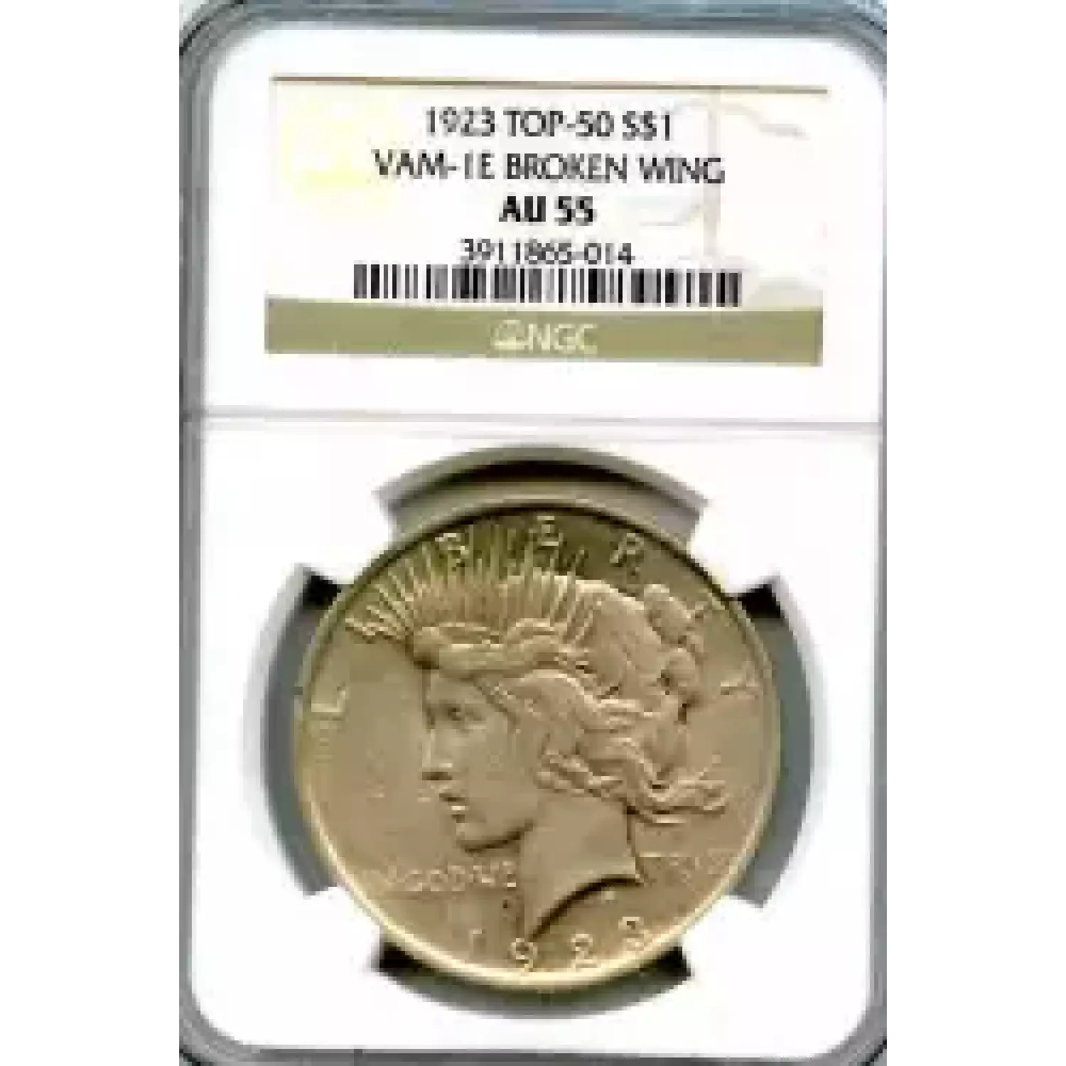 513177 | 1923-AU-55 Peace Silver Dollar NGC AU-55 | NGC | AU-55 | Sold: 15/07/2020 | $290 |