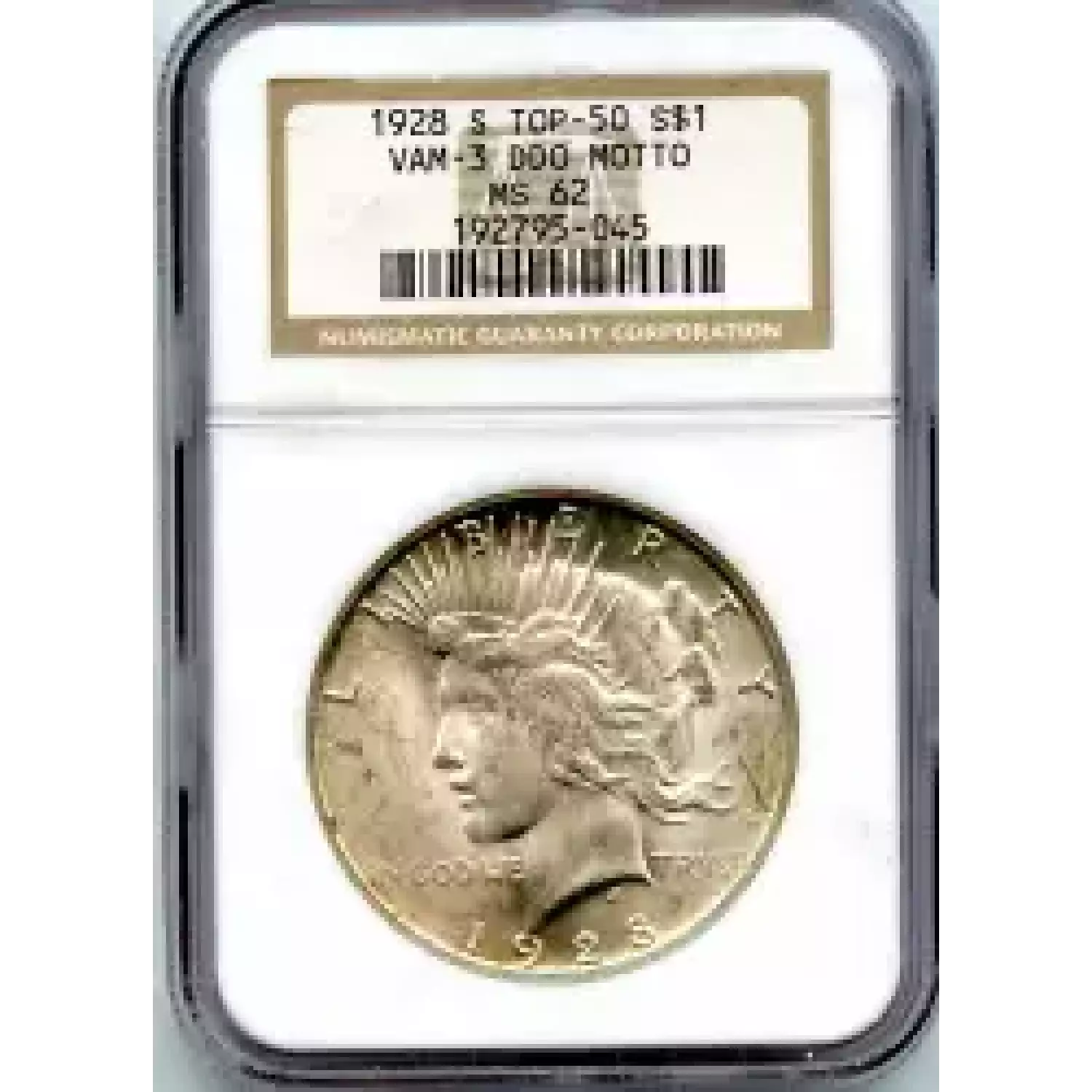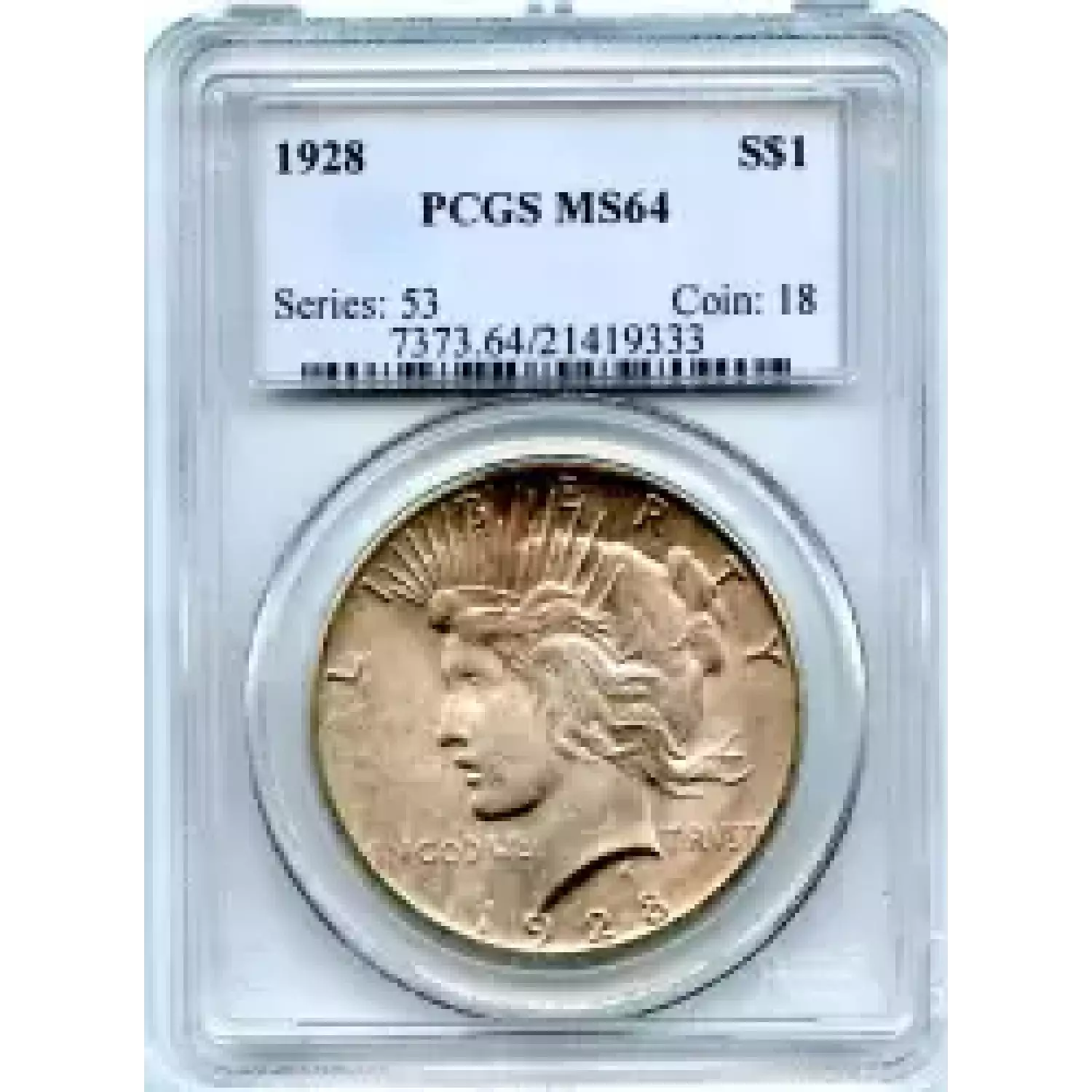 505955 | 1928-MS-62 Peace Silver Dollar PCGS MS-62 | PCGS | MS-62 | Sold: 28/06/2012 | $485 |