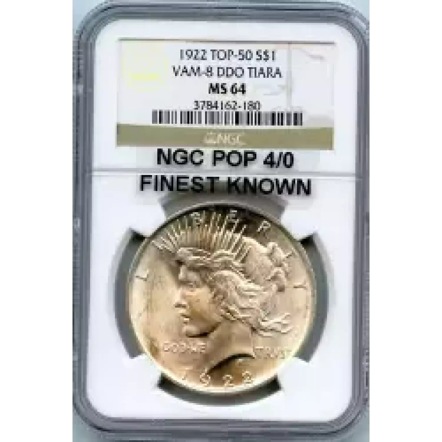 513292 | 1922-MS-64 Peace Silver Dollar NGC MS-64 | NGC | MS-64 | Sold: 09/02/2020 | $600 |