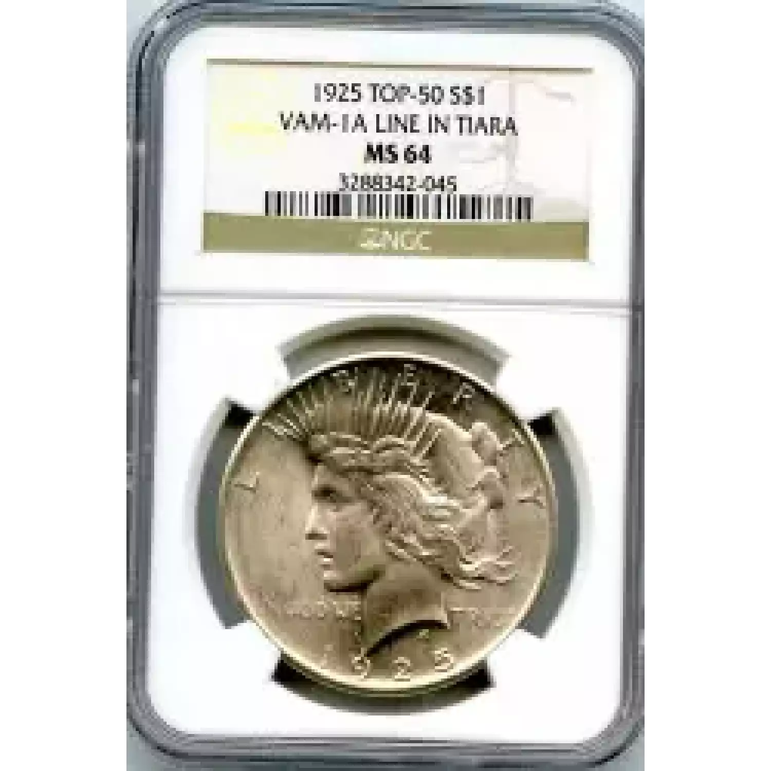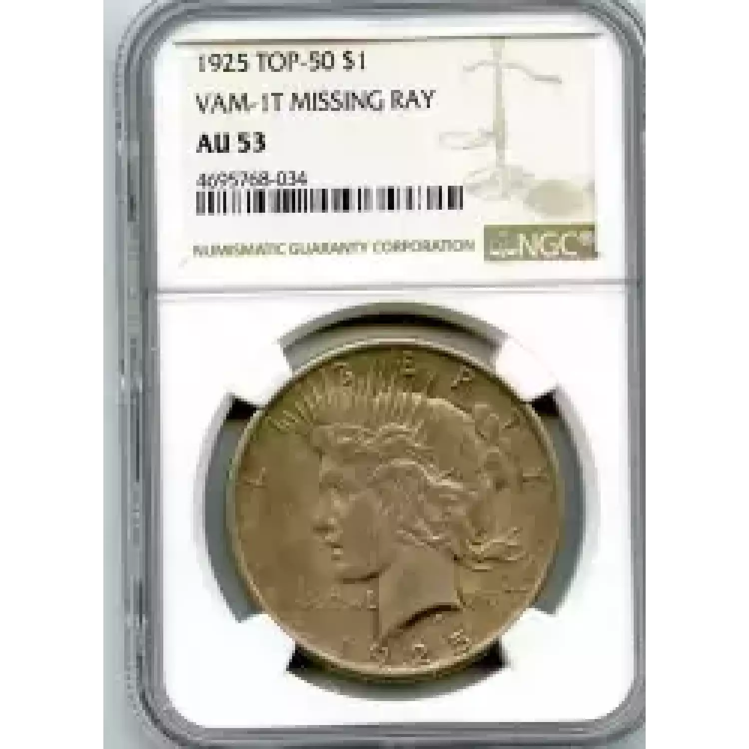 512076 | 1925-AU-53 Peace Silver Dollar NGC AU-53 | NGC | AU-53 | Sold: 23/02/2020 | $75 |