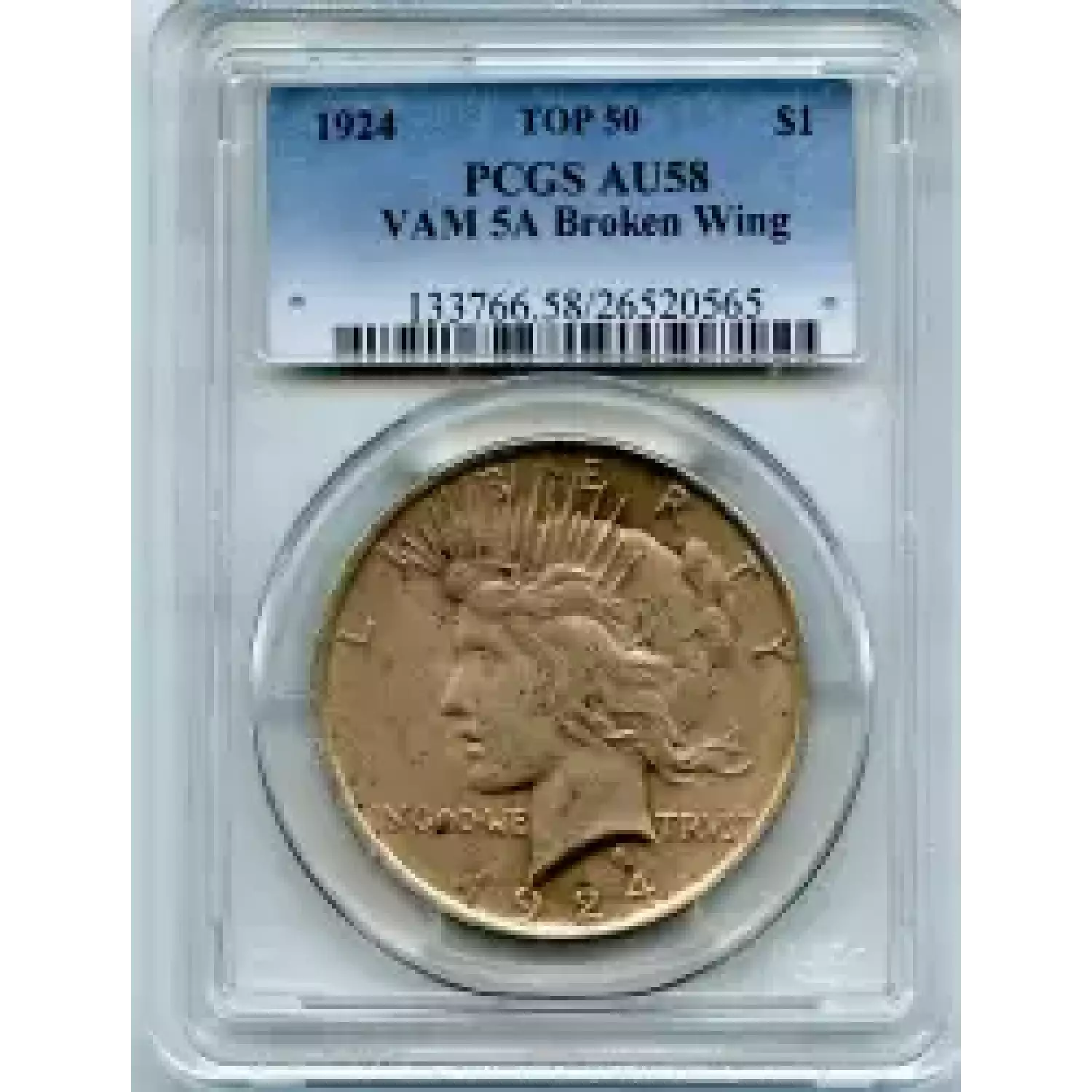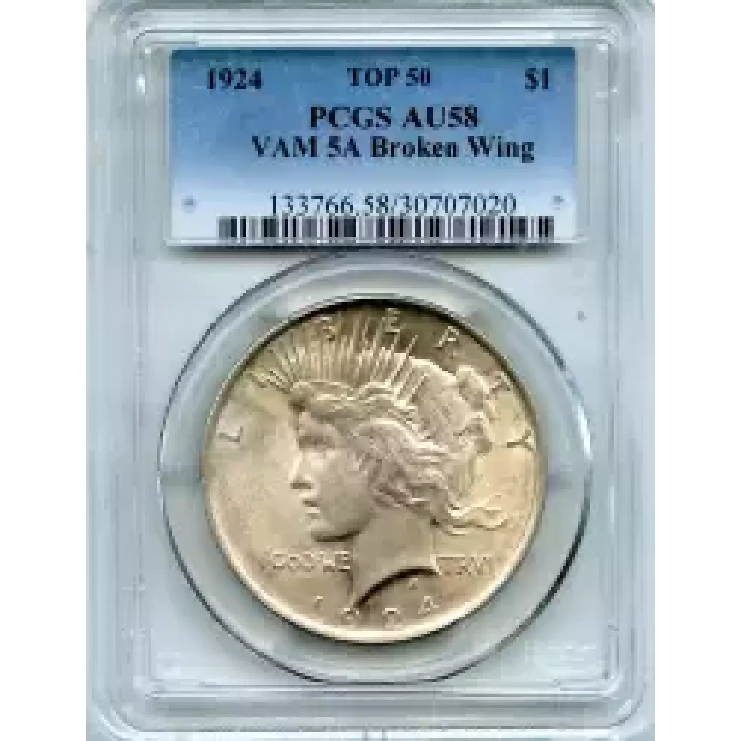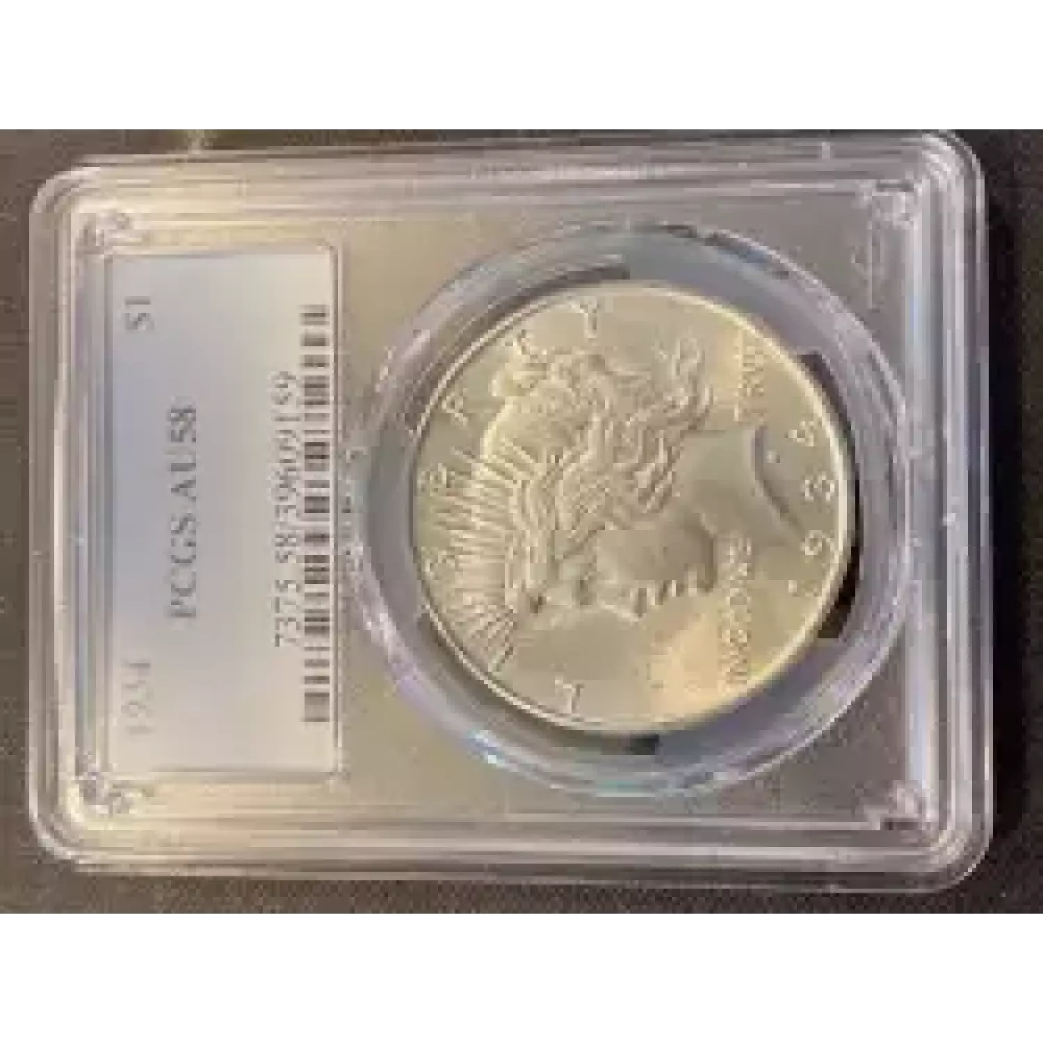 513362 | 1924-AU-58 Peace Silver Dollar PCGS AU-58 | PCGS | AU-58 | Sold: 07/09/2020 | $150 |