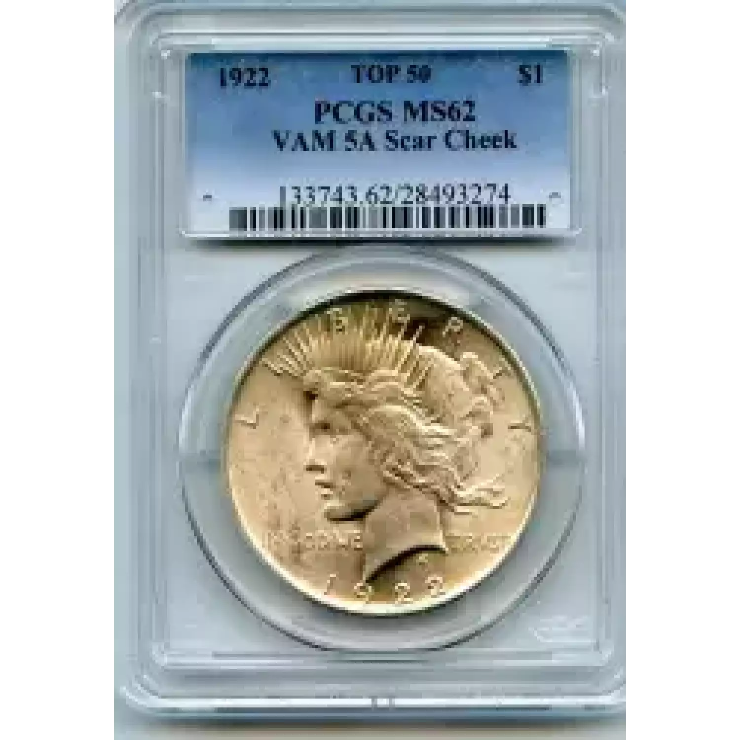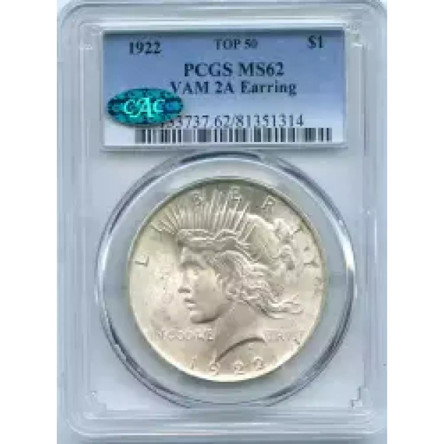 513375 | 1922-MS-62 Peace Silver Dollar PCGS MS-62 | PCGS | MS-62 | Sold: 08/01/2020 | $240 |