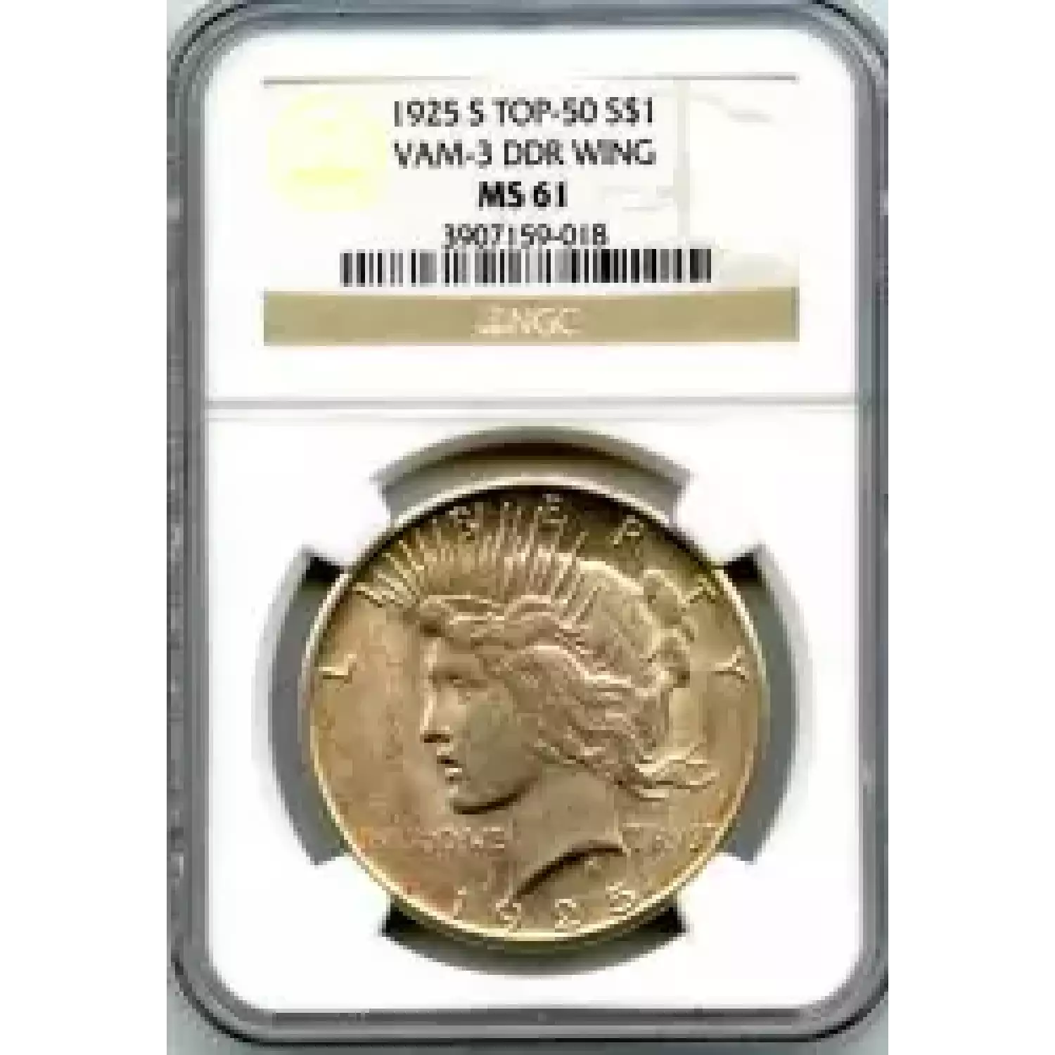 505694 | 1925-MS-61 Peace Silver Dollar NGC MS-61 | NGC | MS-61 | Sold: 15/07/2012 | $260 |