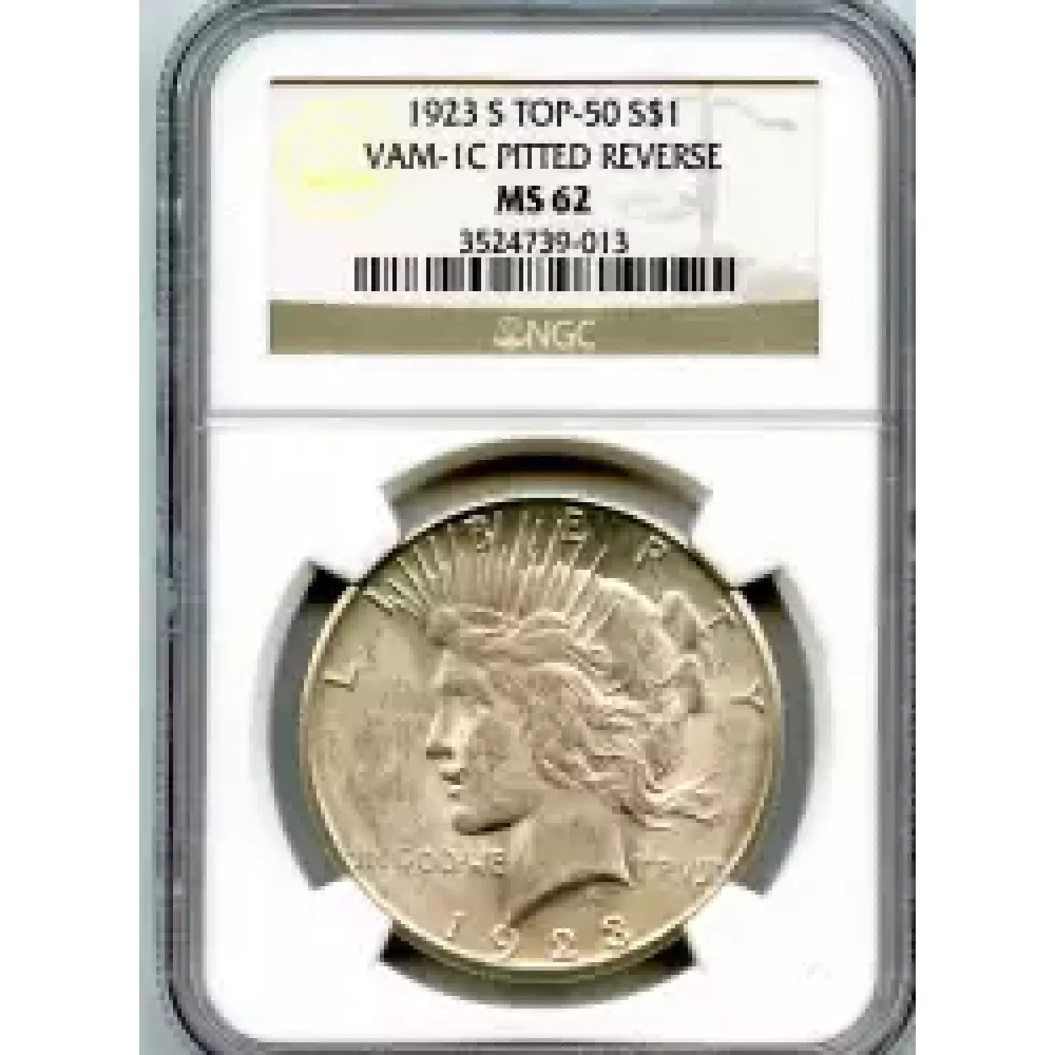 505845 | 1923-MS-62 Peace Silver Dollar NGC MS-62 | NGC | MS-62 | Sold: 27/10/2012 | $1,200 |