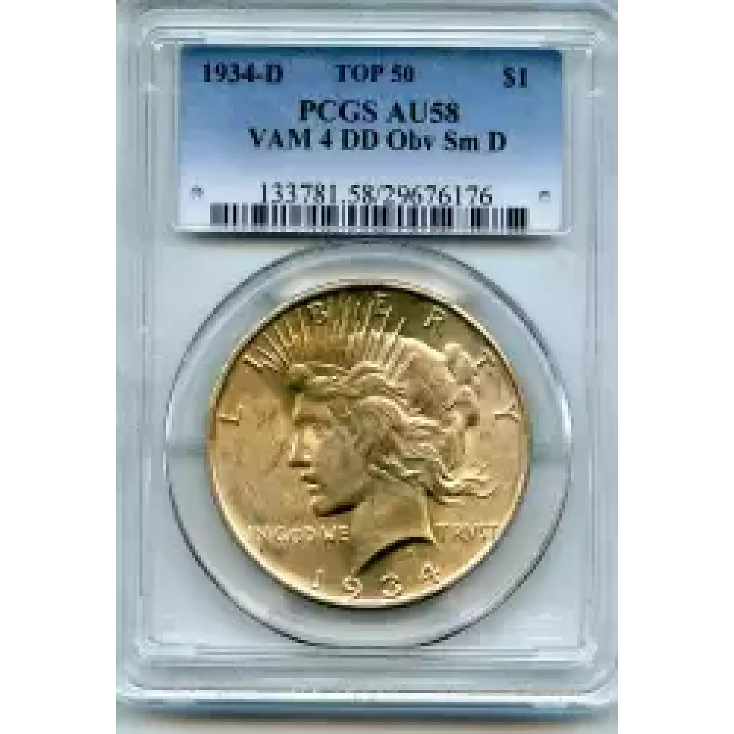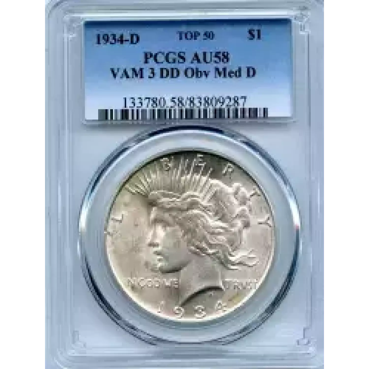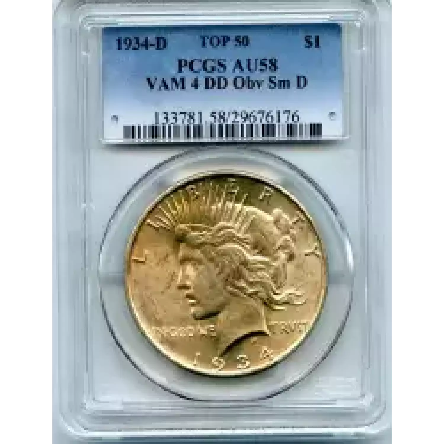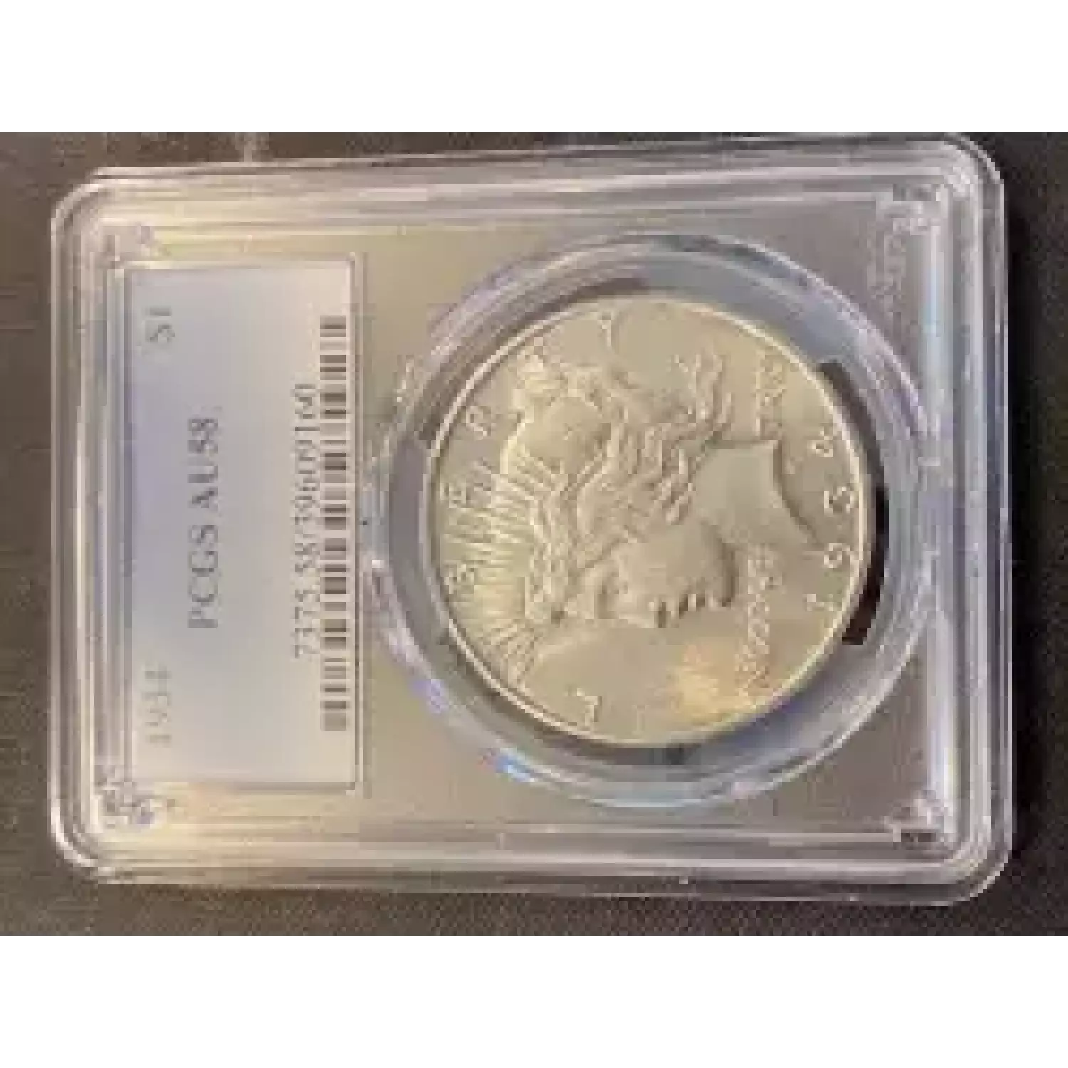 514396 | 1934-AU-58 Peace Silver Dollar PCGS AU-58 | PCGS | AU-58 | Sold: 03/11/2020 | $105 |