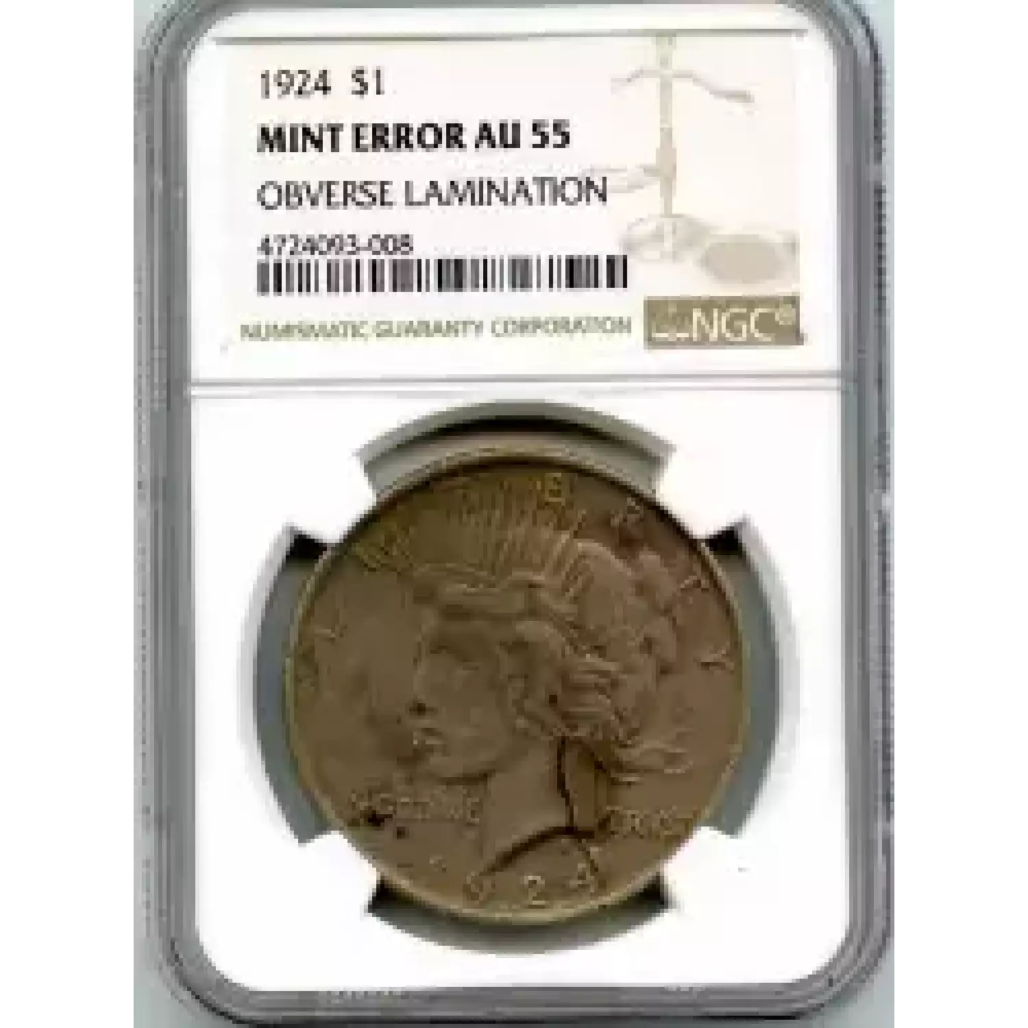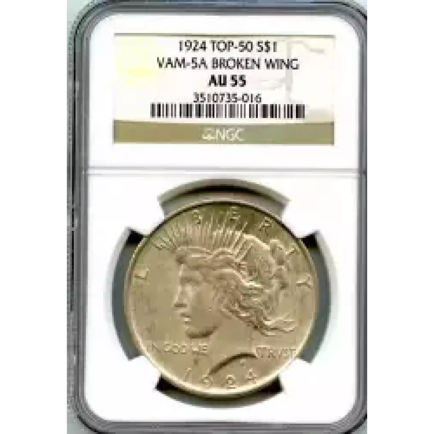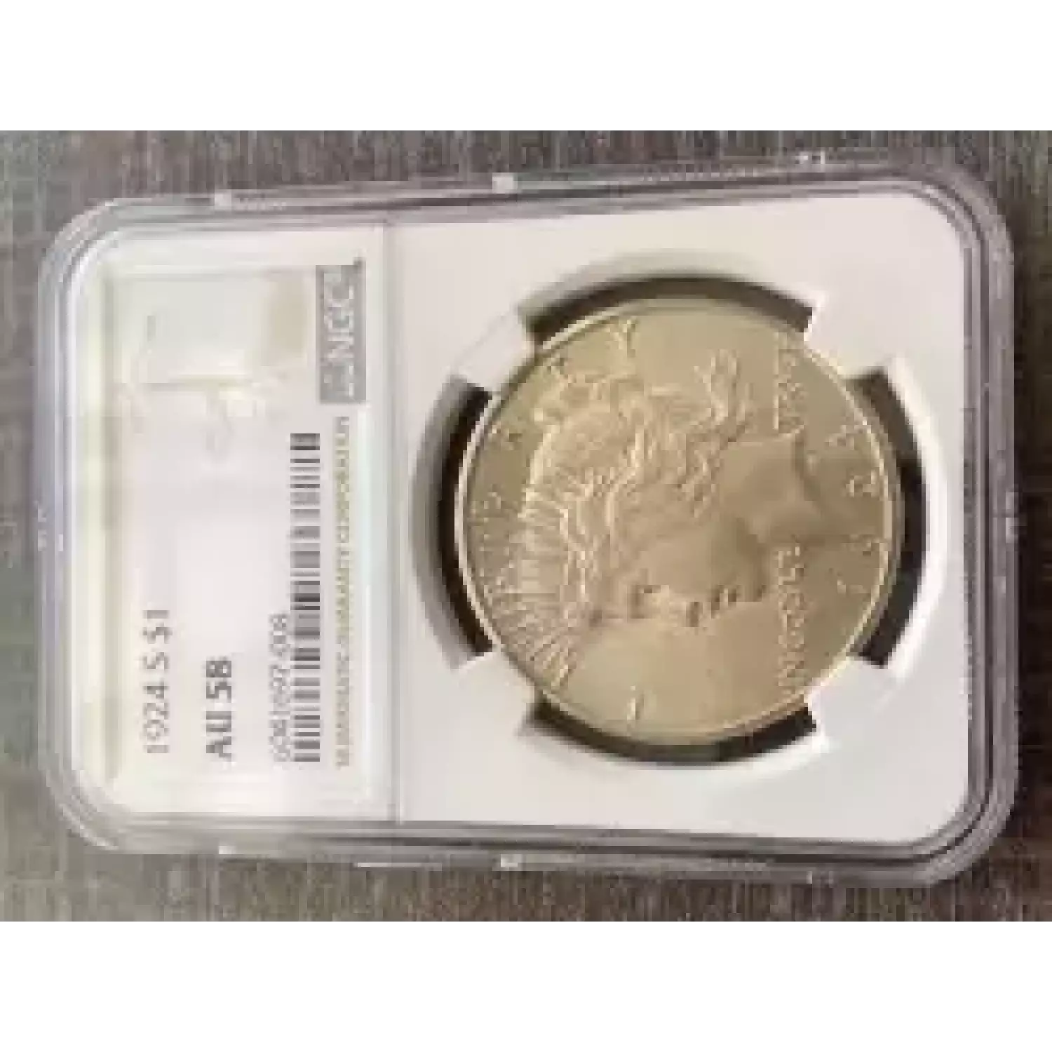 512622 | 1924-AU-55 Peace Silver Dollar NGC AU-55 | NGC | AU-55 | Sold: 09/06/2019 | $150 |