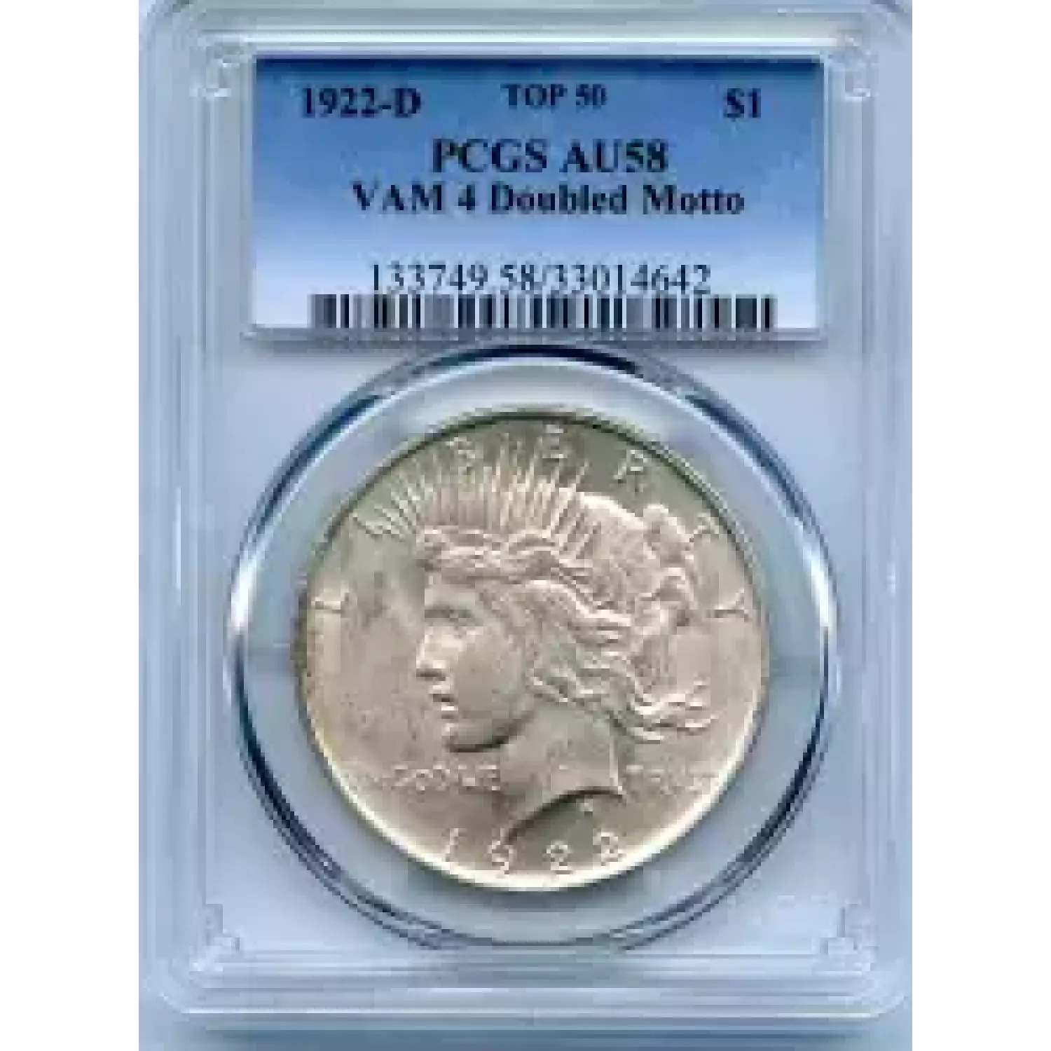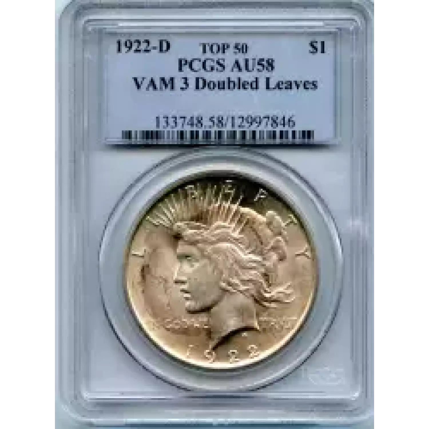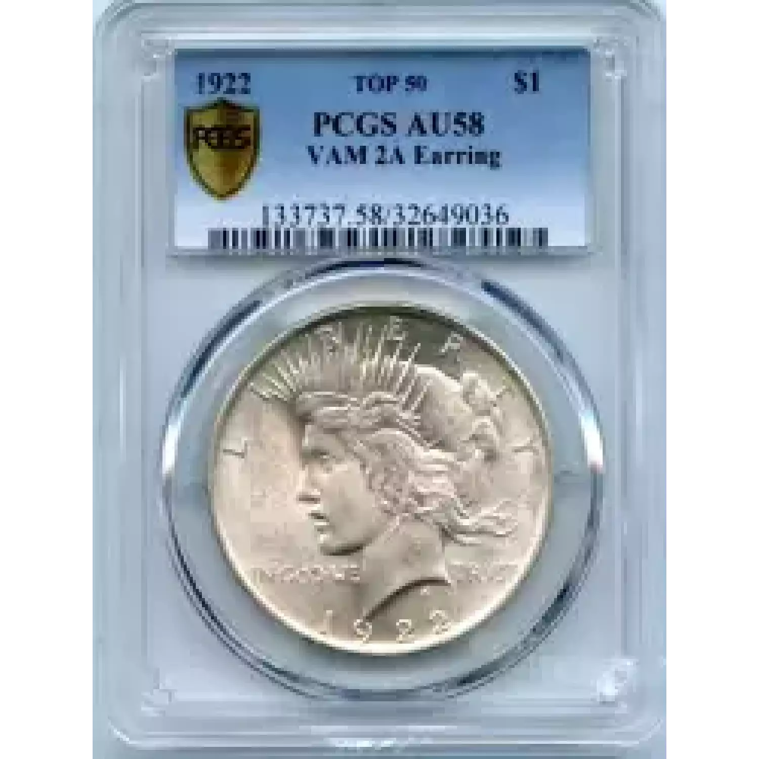 512577 | 1922-AU-58 Peace Silver Dollar PCGS AU-58 | PCGS | AU-58 | Sold: 08/12/2019 | $200 |