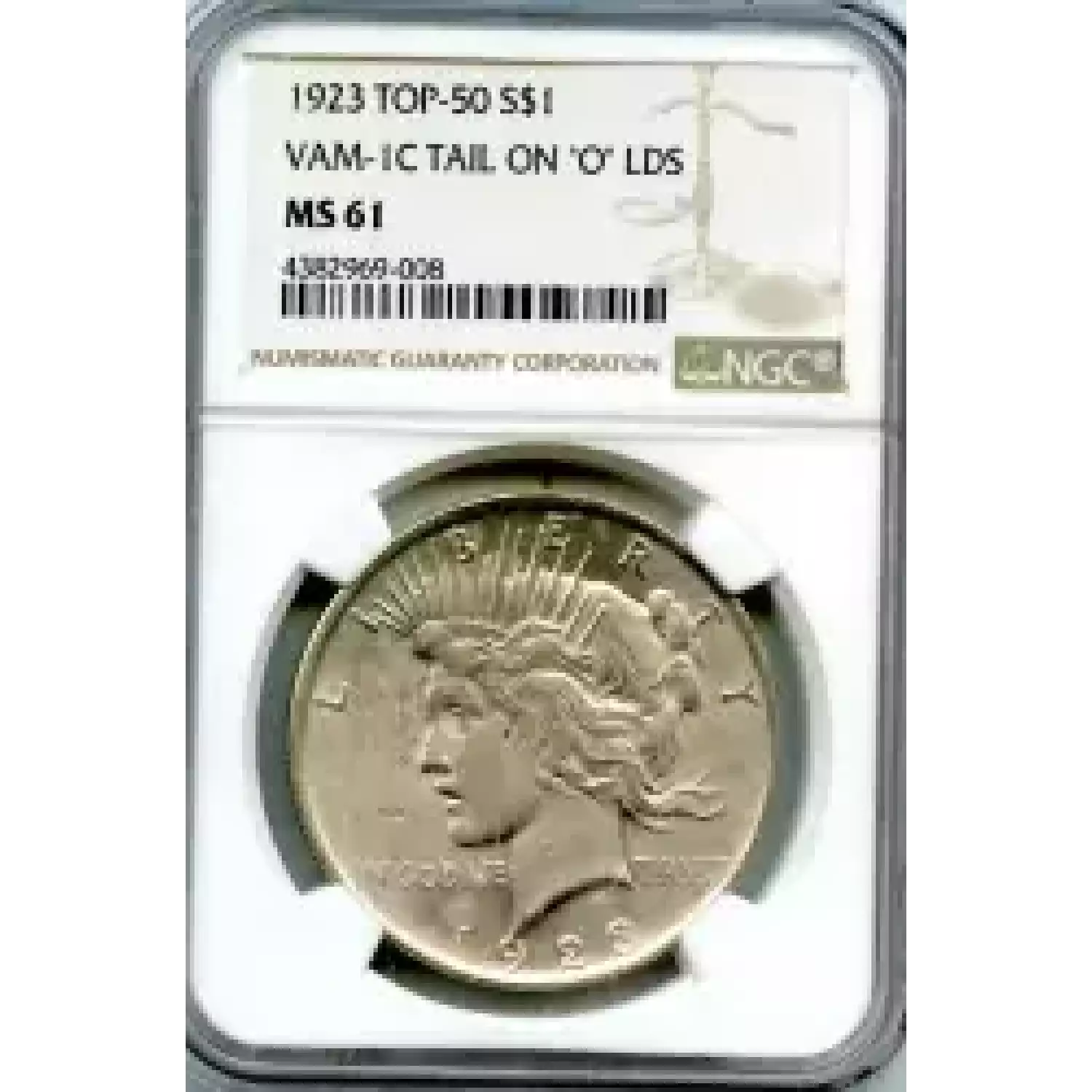 506159 | 1923-MS-62 Peace Silver Dollar NGC MS-62 | NGC | MS-62 | Sold: 26/06/2012 | $175 |
