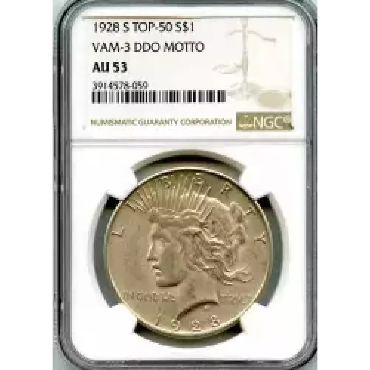 511757 | 1928-MS-62 Peace Silver Dollar NGC MS-62 | NGC | MS-62 | Sold: 01/01/2019 | $360 |
