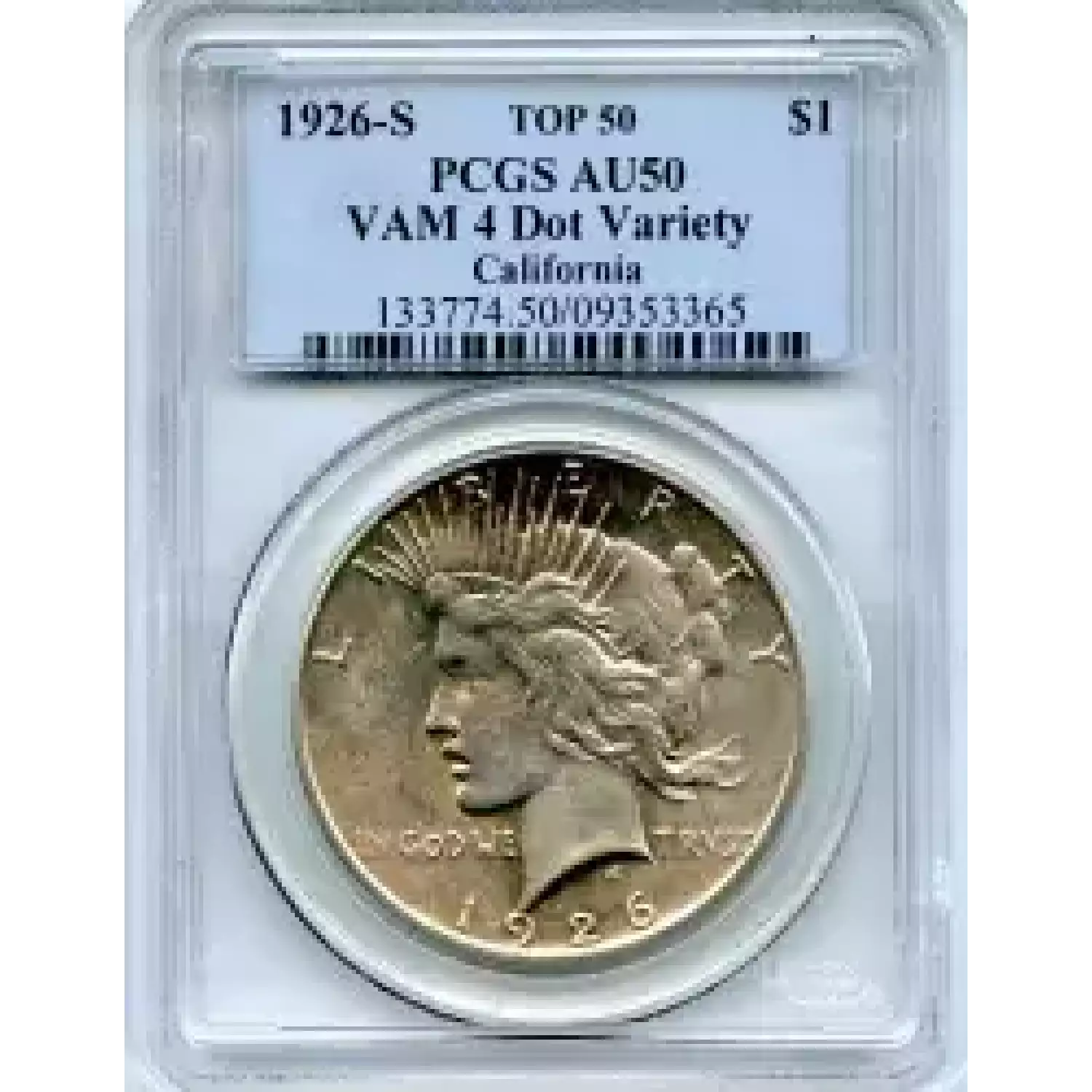 505710 | 1926-AU-50 Peace Silver Dollar PCGS AU-50 | PCGS | AU-50 | Sold: 31/07/2012 | $360 |