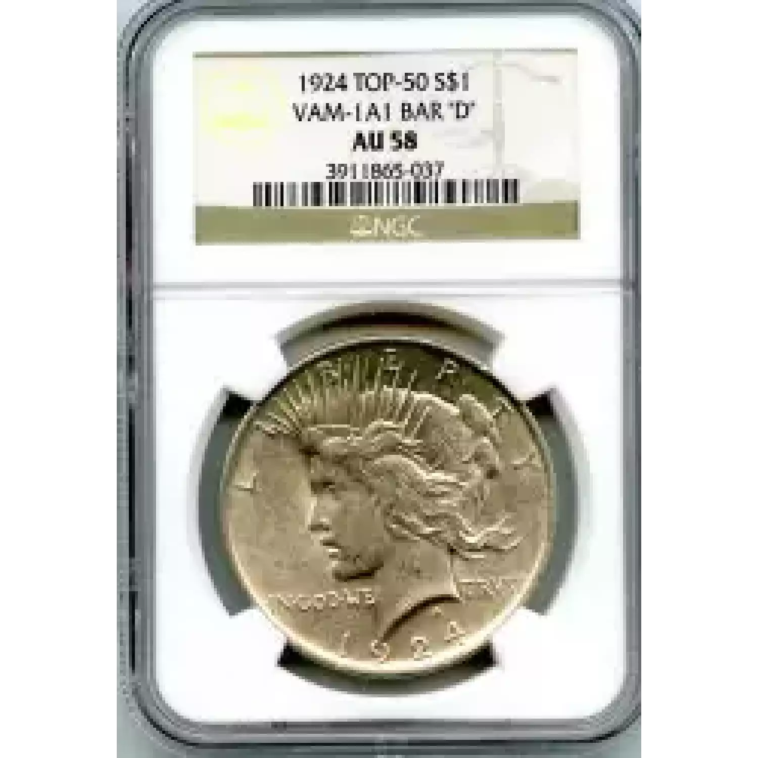 511760 | 1924-AU-58 Peace Silver Dollar NGC AU-58 | NGC | AU-58 | Sold: 19/07/2020 | $100 |