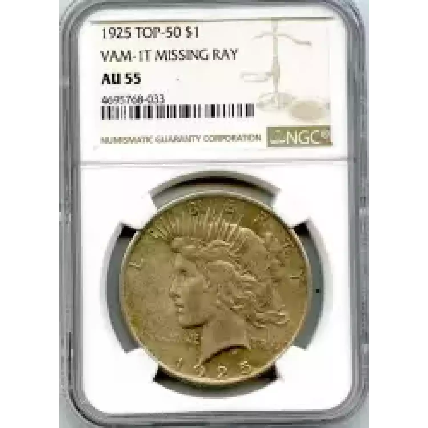 511654 | 1925-AU-55 Peace Silver Dollar NGC AU-55 | NGC | AU-55 | Sold: 28/05/2020 | $100 |