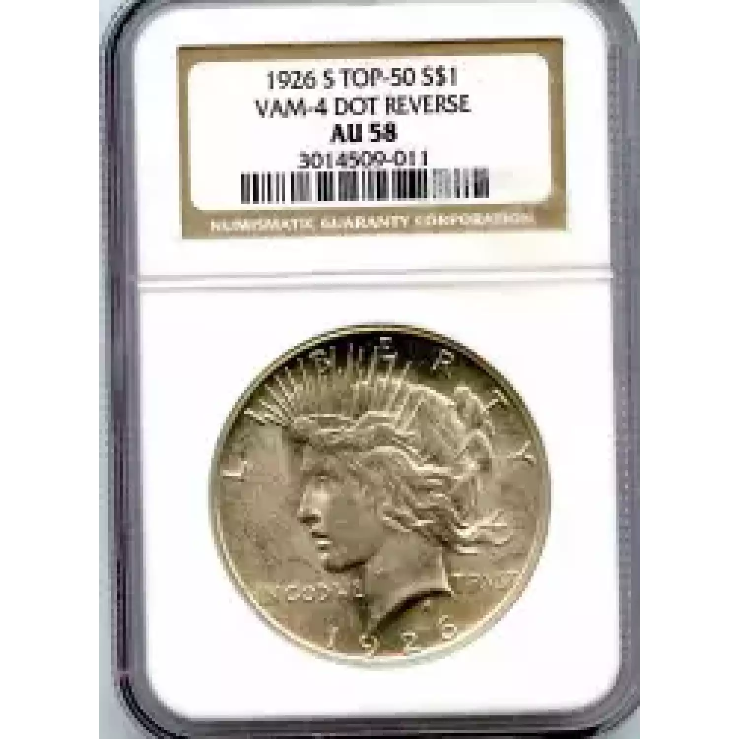 514475 | 1926-AU-58 Peace Silver Dollar NGC AU-58 | NGC | AU-58 | Sold: 21/02/2021 | $70 |