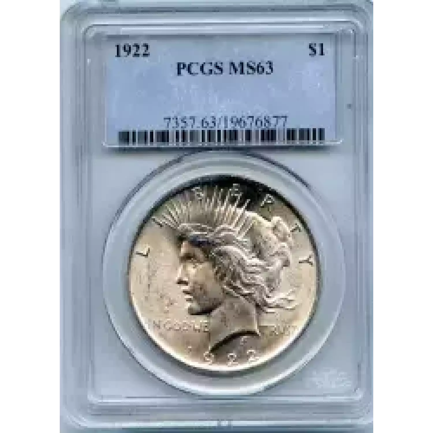 505763 | 1922-MS-63 Peace Silver Dollar PCGS MS-63 | PCGS | MS-63 | Sold: 07/03/2015 | $72 |