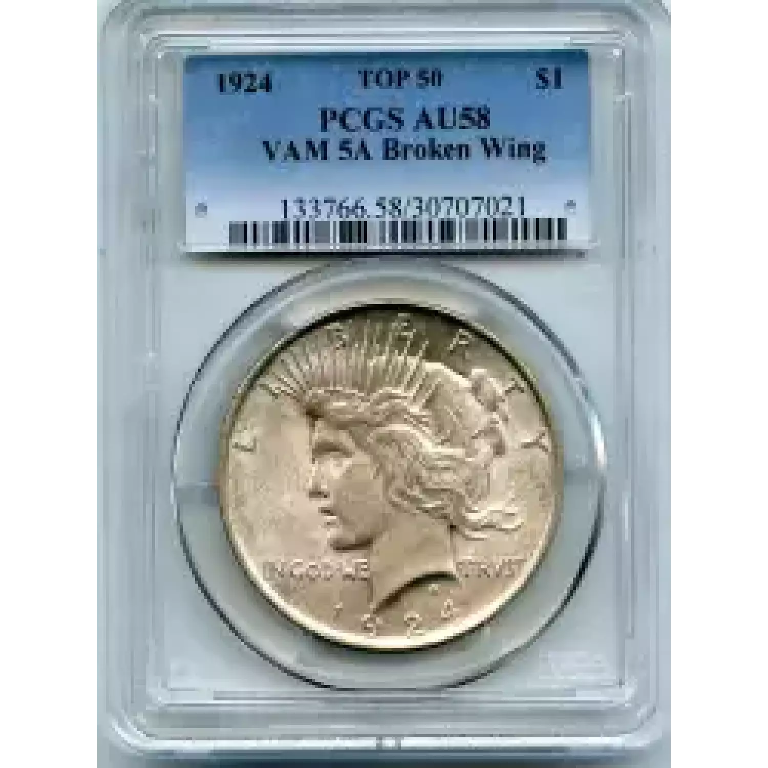 506035 | 1924-AU-50 Peace Silver Dollar PCGS AU-50 | PCGS | AU-50 | Sold: 31/01/2014 | $275 |